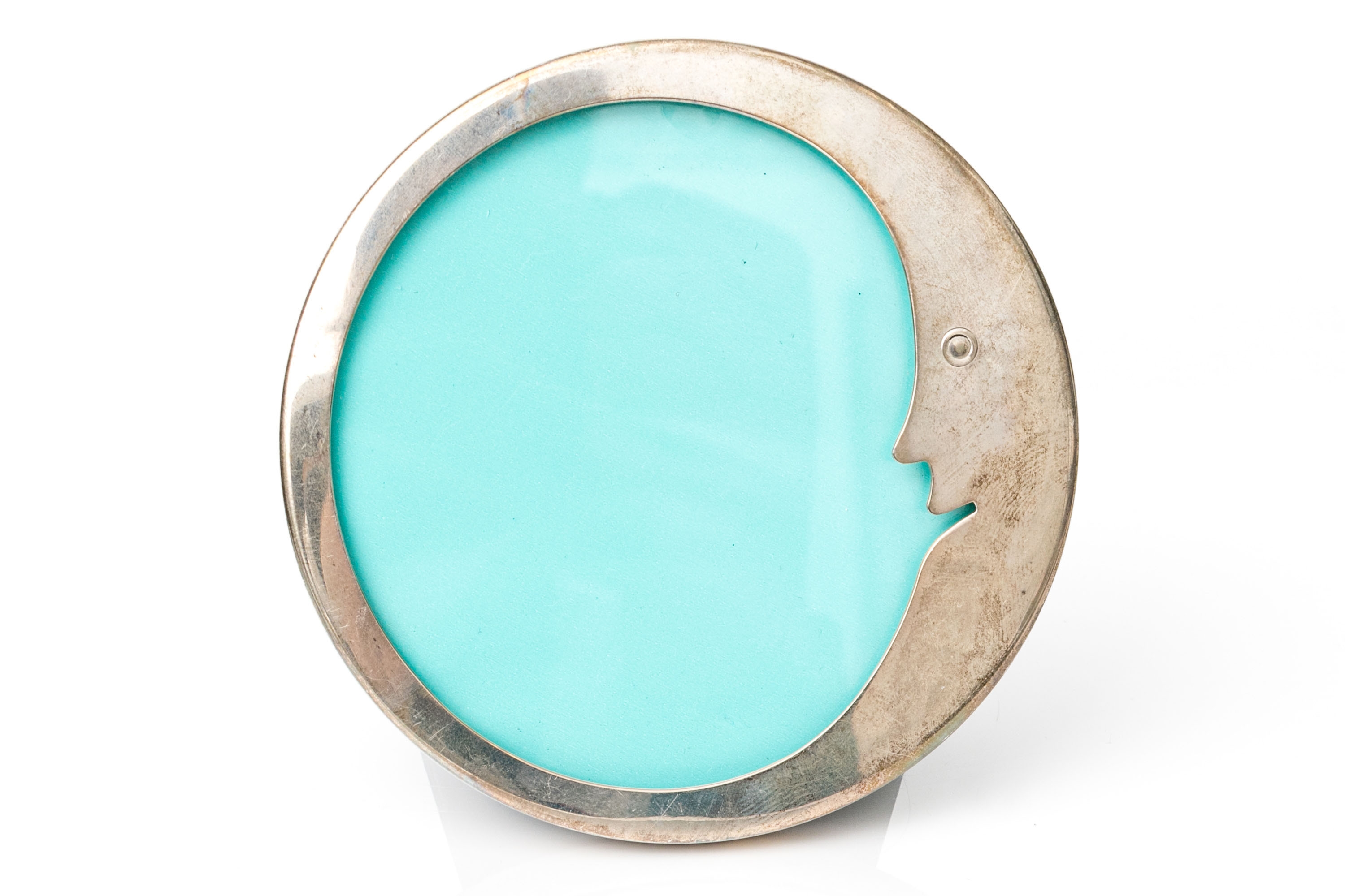 Tiffany & Co. sterling silver whimsical circular "man in the moon frame", with felt