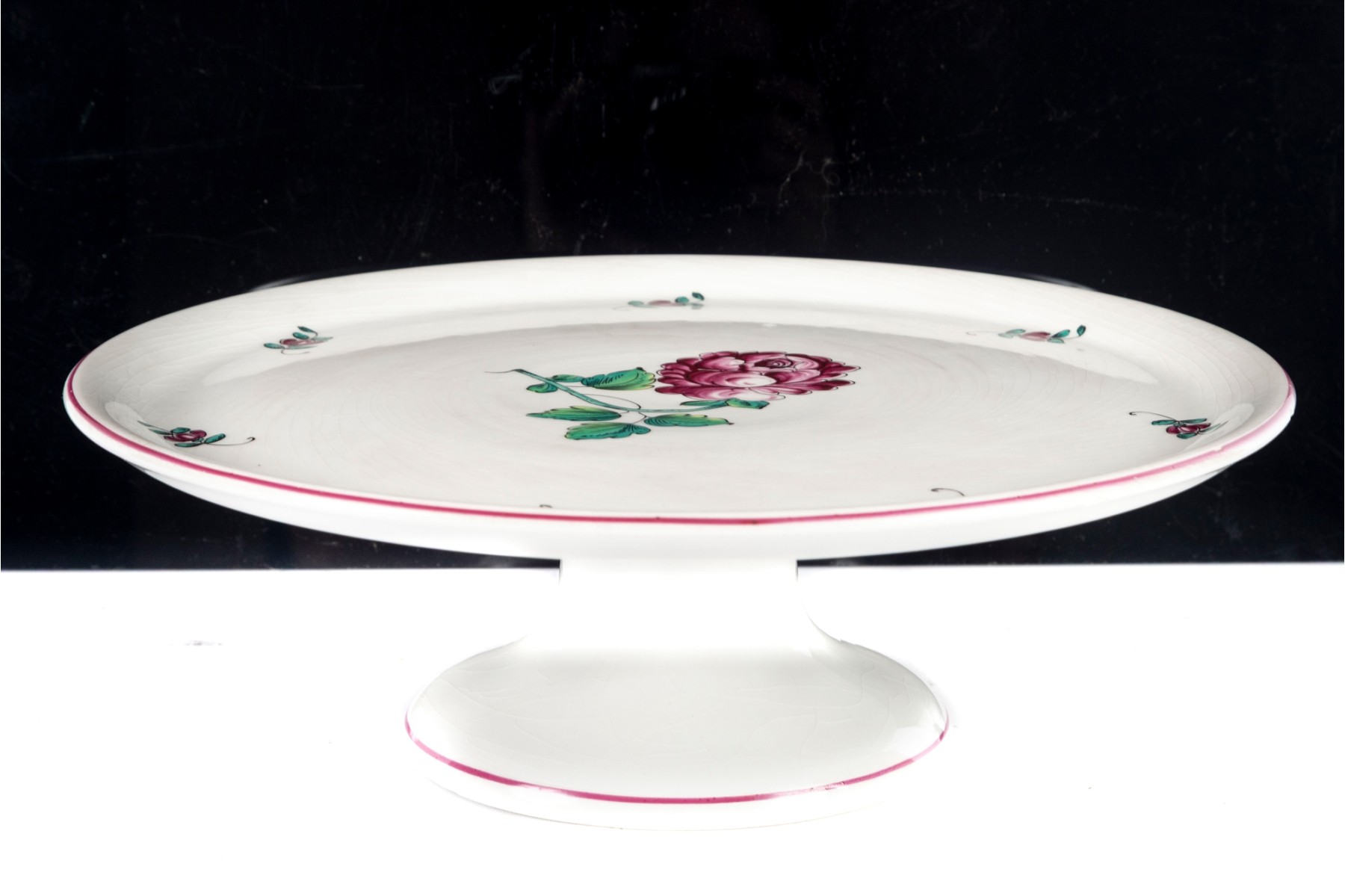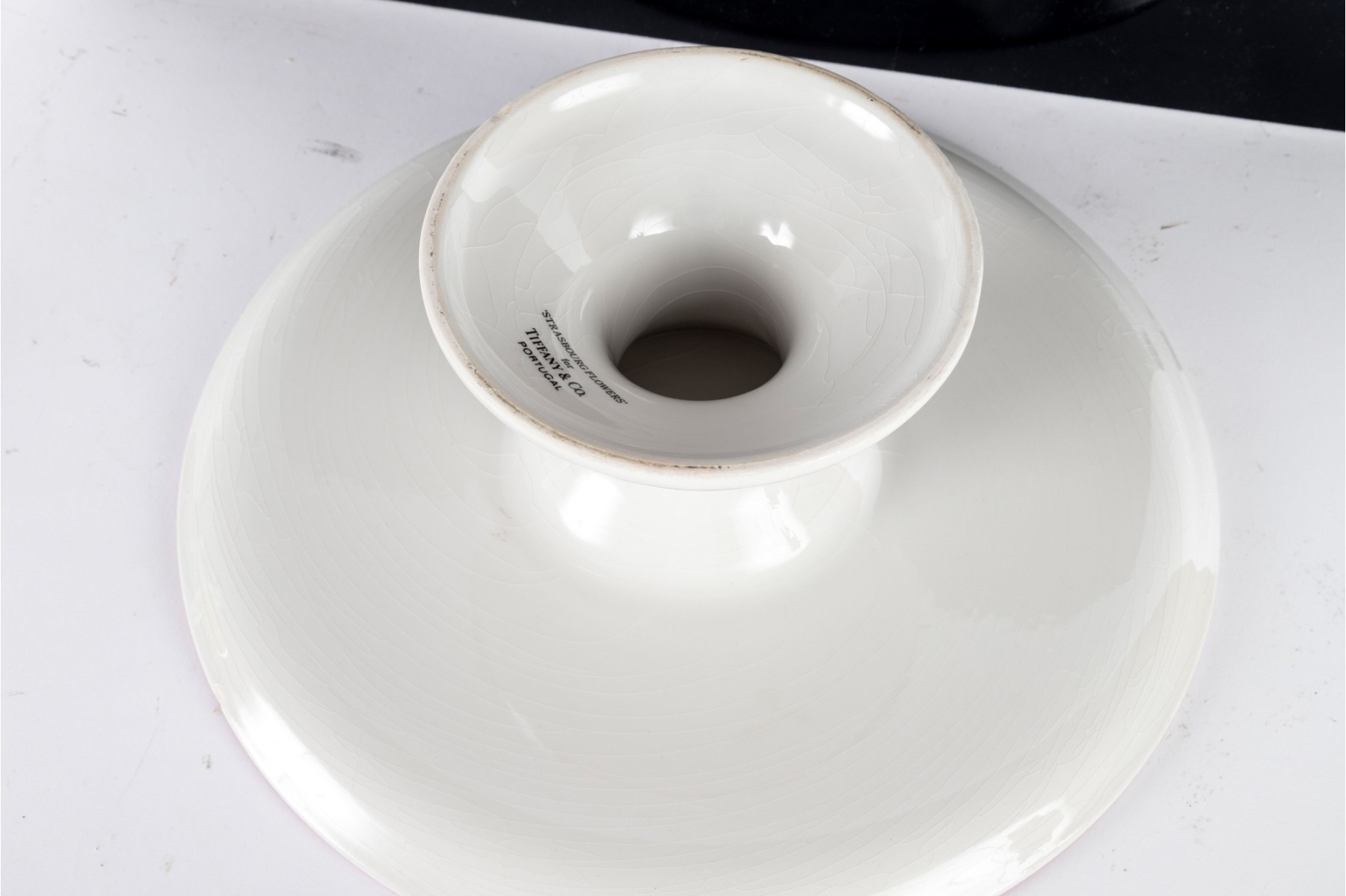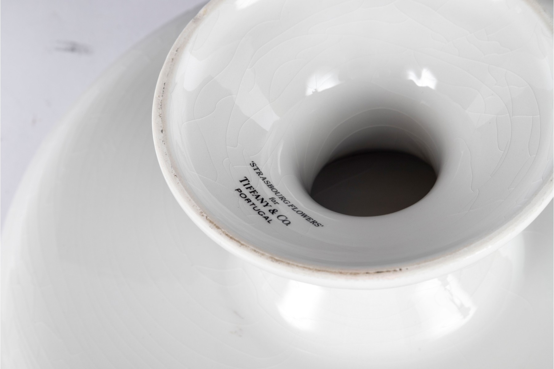 A lovely Tiffany & Co. "Strasbourg" collection 12.75" porcelain cake stand with centered floral motifs.