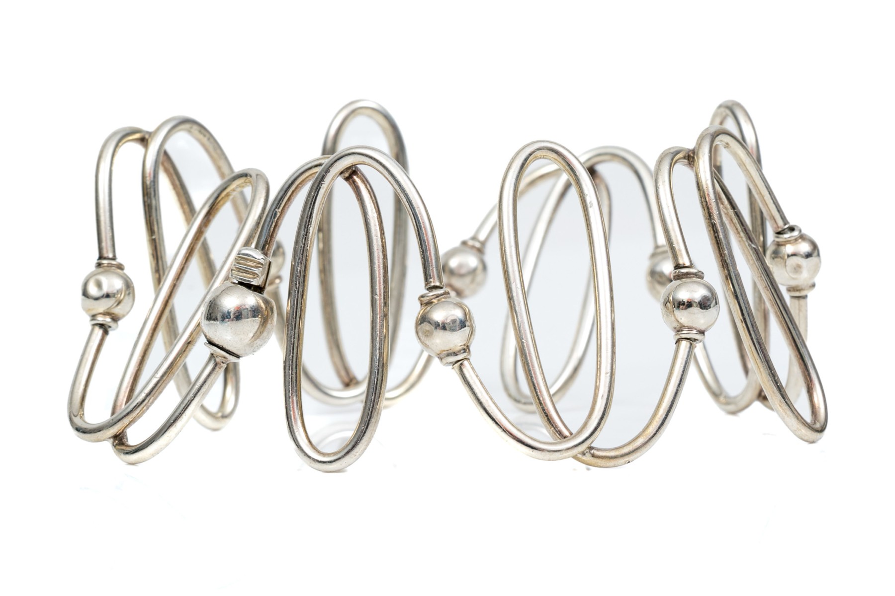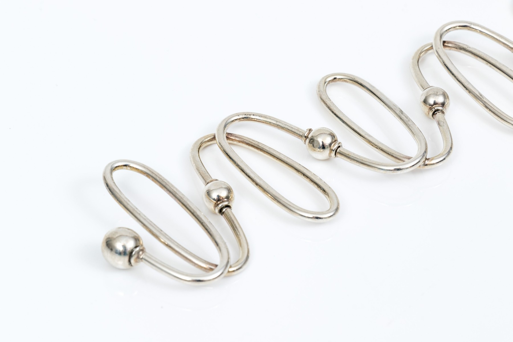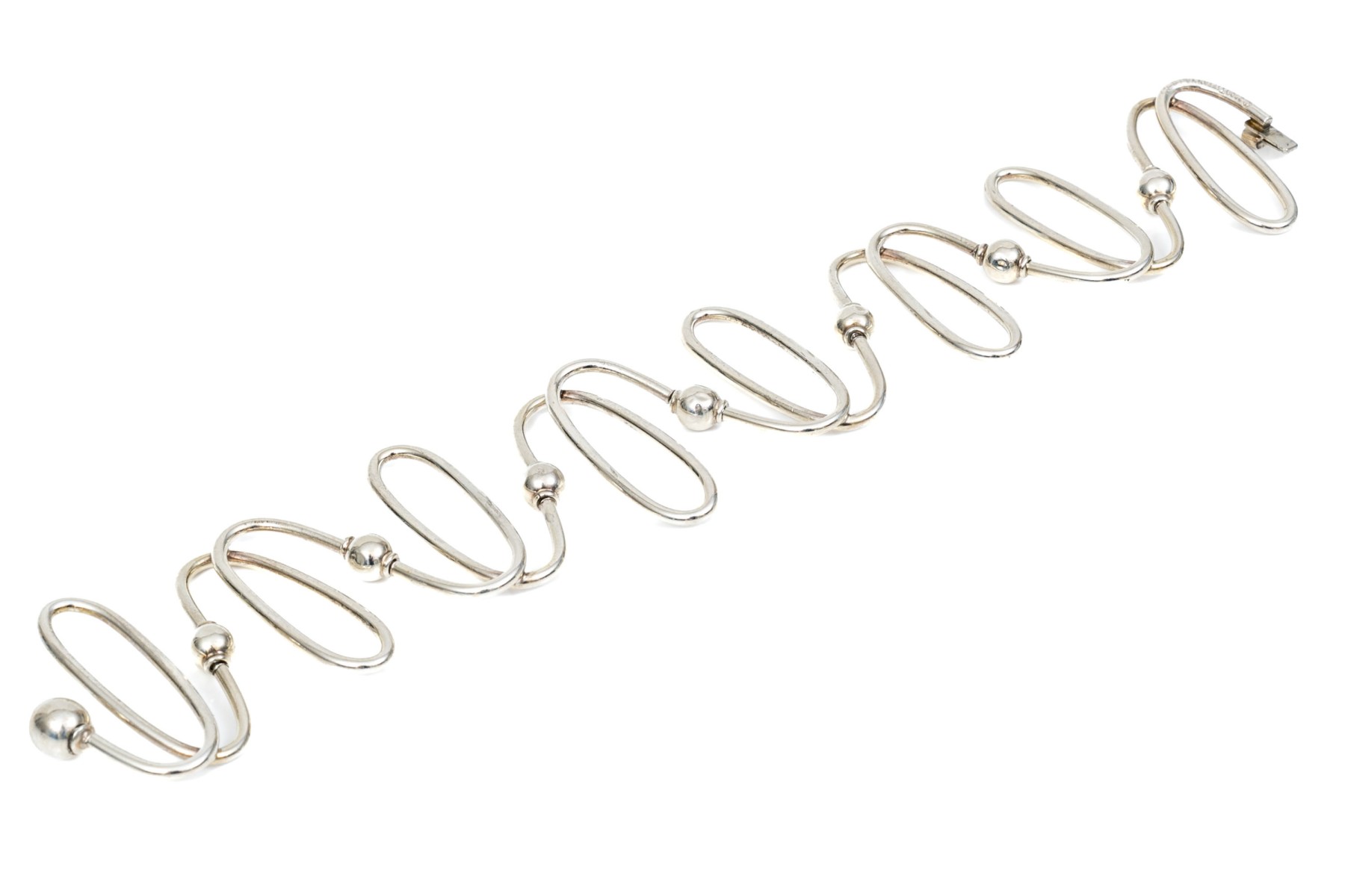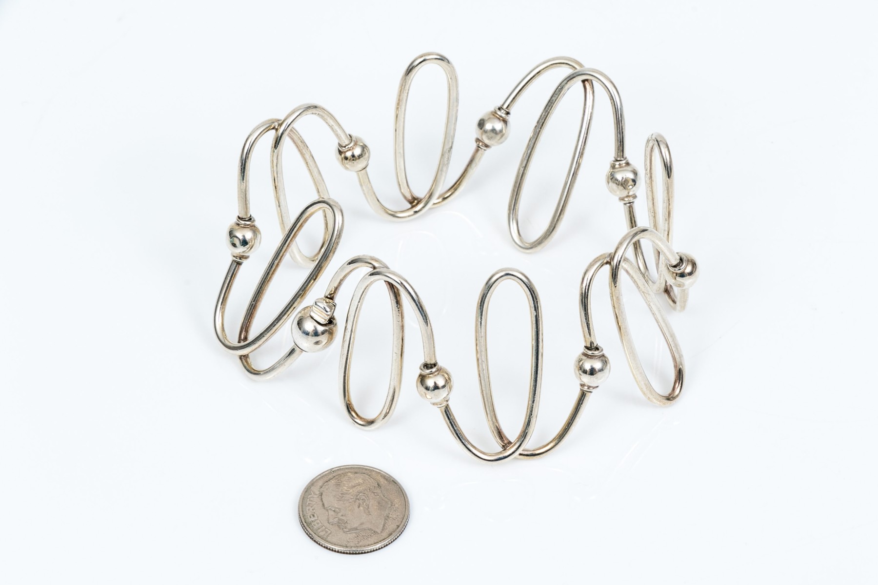 Tiffany & Co. striking sterling silver beautiful undulating link and ball bracelet, finished with a hidden ball clasp