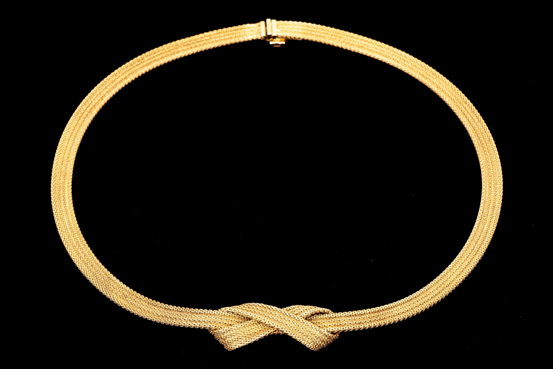 Tiffany & Co. Vintage 14k Yellow Gold Wonderful Vintage Mesh Knot Necklace, By Grosse Germany #448888. Black Rock Galleries provides high end estate liquidation services through online estate auctions and a 50,000 sq ft designer showroom. estate liquidator, estate sale, online auction, antiques, fine art, liquidation, clean outs, auction, consignment, interior design, fine jewelry, collectibles, appraisals, estate appraisals, estate services, decor, furniture, furniture consignment, antique center, consignment shop. We offer appraisal services and specialize in fine art, jewelry, antiques and decorative arts. Sell with us. Black Rock Galleries is the tri-state's largest estate liquidator serving New England and the greater New York City area. We are the trusted source for expert appraisals, auction services, estate sales, and consignments. Black Rock Galleries is the east coast's largest and most trusted estate liquidator, with locations in Connecticut, greater Boston, MA and Raleigh, NC, Fairfield, Southport, Apex, TX. We are the best source for expert appraisals, auction services, estate sales and consignments. We have served thousands of families and estates with compassion, professionalism and expertise. BRG works with attorneys, executors, realtors and families to bring the greatest return on personal and estate property in the current market. Our unique combination of services make us the easy choice to get the job done in a timely and stress-free manner. We are with you from the initial consultation to the final clean out. Our house-built online auction software platform offers clients a dynamic approach to liquidating their personal property. This venue is most successful in bringing the best return with the least amount of disruption for our clients. See our services page for a complete description of this offering. Tiffany & Co. Vintage 14k Yellow Gold Wonderful Vintage Mesh Knot Necklace, By Grosse Germany #448888