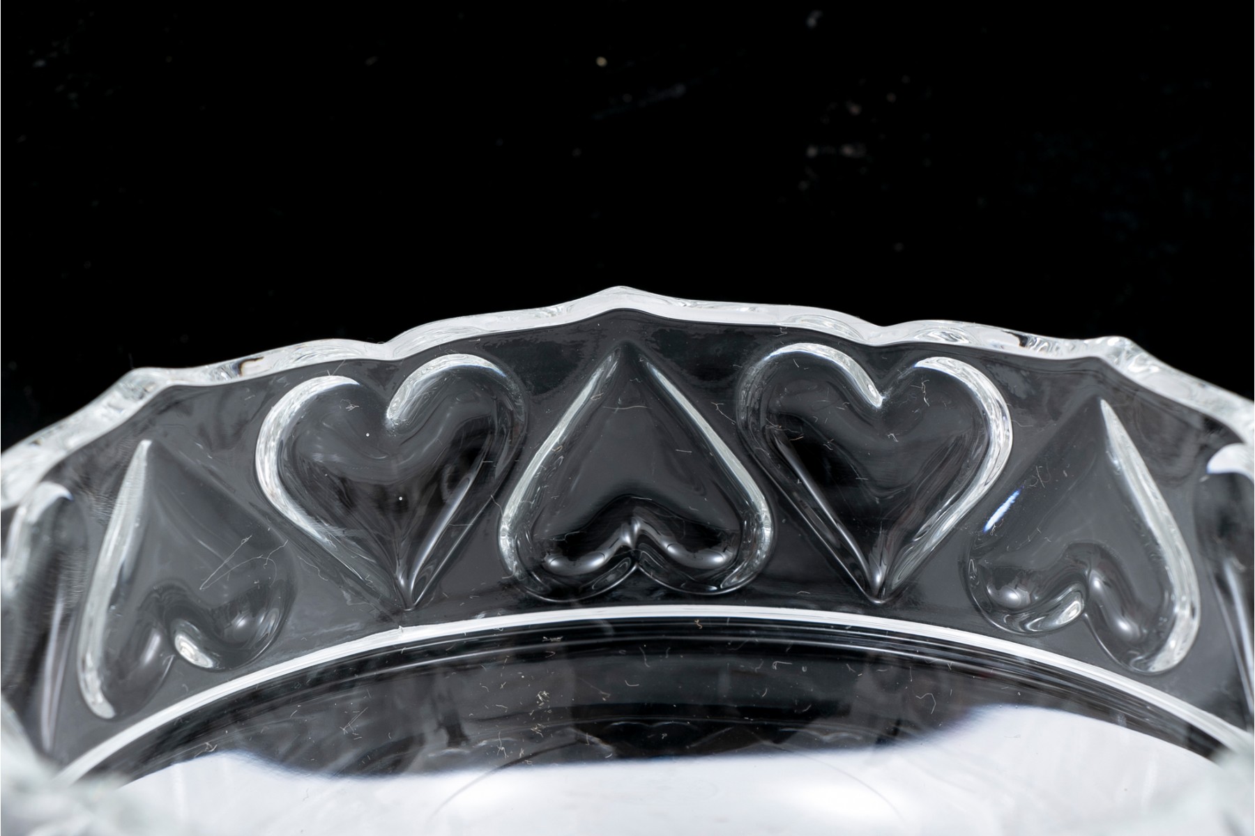 Tiffany & Co. crystal footed bowl with alternating relief heart border and scalloped rim. Acid etched on verso Tiffany & Co.