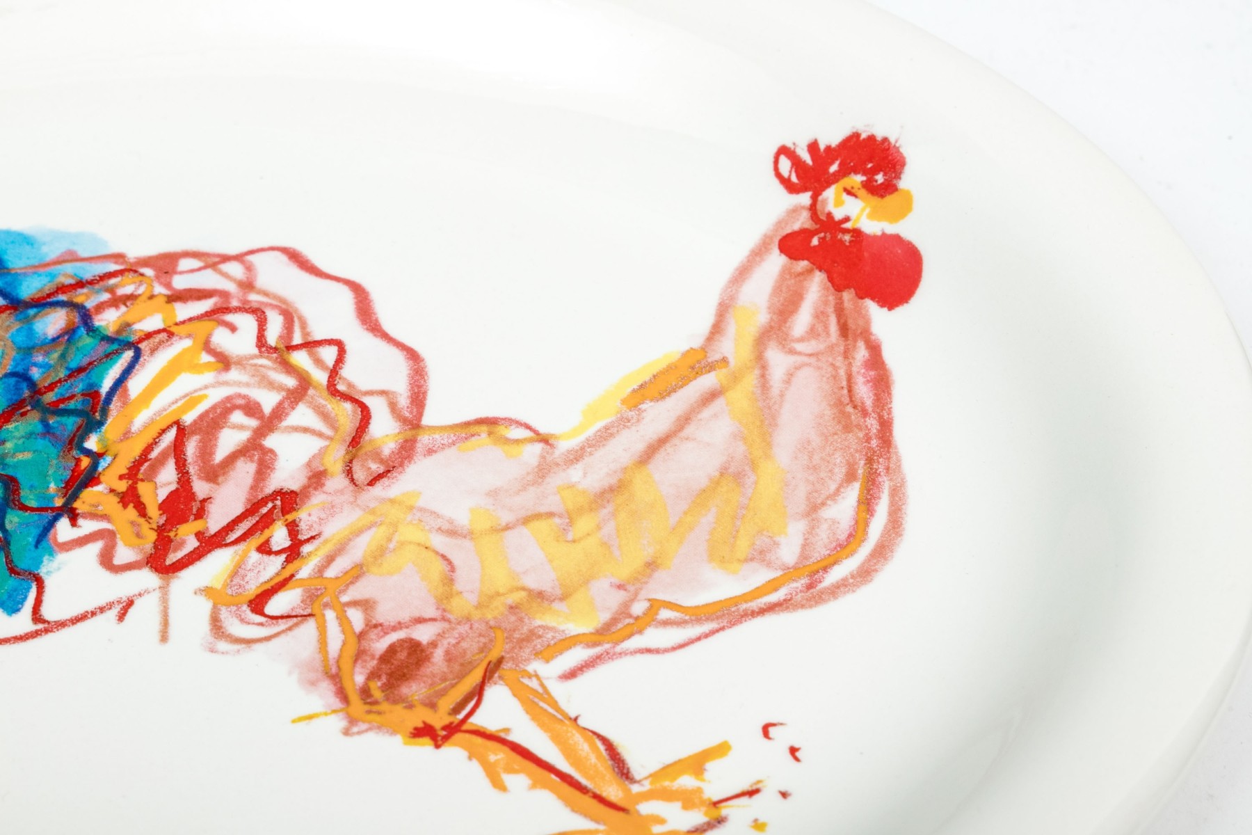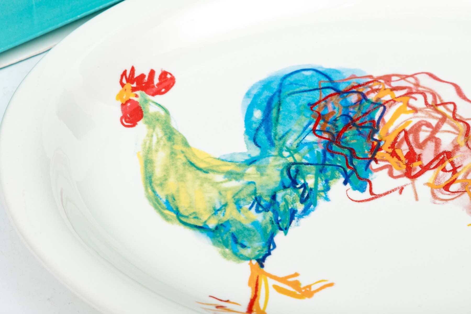 Made in England, 1998. An oval platter with two polychrome roosters.