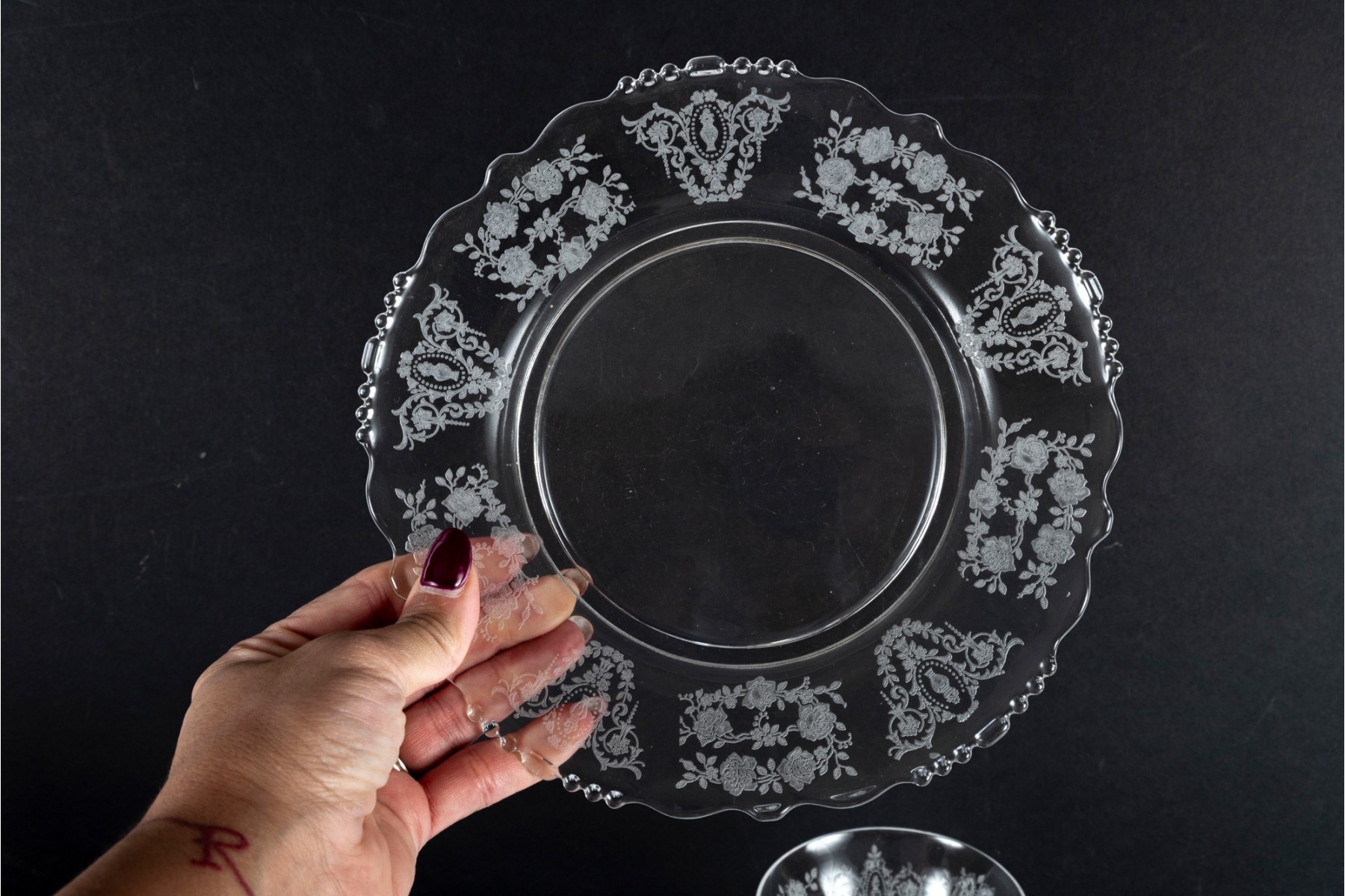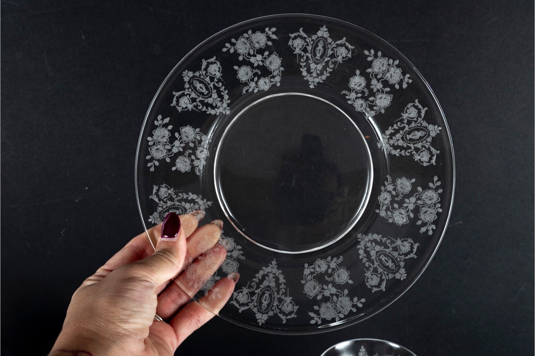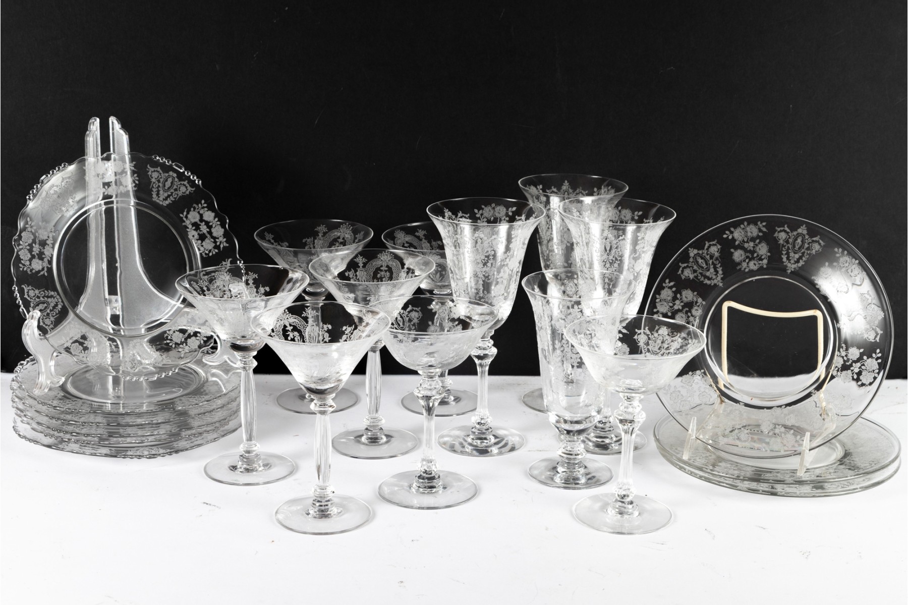 Tiffin-Franciscan "Cherokee Rose" Etched Glass Luncheon Service