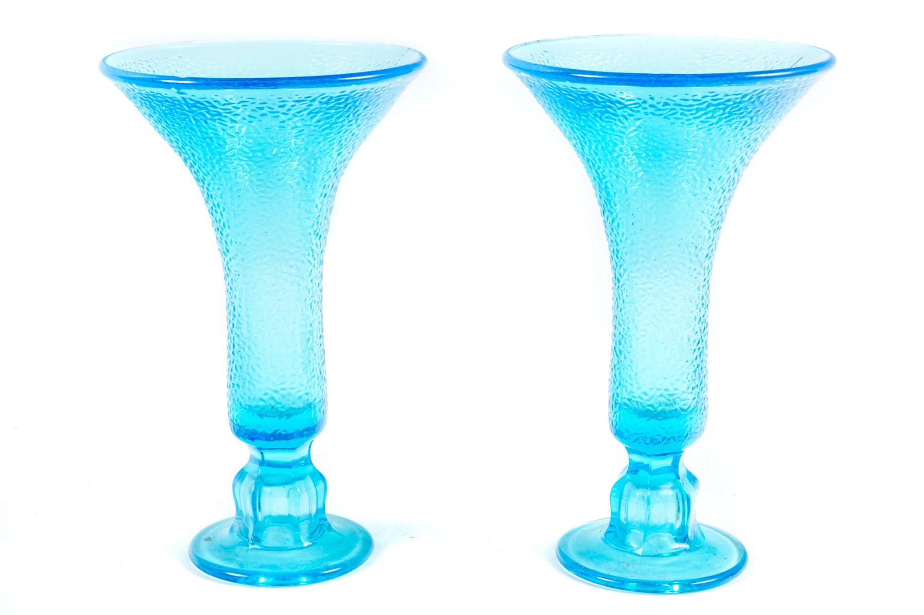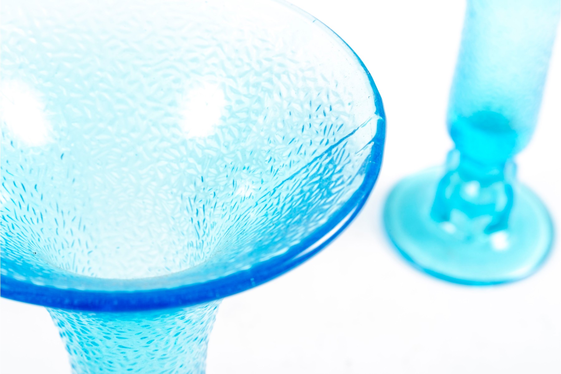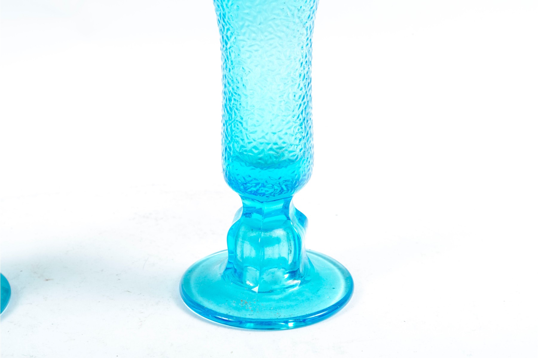 No. 328 Tiffin Glass Brilliancy candlestick holders in Sky Blue. Made circa 1925 to the 1930's. Early advertisements described this pattern as "stippled glassware".