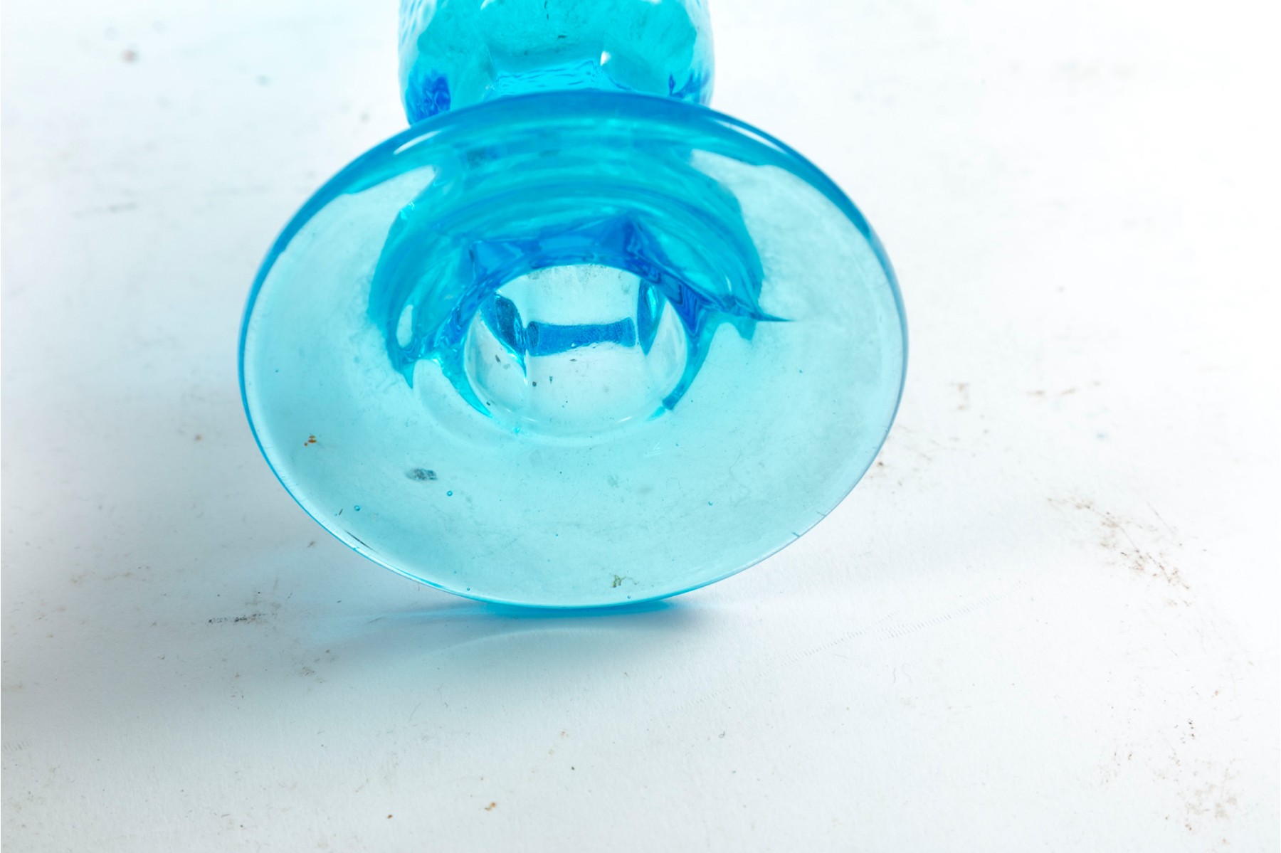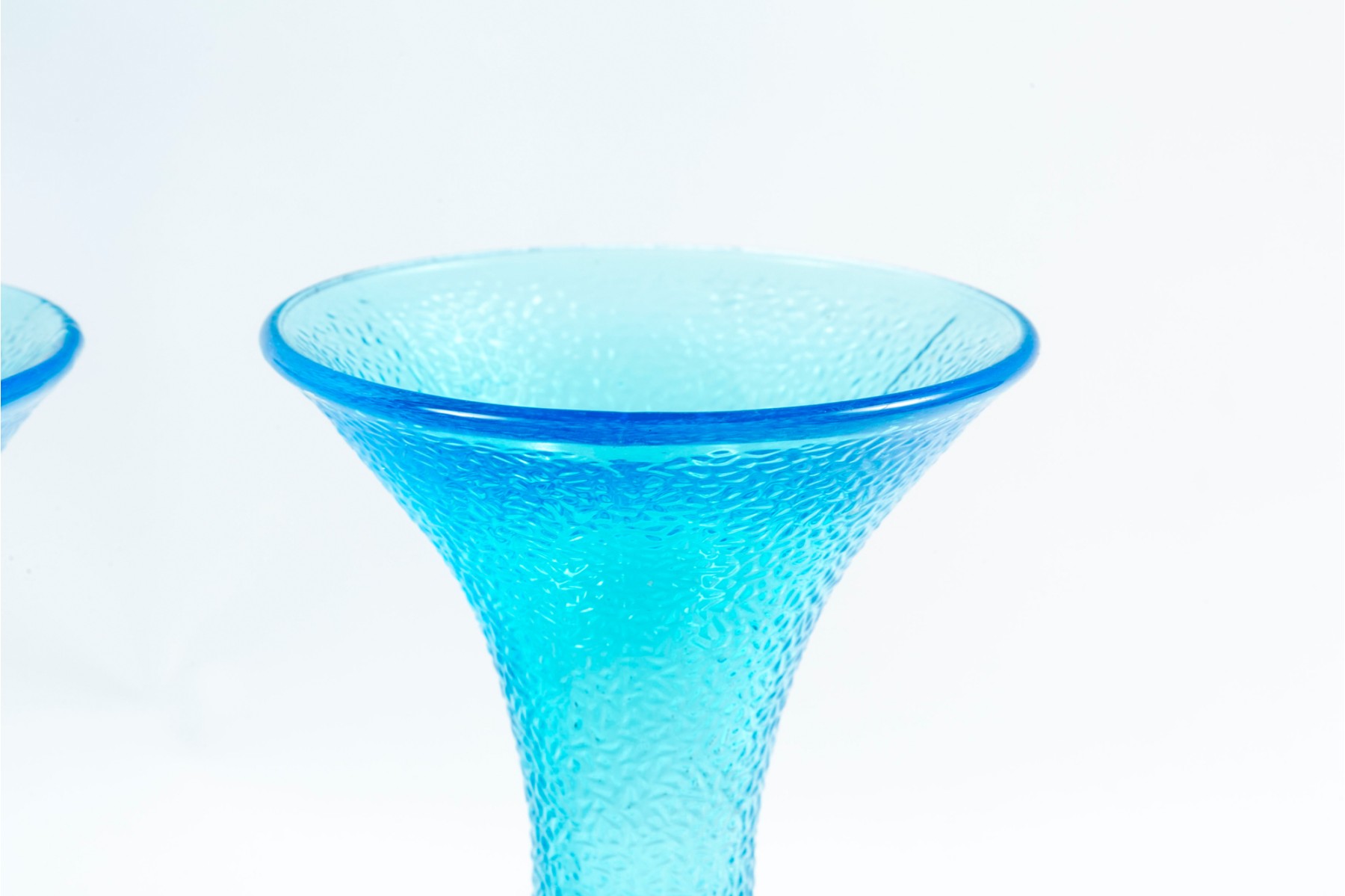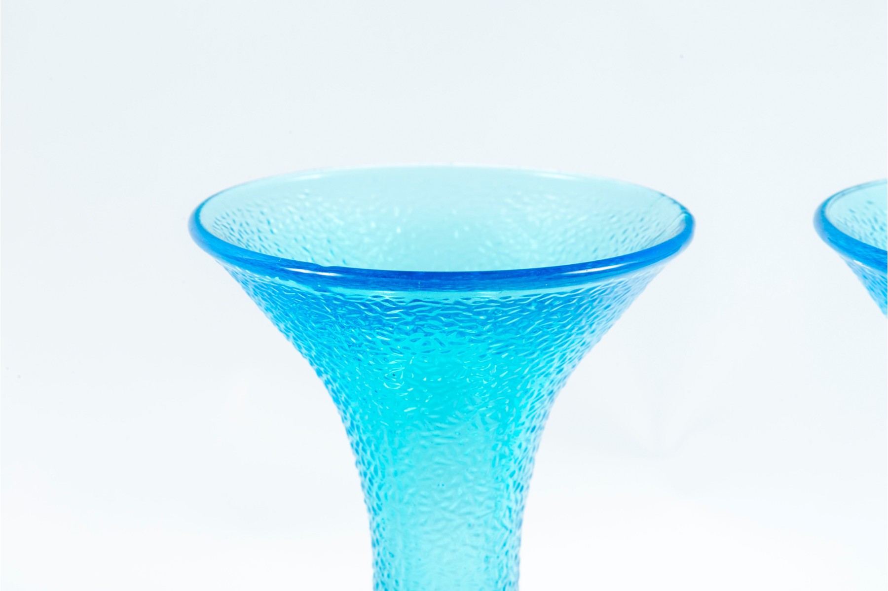 No. 328 Tiffin Glass Brilliancy candlestick holders in Sky Blue. Made circa 1925 to the 1930's. Early advertisements described this pattern as "stippled glassware".