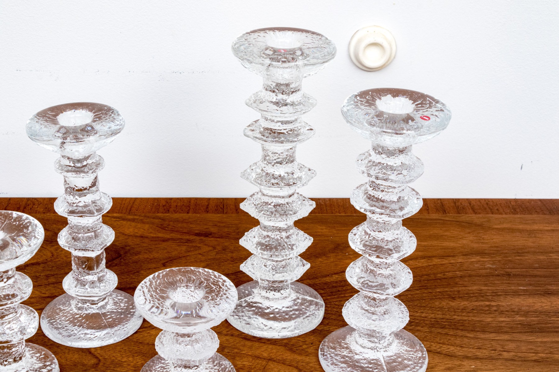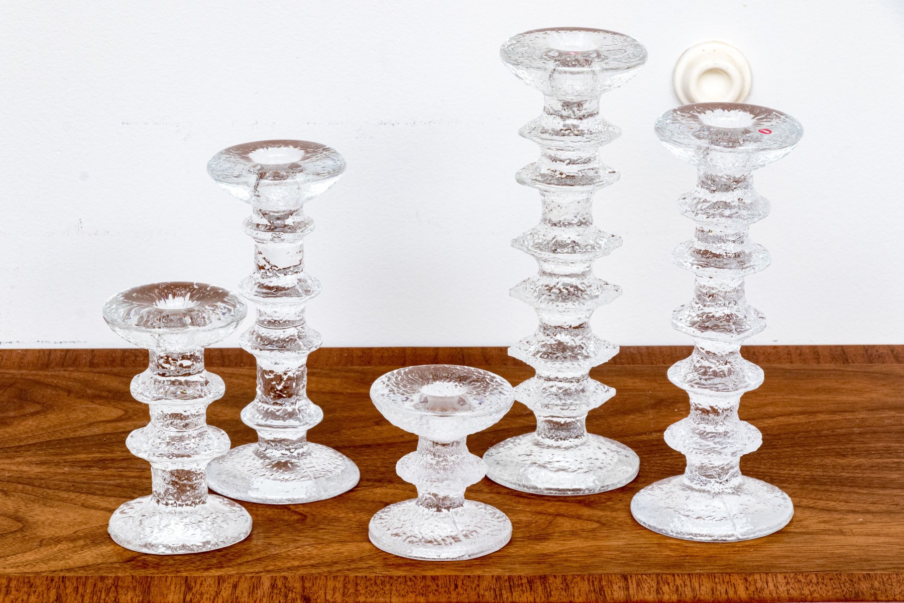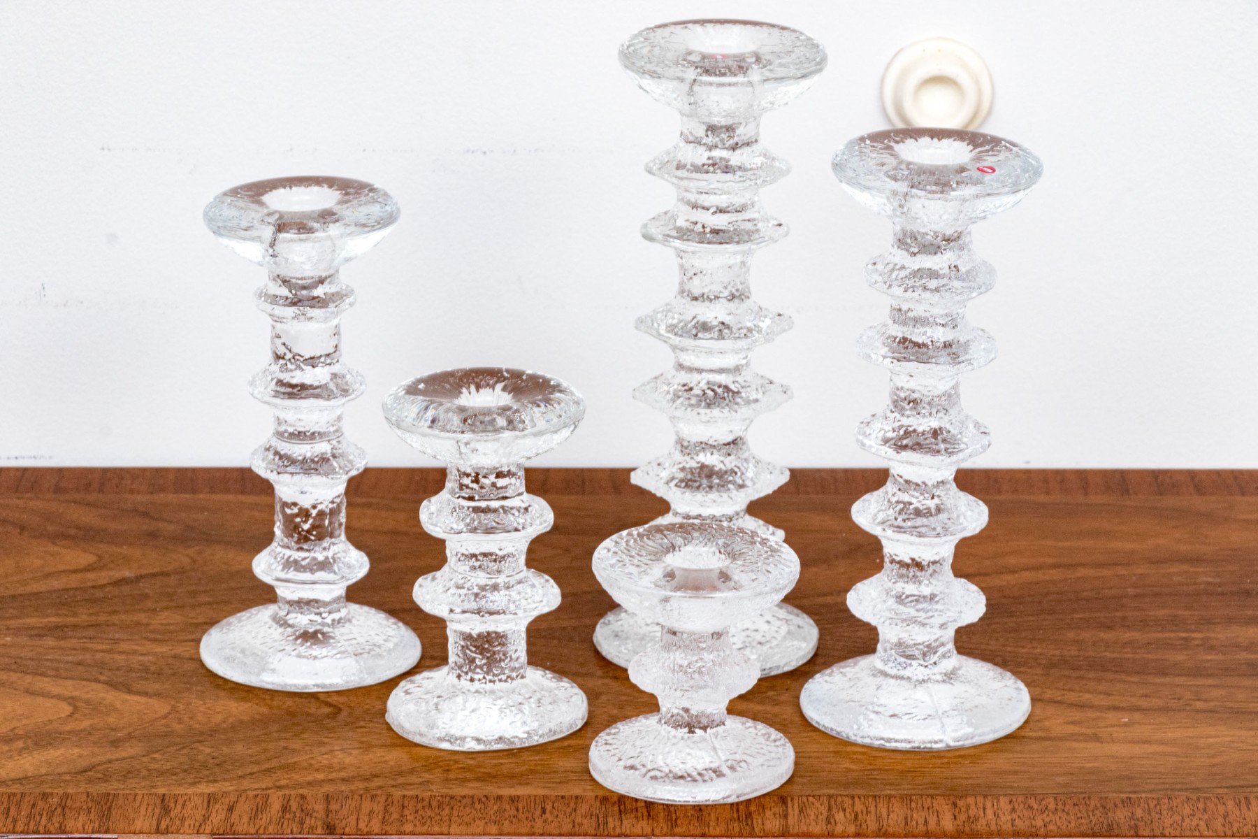 A gorgeous collection of Timo Sarpaneva Iittala "Festivo" candlesticks in a variety of heights, sporting ribbed and textured columns.