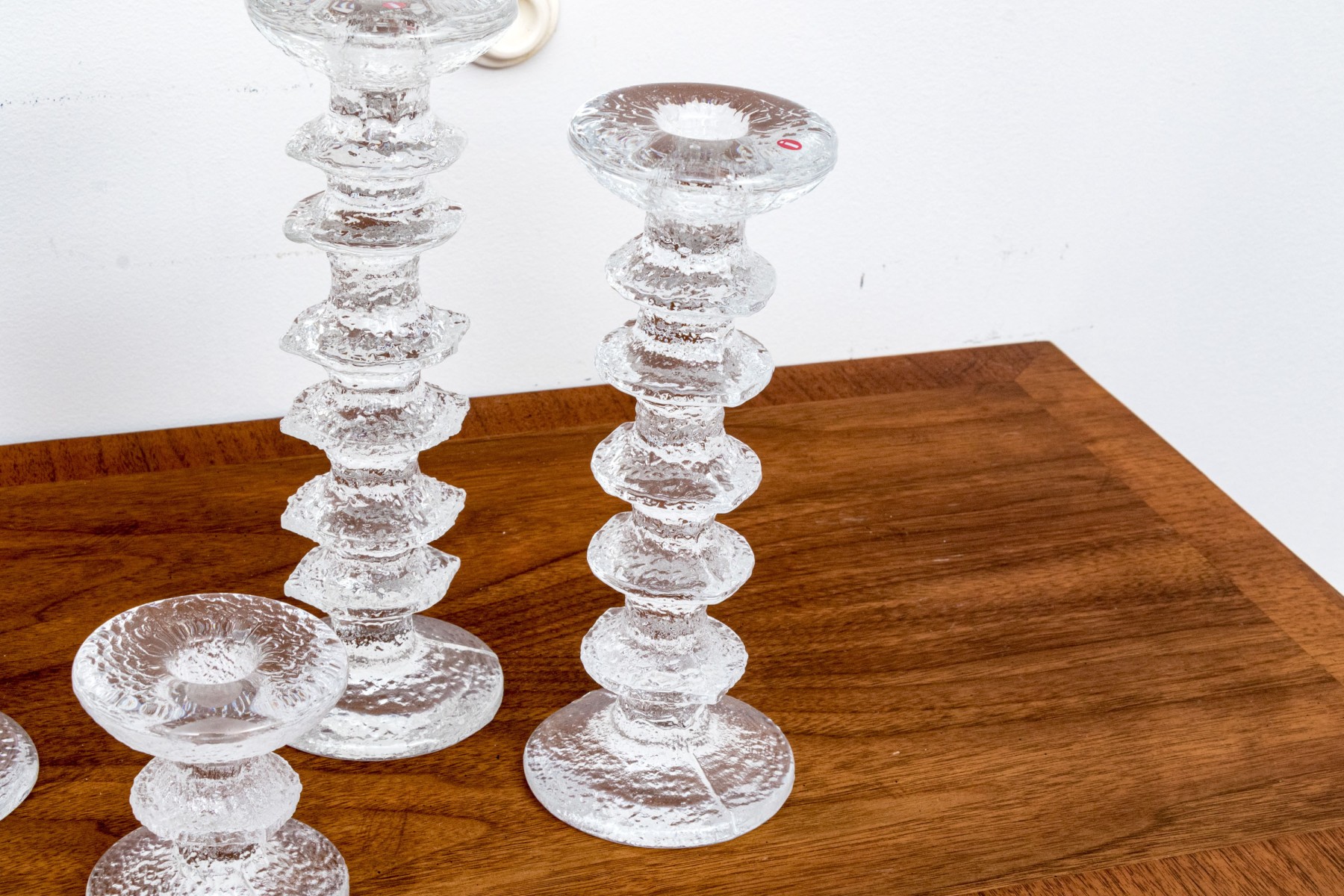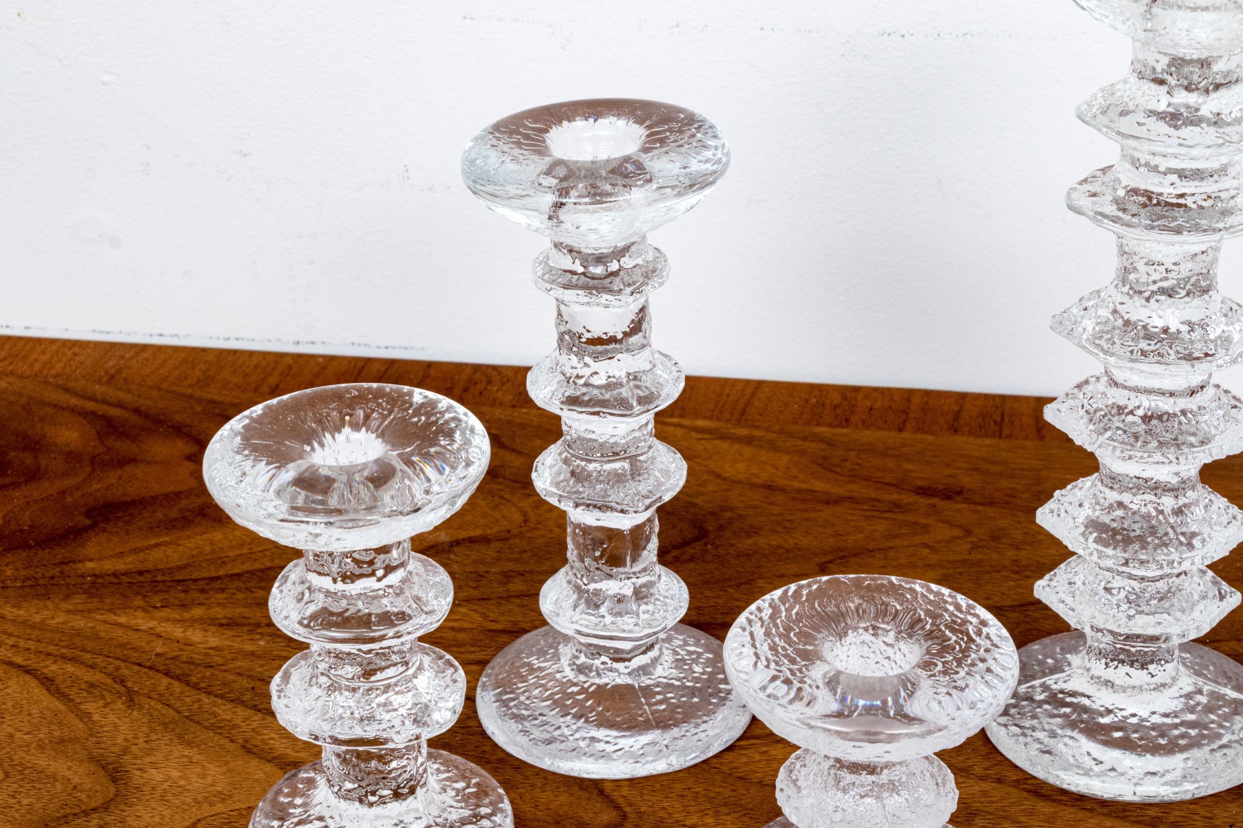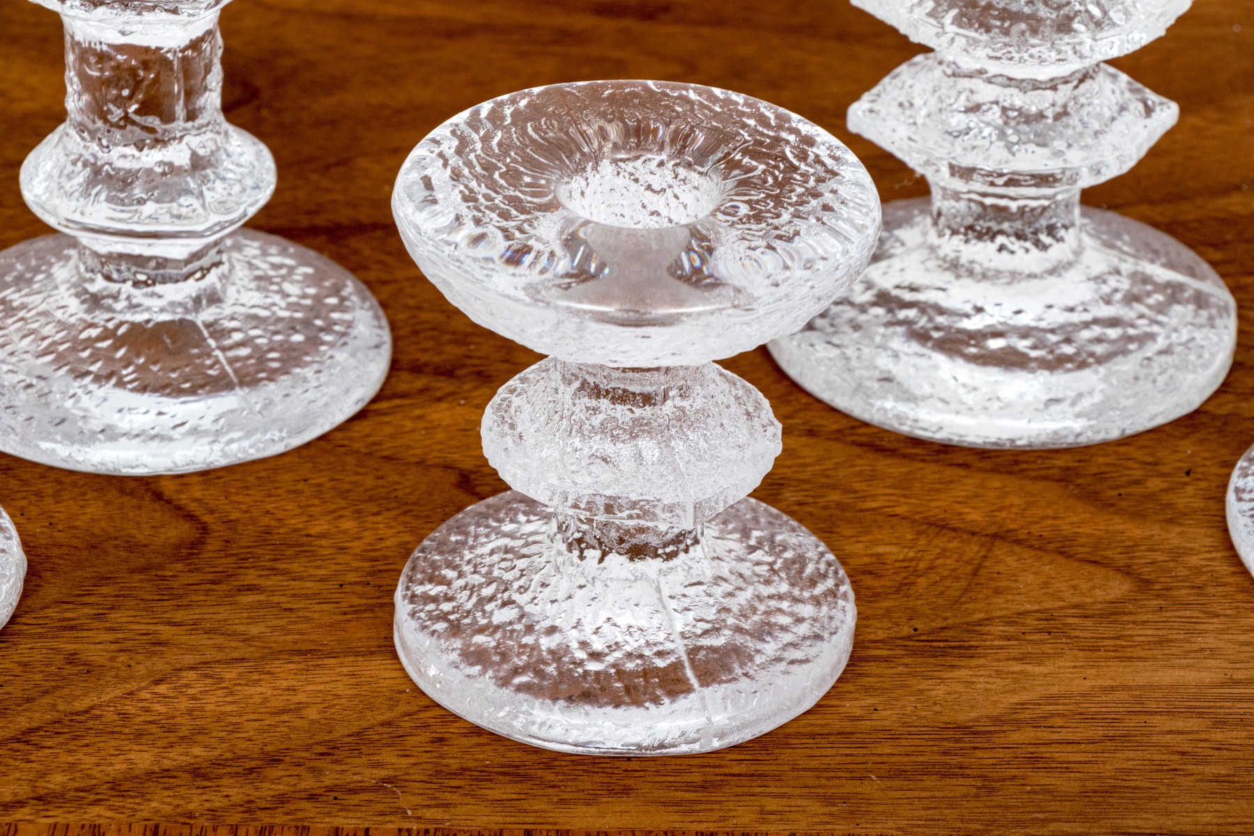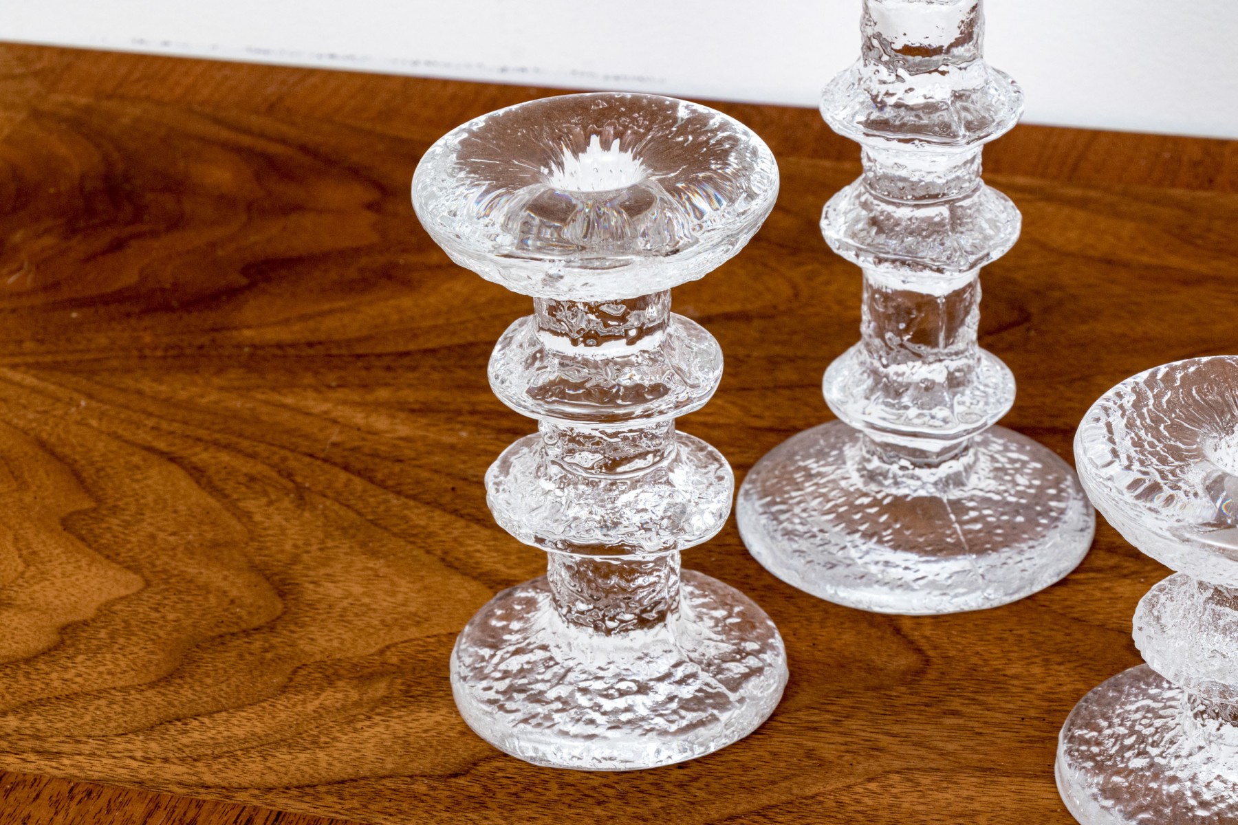 A gorgeous collection of Timo Sarpaneva Iittala "Festivo" candlesticks in a variety of heights, sporting ribbed and textured columns.
