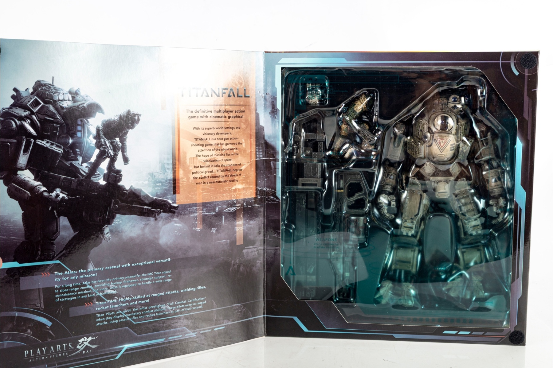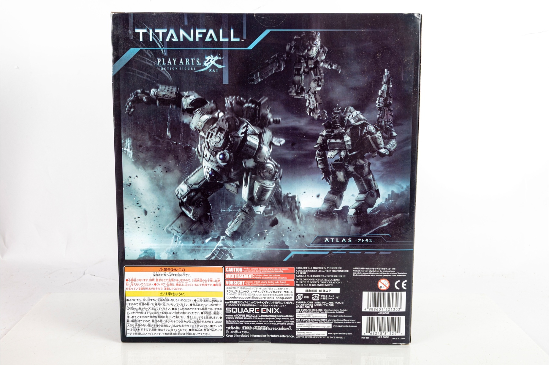 Highly detailed Play Arts Kai action figure from the hit video game Titanfall, produced by Square Enix in collaboration with Respawn Entertainment and EA. This large-scale collectible set features the Atlas Titan and pilot, both meticulously designed with multiple points of articulation and an array of weapon accessories for dynamic posing.