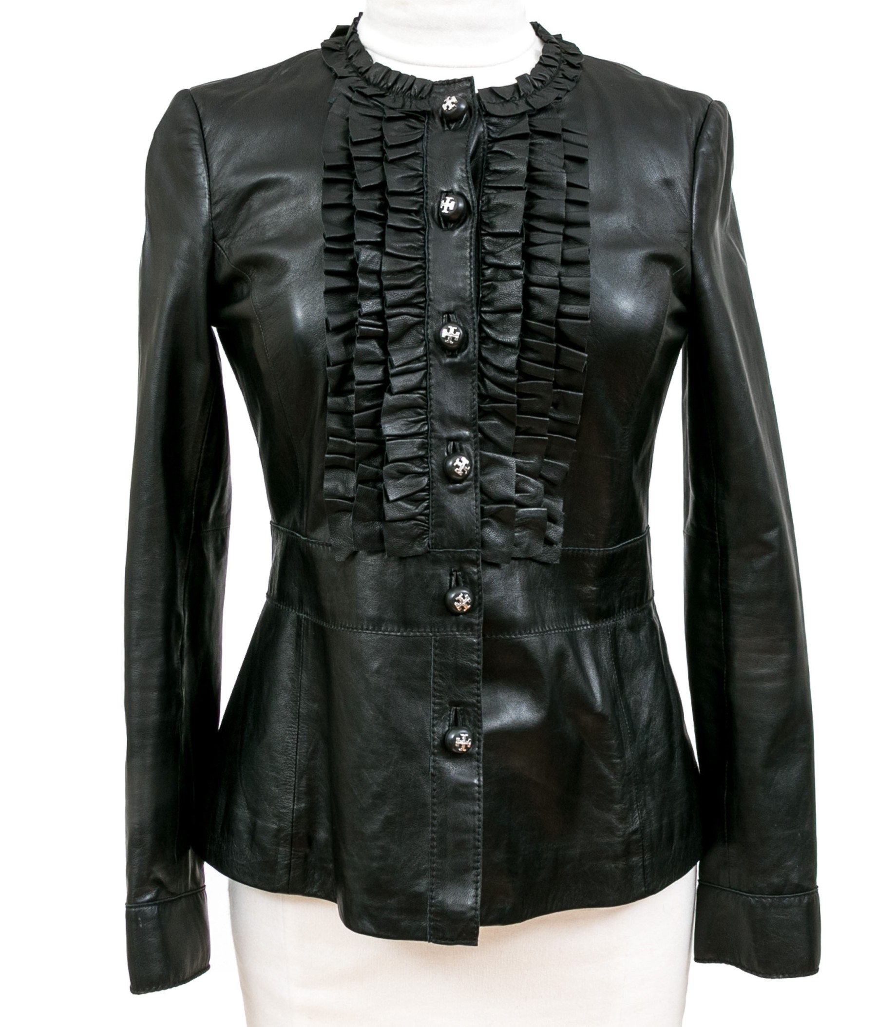 Tory Burch Beautiful Black Leather Ruffled Button Front Leather Jacket, Size 6 #323635. Black Rock Galleries provides high end estate liquidation services through online estate auctions and a 50,000 sq ft designer showroom. estate liquidator, estate sale, online auction, antiques, fine art, liquidation, clean outs, auction, consignment, interior design, fine jewelry, collectibles, appraisals, estate appraisals, estate services, decor, furniture, furniture consignment, antique center, consignment shop. We offer appraisal services and specialize in fine art, jewelry, antiques and decorative arts. Sell with us. Black Rock Galleries is the tri-state's largest estate liquidator serving New England and the greater New York City area. We are the trusted source for expert appraisals, auction services, estate sales, and consignments. Black Rock Galleries is the east coast's largest and most trusted estate liquidator, with locations in Connecticut, greater Boston, MA and Raleigh, NC, Fairfield, Southport, Apex, TX. We are the best source for expert appraisals, auction services, estate sales and consignments. We have served thousands of families and estates with compassion, professionalism and expertise. BRG works with attorneys, executors, realtors and families to bring the greatest return on personal and estate property in the current market. Our unique combination of services make us the easy choice to get the job done in a timely and stress-free manner. We are with you from the initial consultation to the final clean out. Our house-built online auction software platform offers clients a dynamic approach to liquidating their personal property. This venue is most successful in bringing the best return with the least amount of disruption for our clients. See our services page for a complete description of this offering. Tory Burch Beautiful Black Leather Ruffled Button Front Leather Jacket, Size 6 #323635