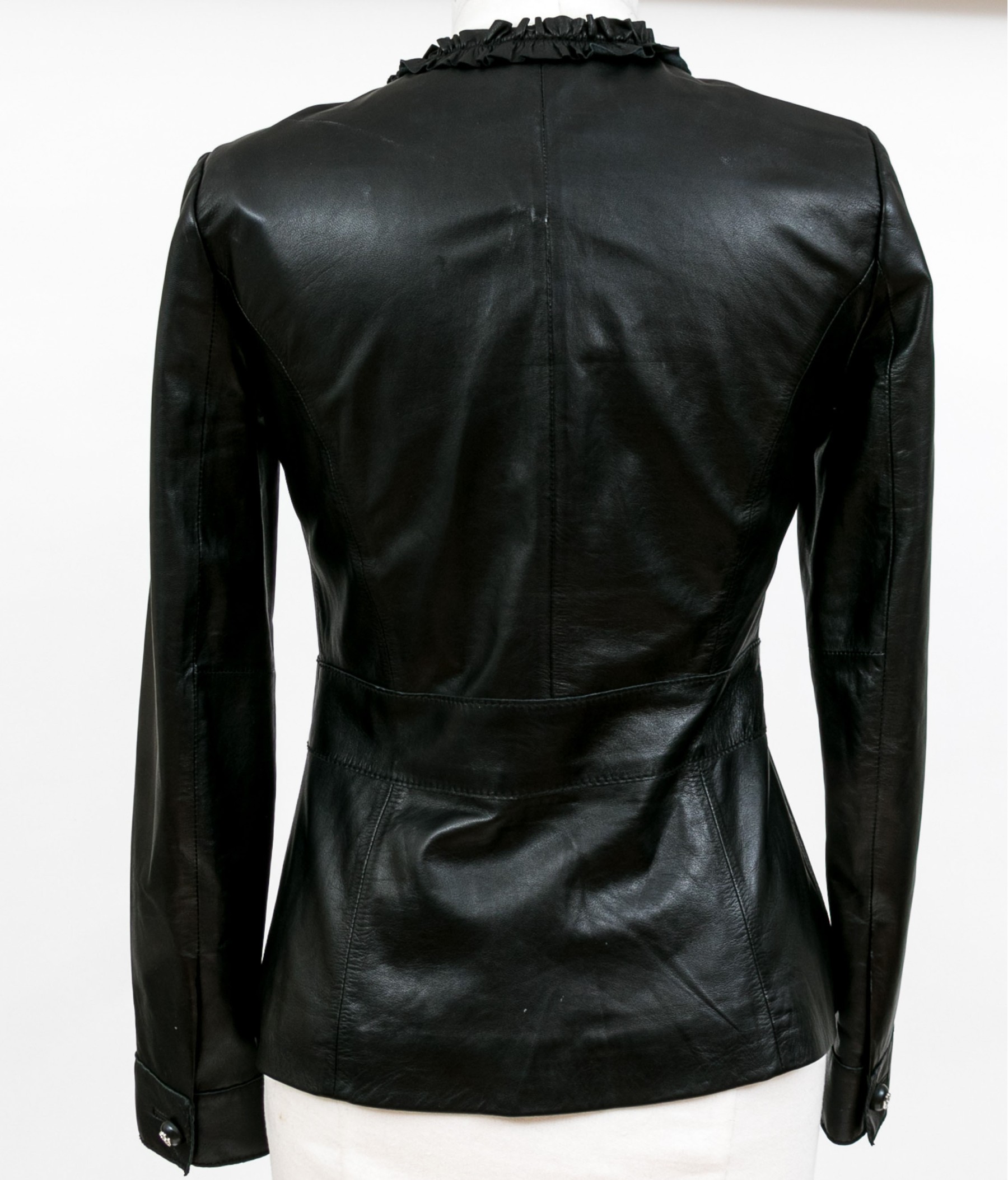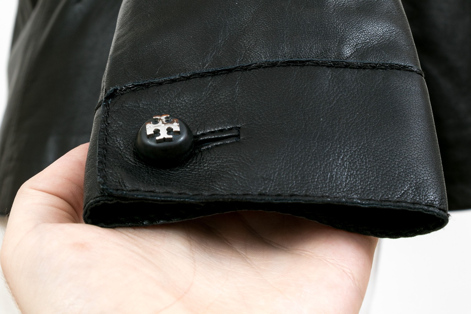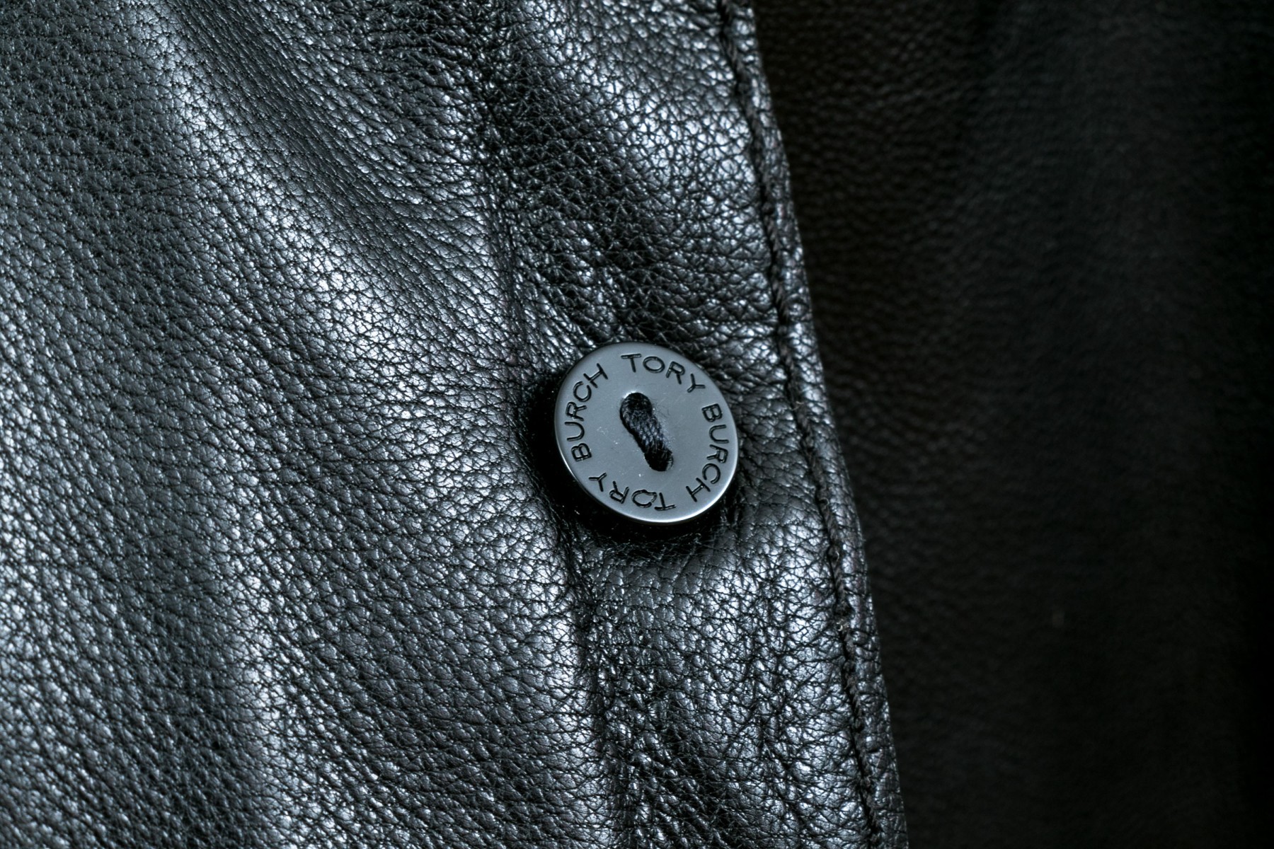 Tory Burch beautiful black leather ruffled button front leather jacket, size 6