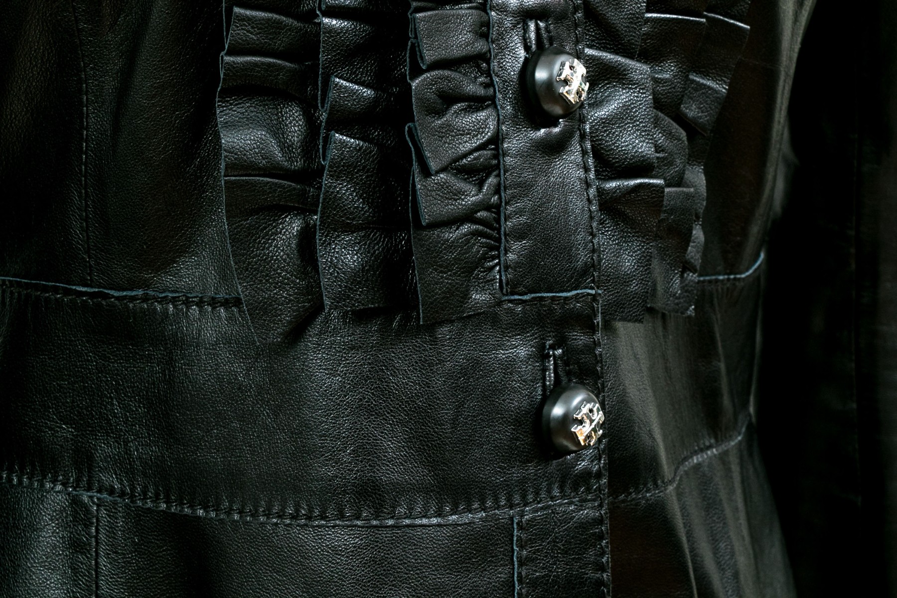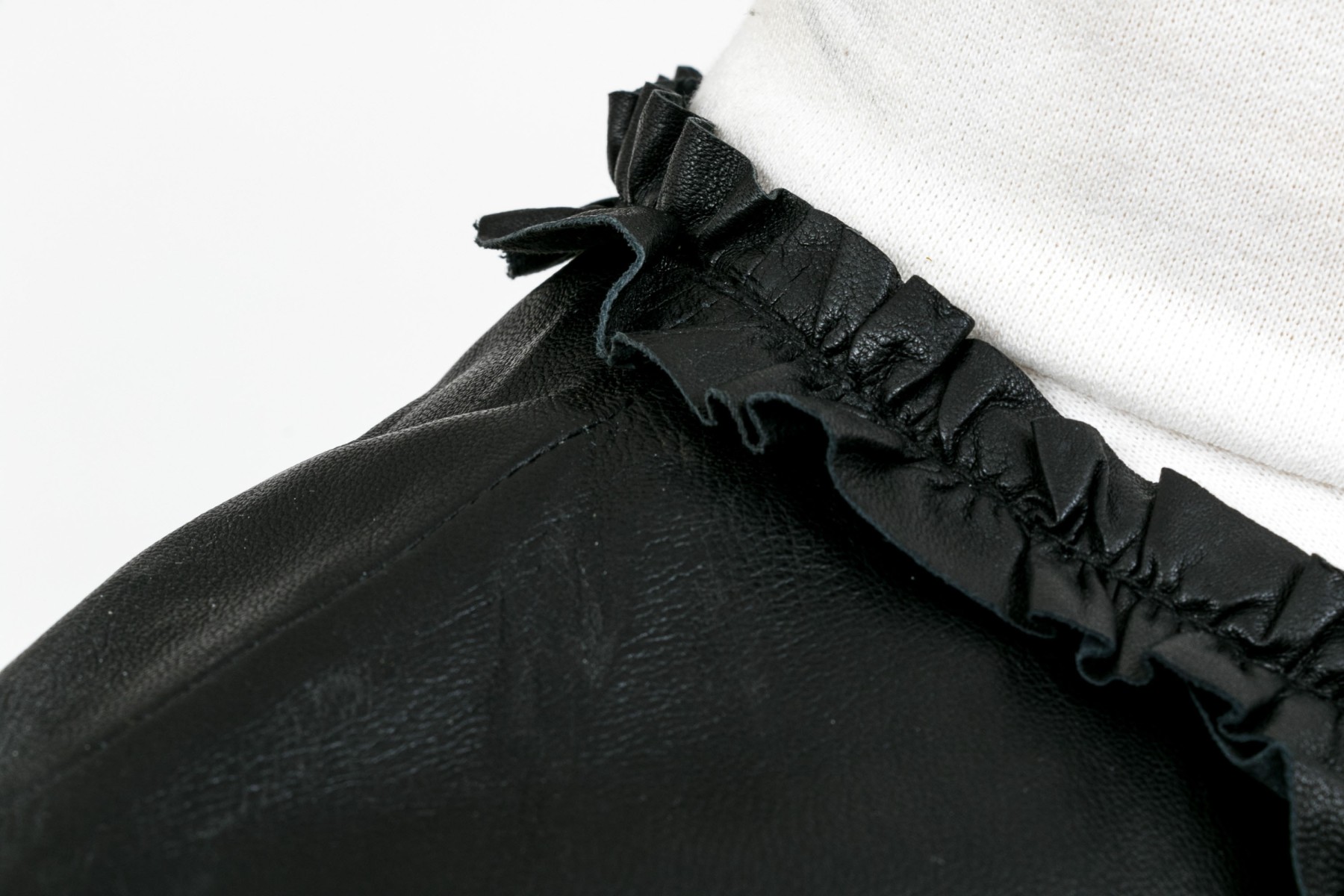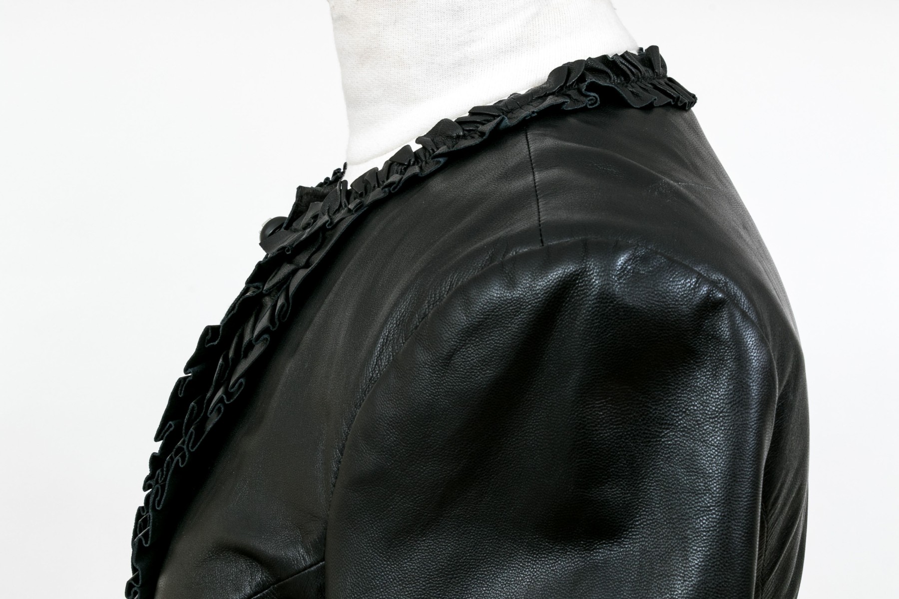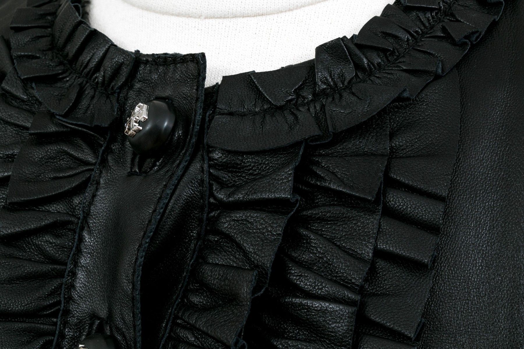 Tory Burch beautiful black leather ruffled button front leather jacket, size 6