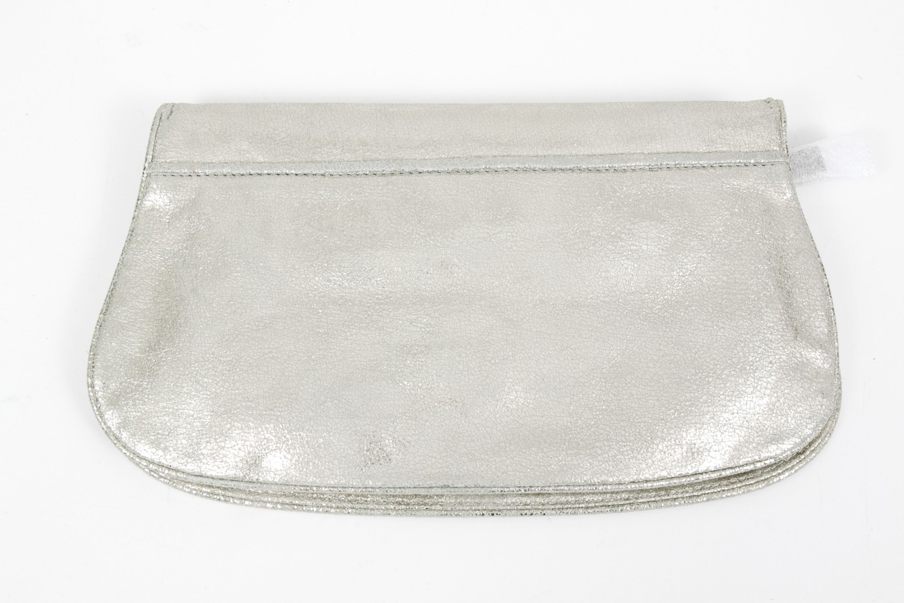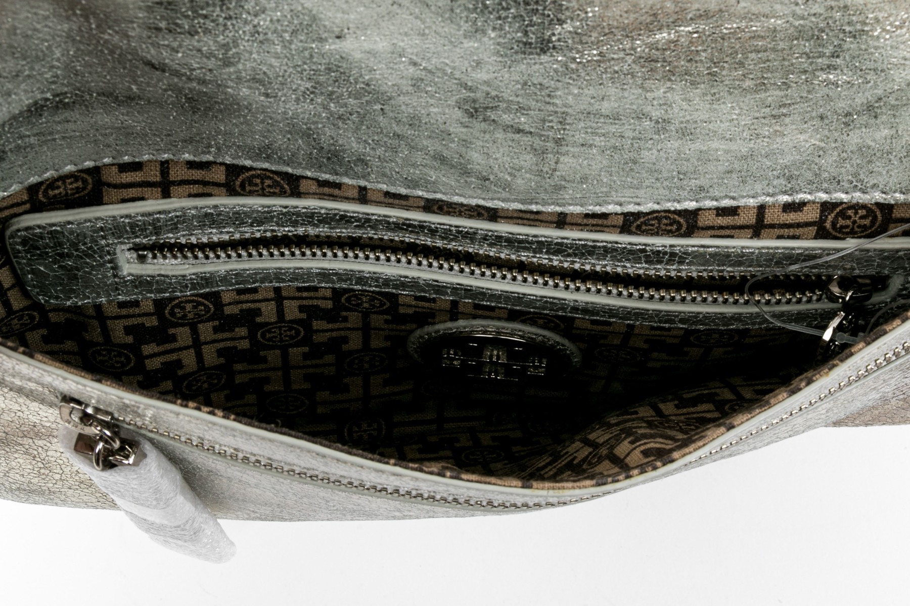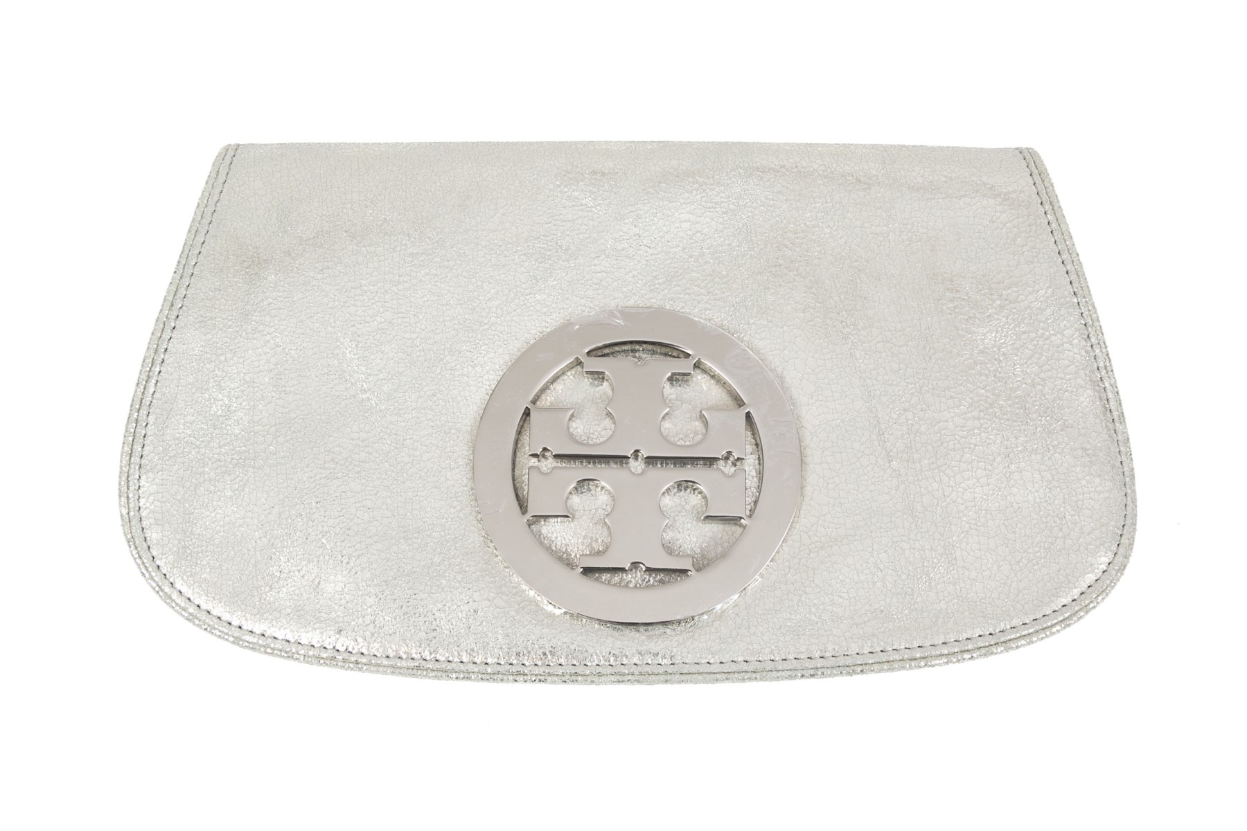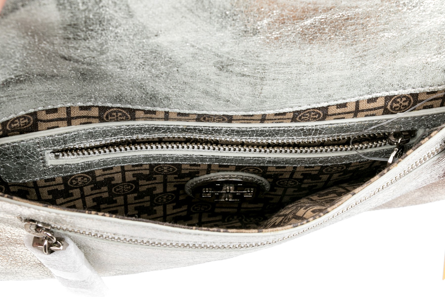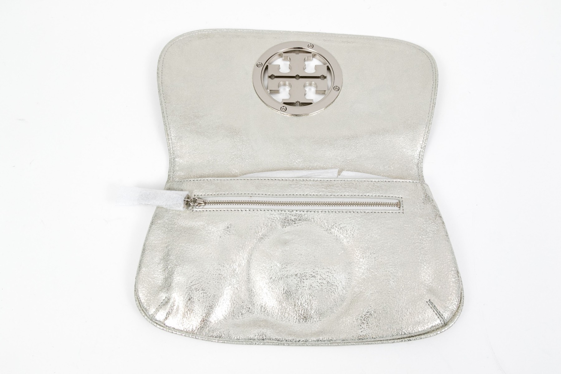 Tory Burch fabulous new old stock silver metallic leather clutch, with dust bag