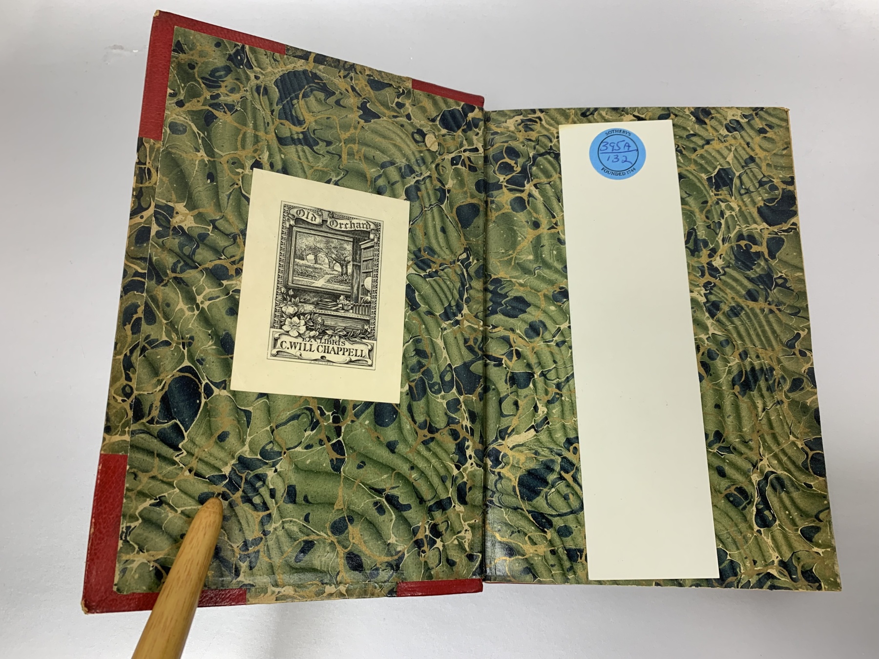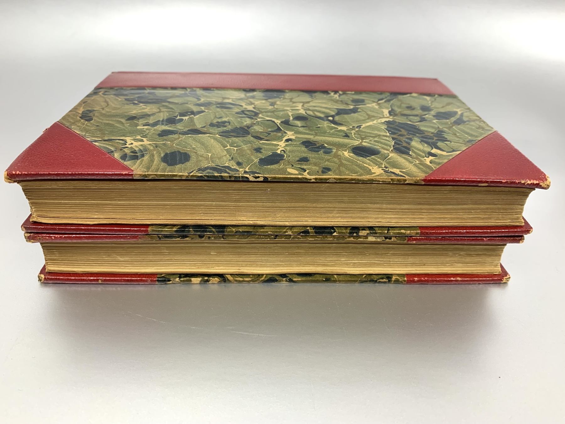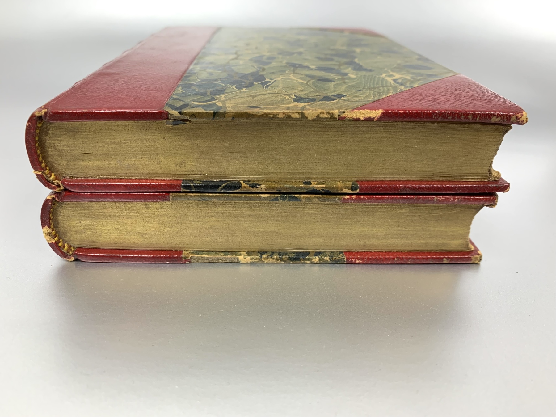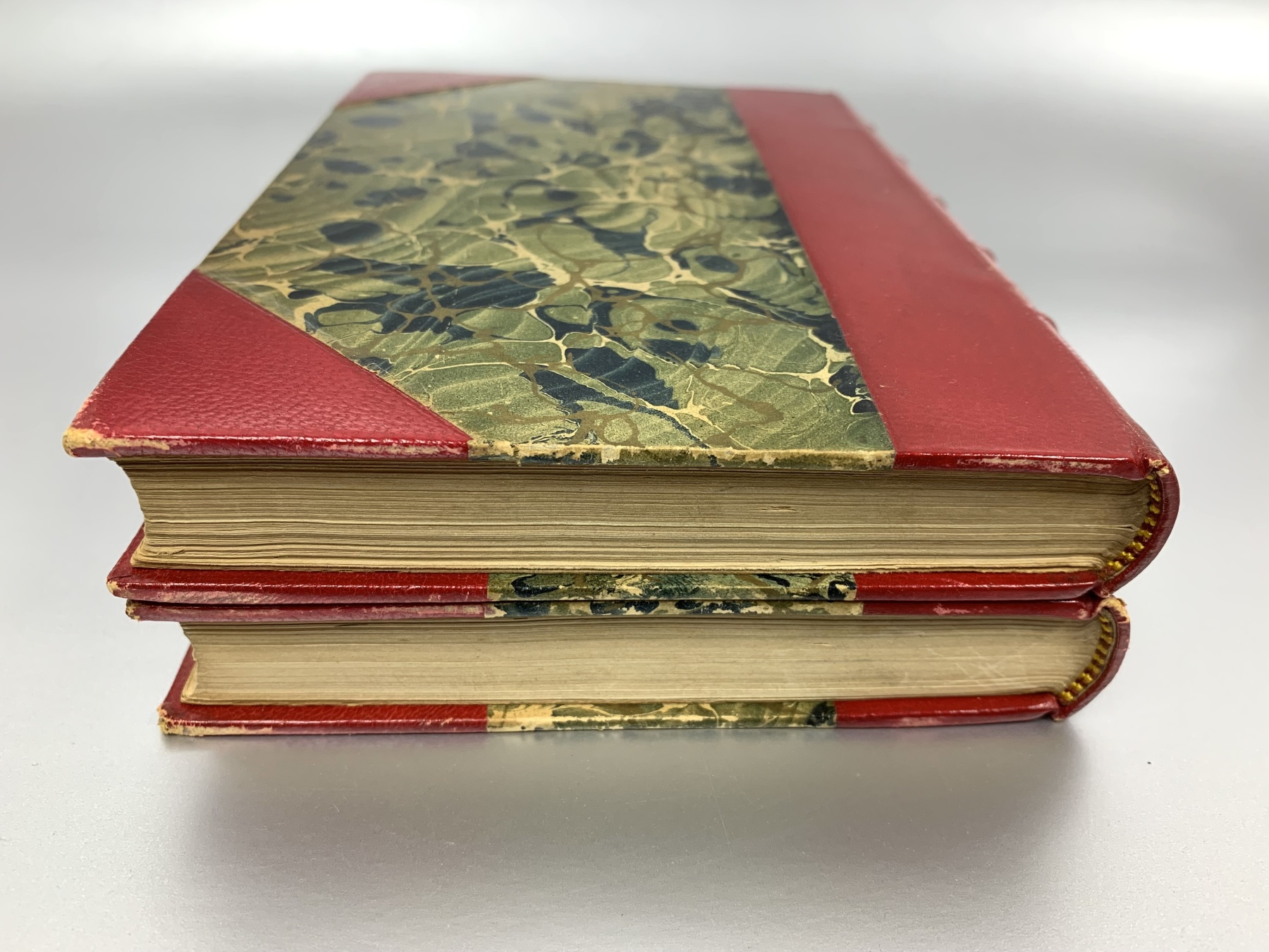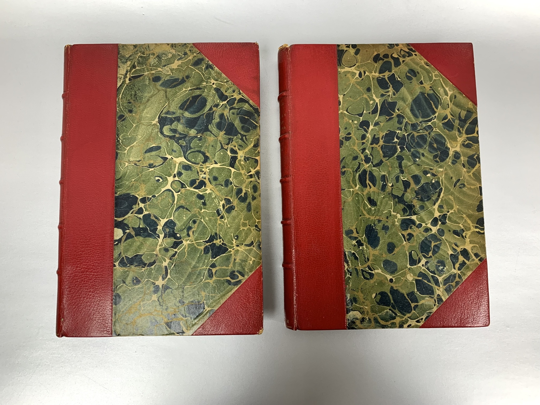 Two volumes with gilt decorated red leather, top edge gilt, marbleized boards with red leather corners, marbleized end-wraps. One book with a Sotheby's bookmark/auction sticker.