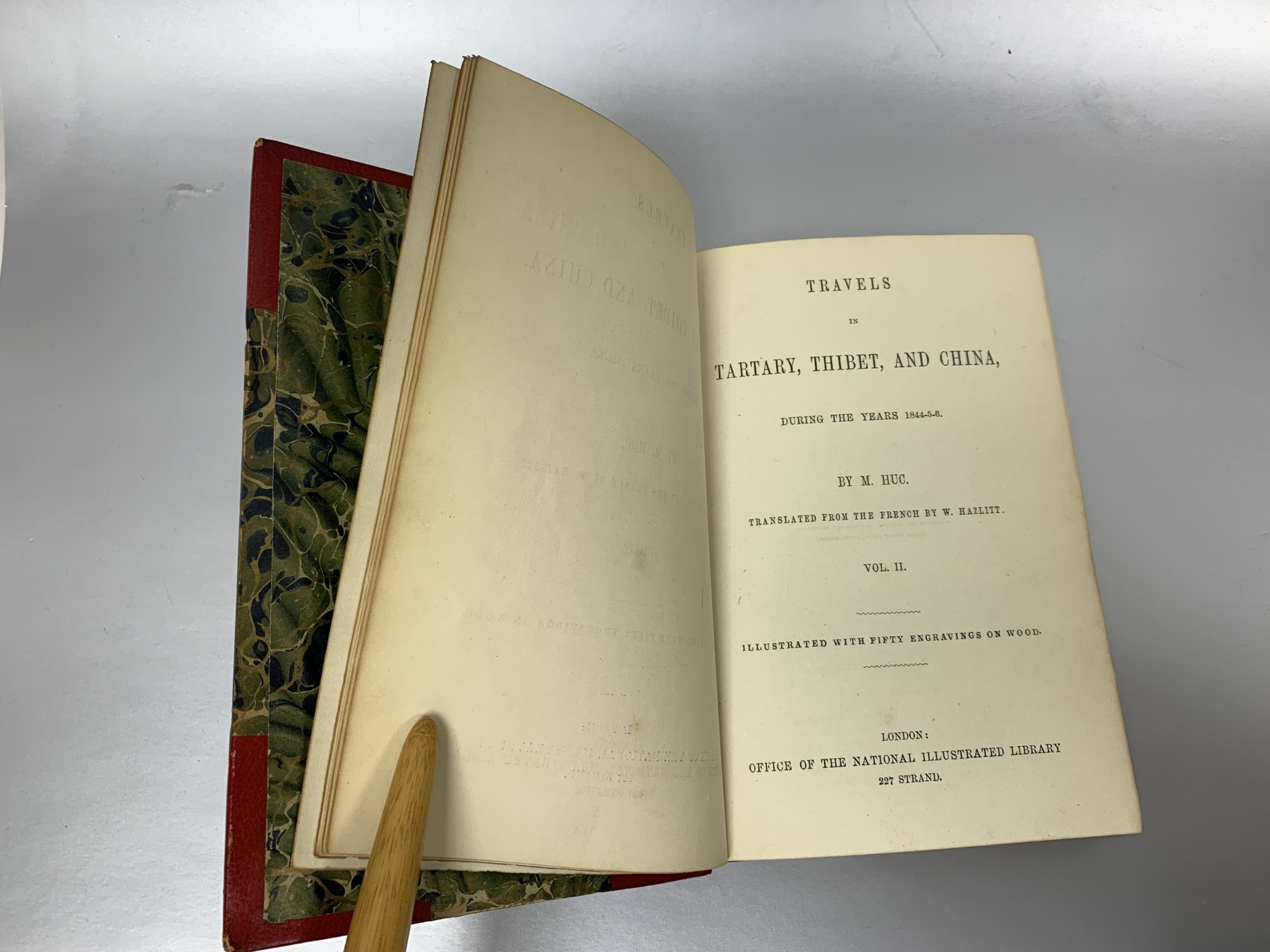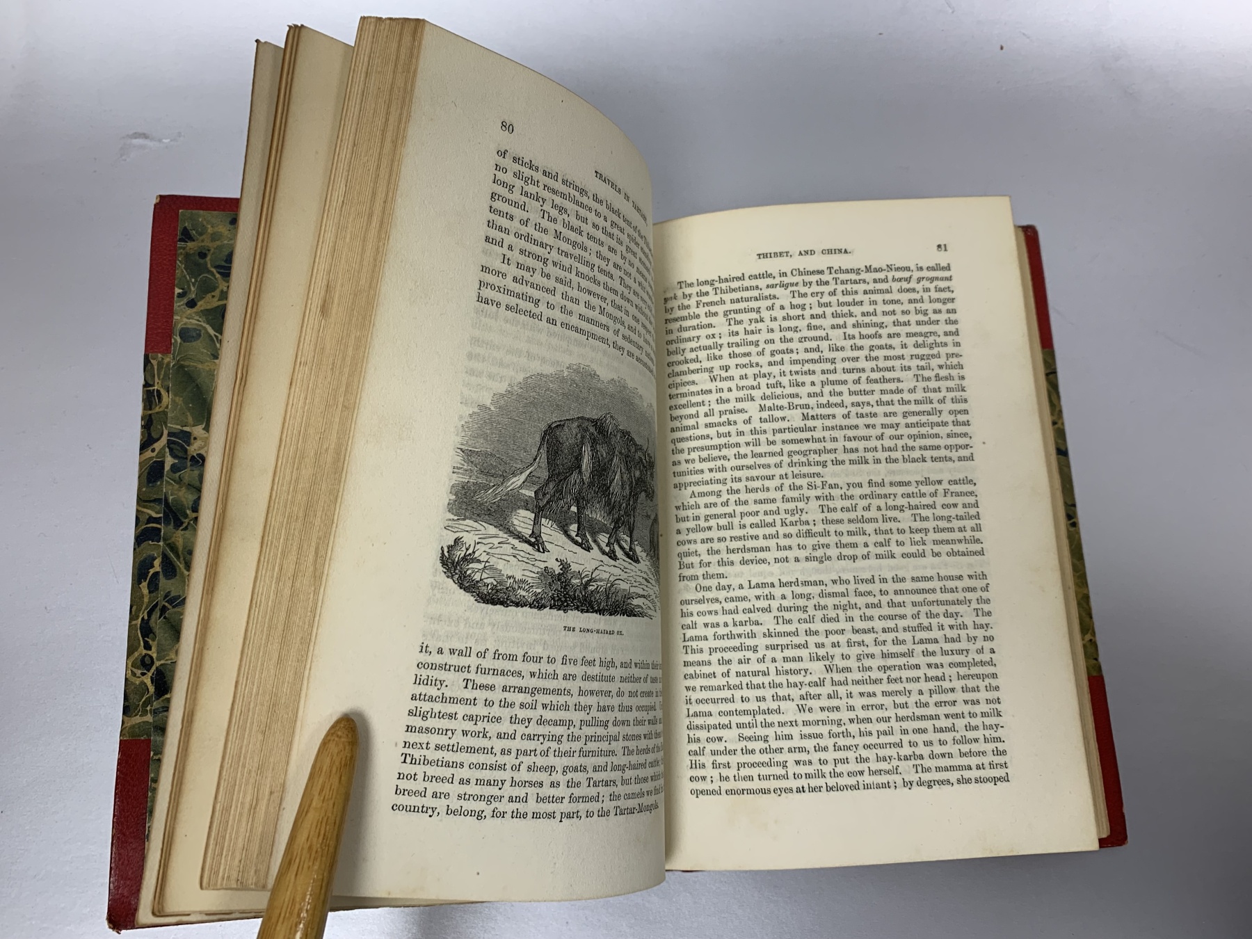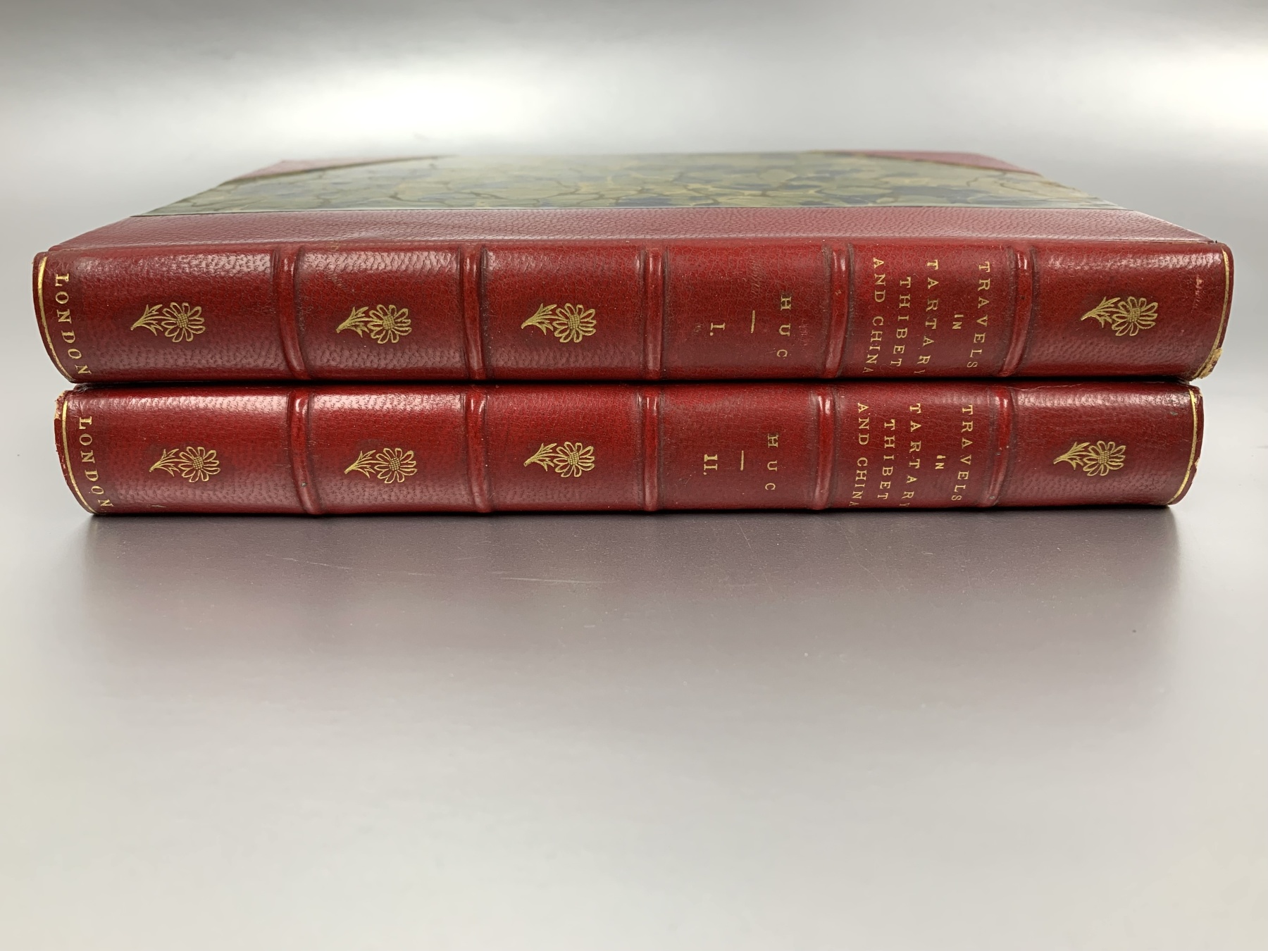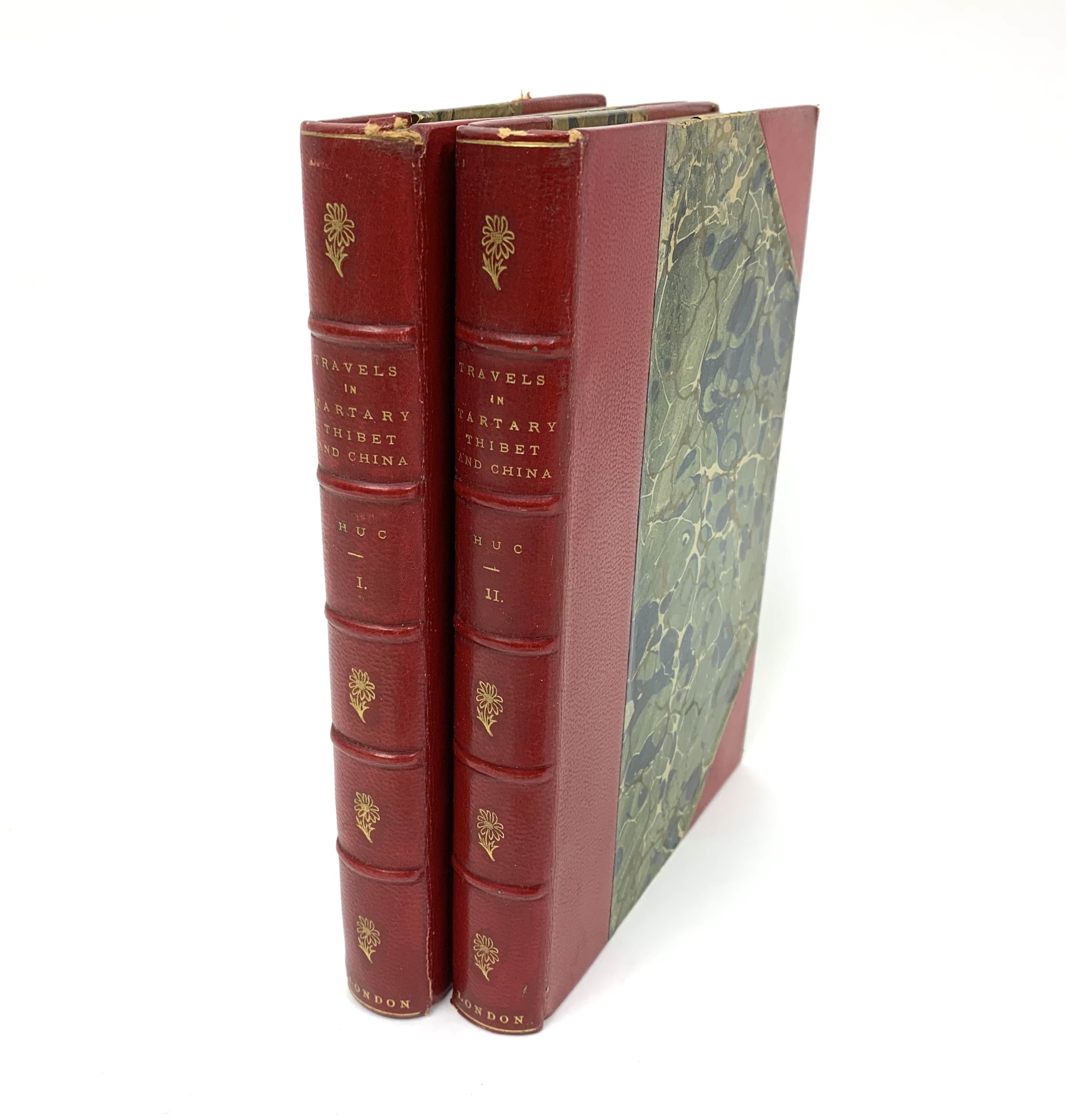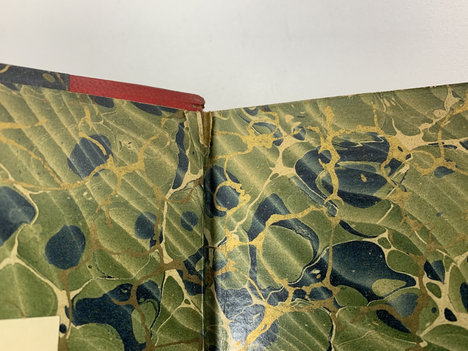 Two volumes with gilt decorated red leather, top edge gilt, marbleized boards with red leather corners, marbleized end-wraps. One book with a Sotheby's bookmark/auction sticker.