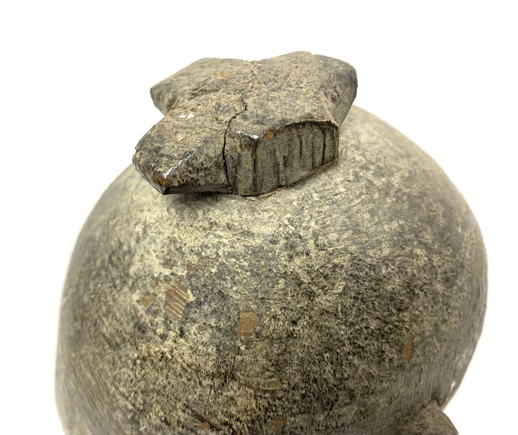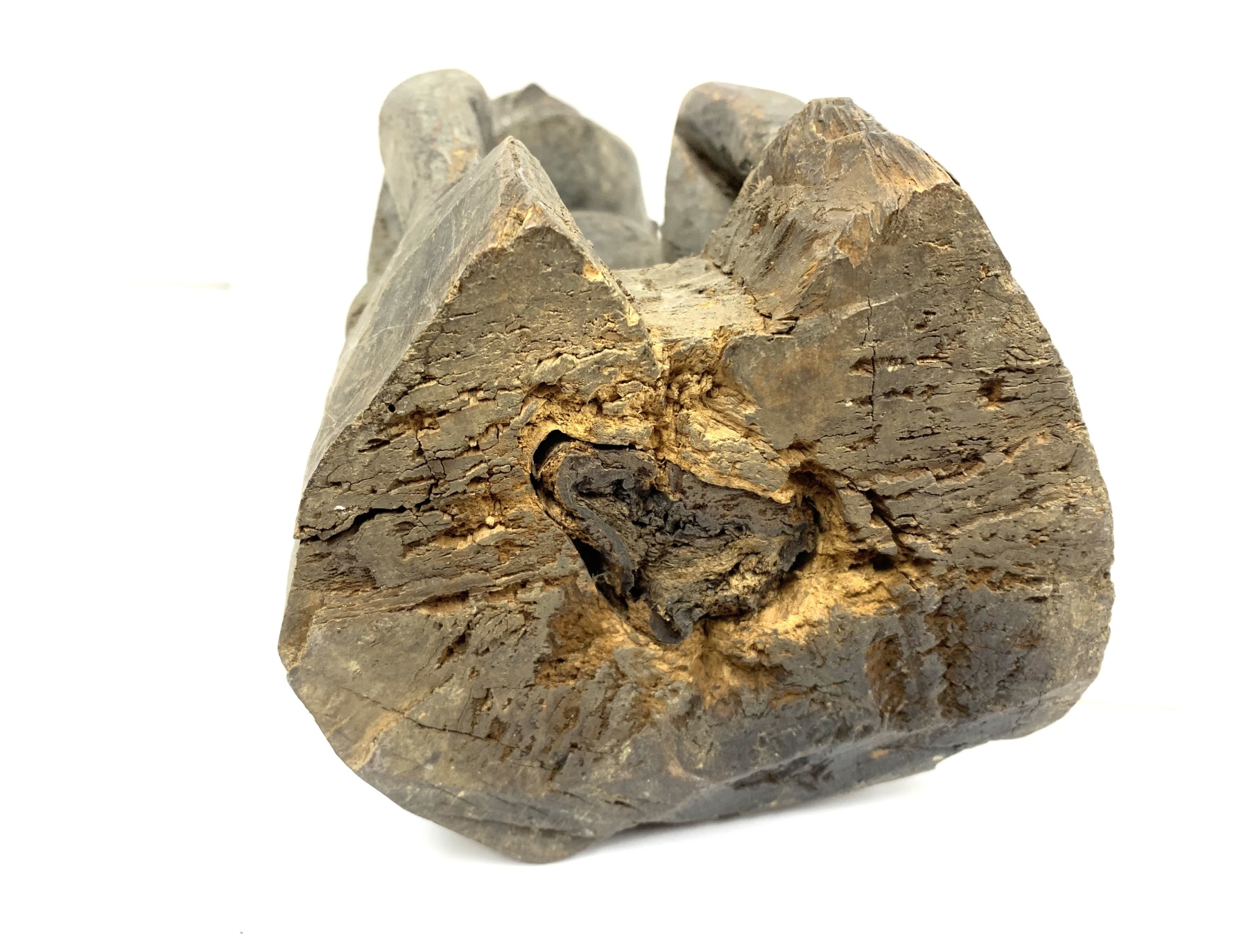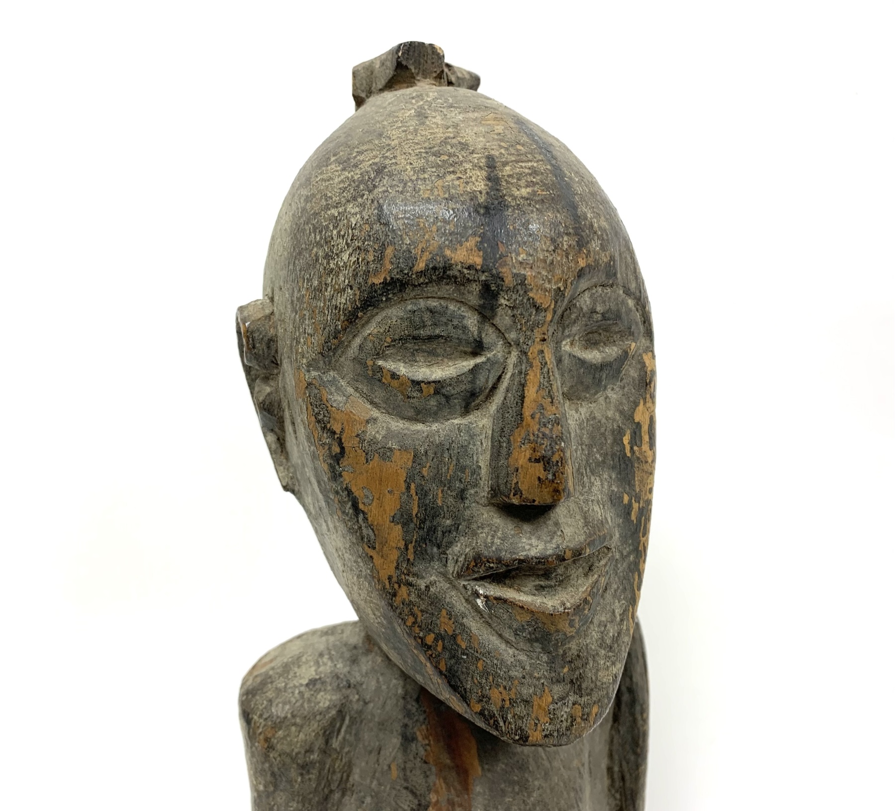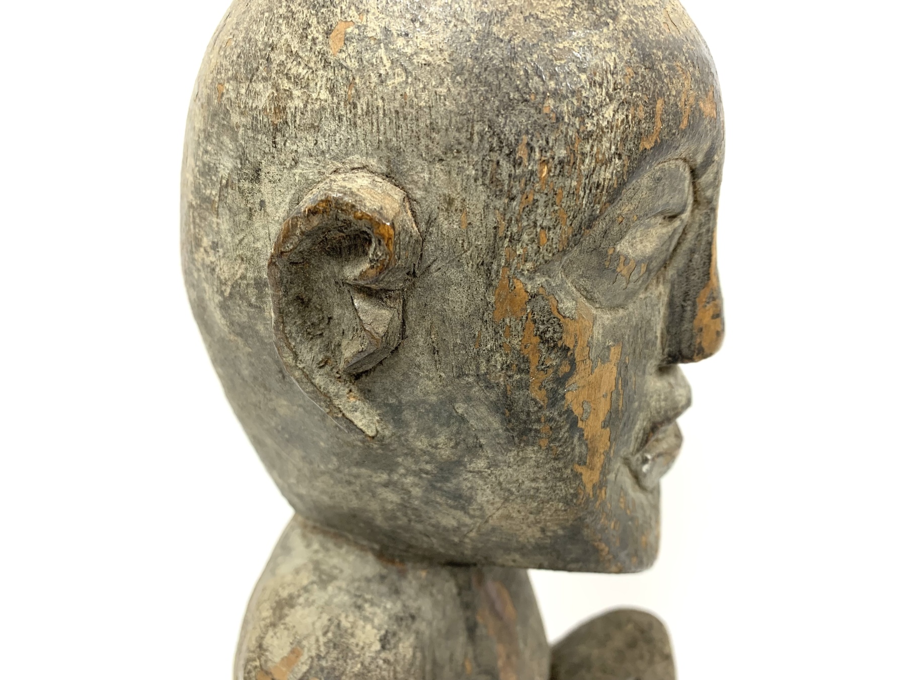 Condition: Please see detail photos. The Sculpture is in original timeworn condition with areas of paint or stain loss revealing the wood and there are some minor losses as well as expected wear and losses to the base being mentioned for accuracy as the presentation is strong and authentic.