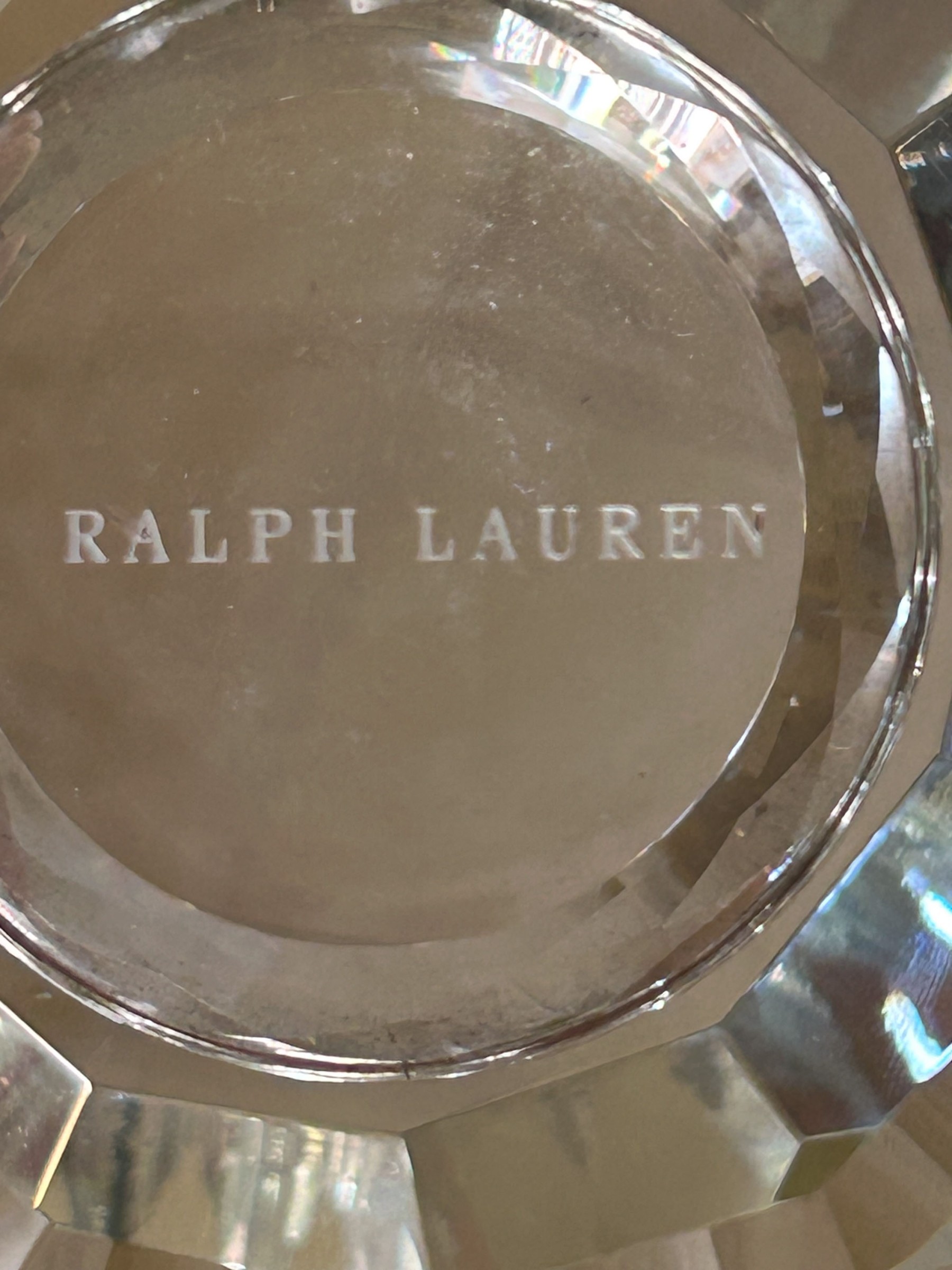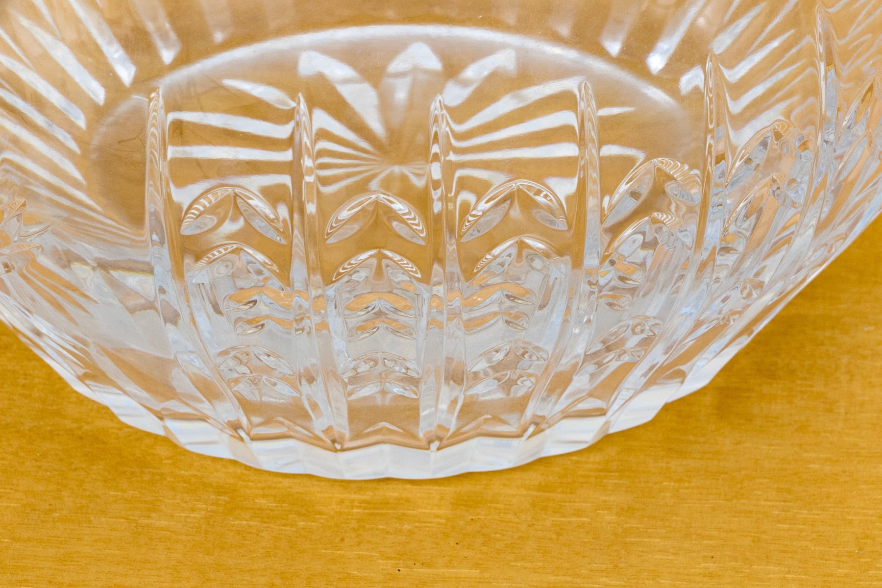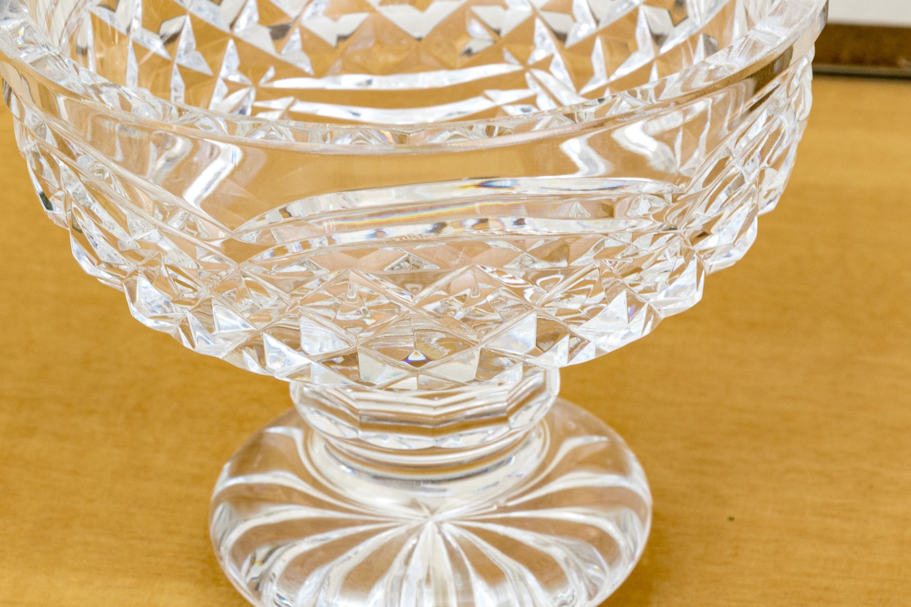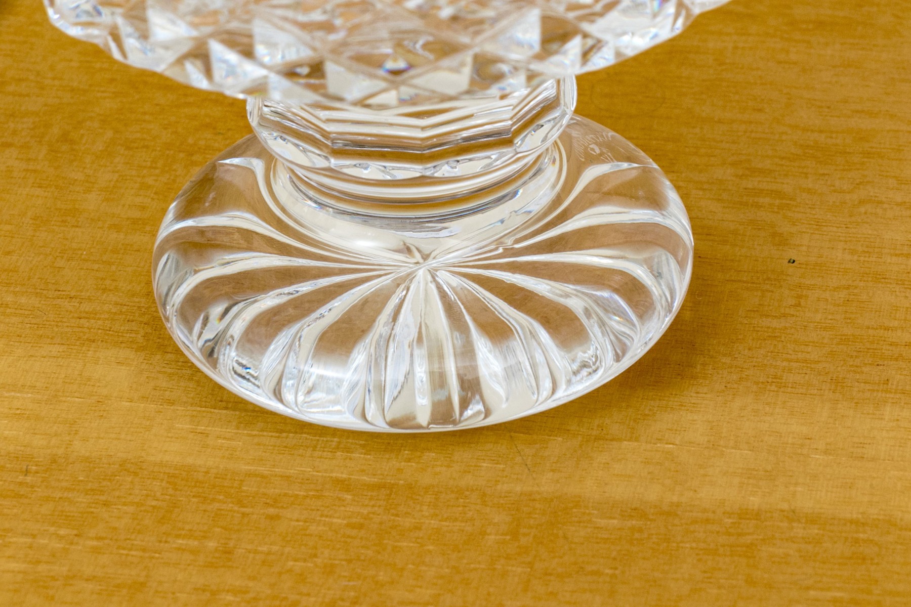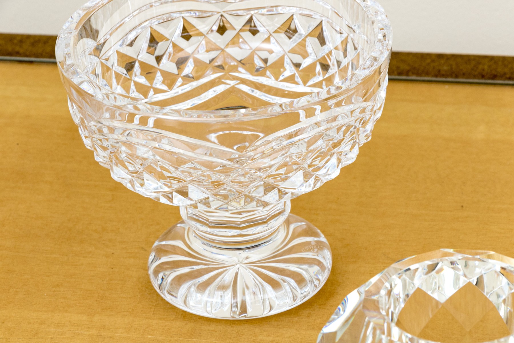 An excellent assortment of three crystal vessels. Comprised of a House of Igor Carl Faberge centerpiece bowl, a Waterford footed compote bowl, and a Ralph Lauren votive holder. All beautifully formed with decorative cut designs.