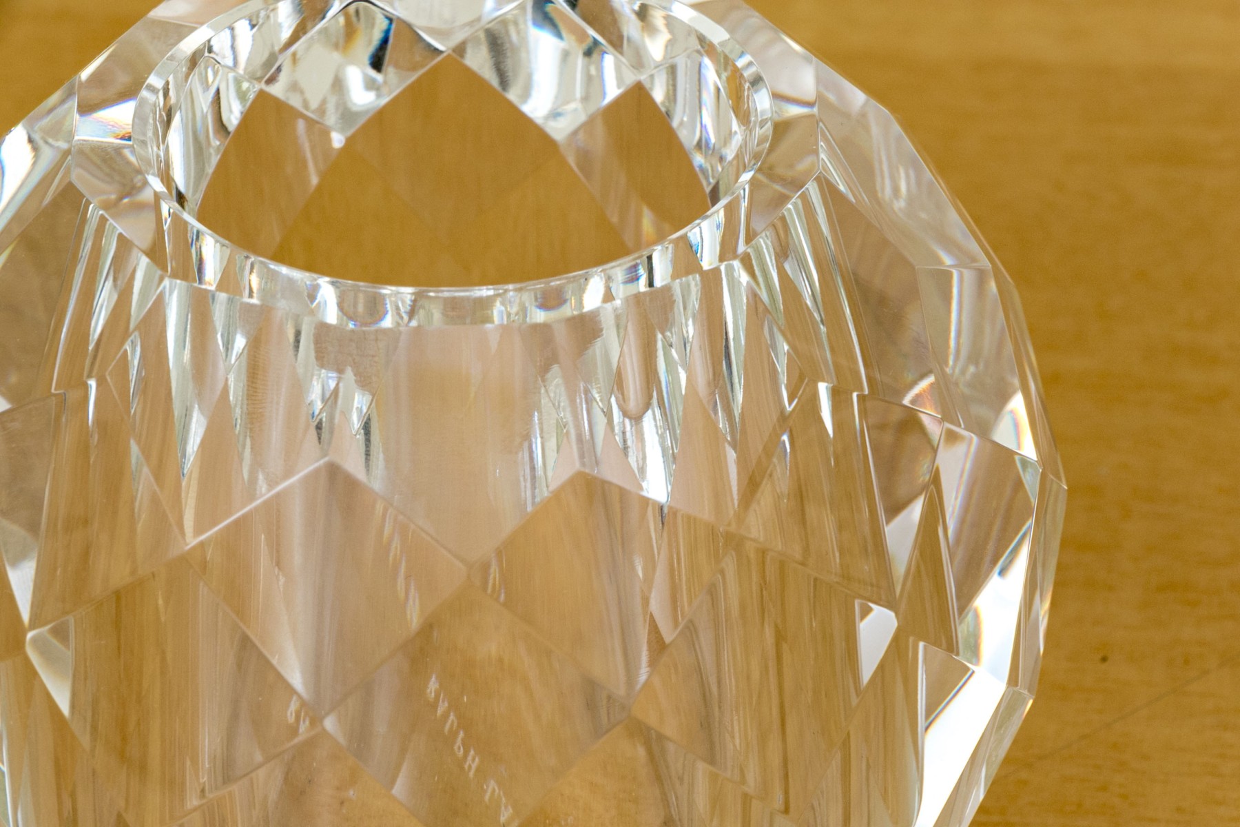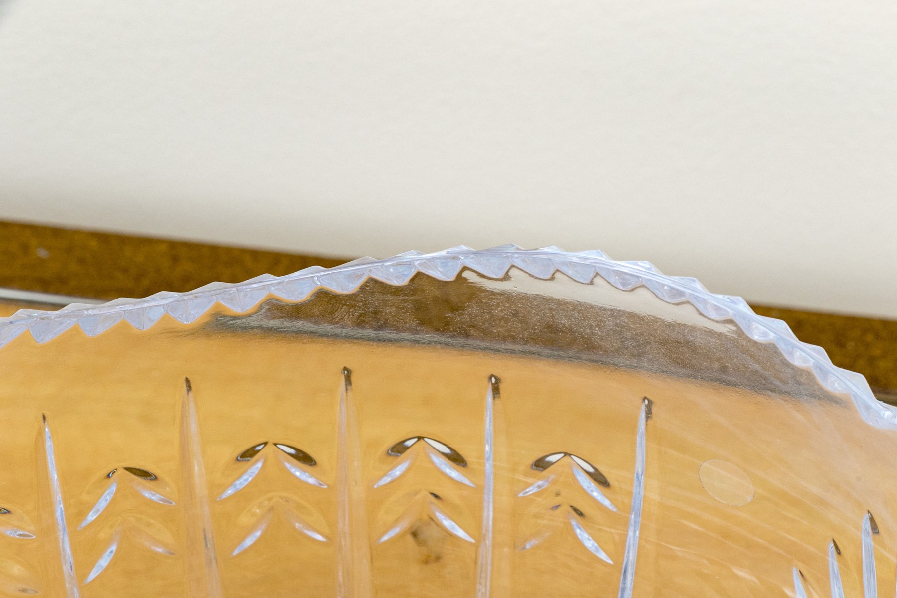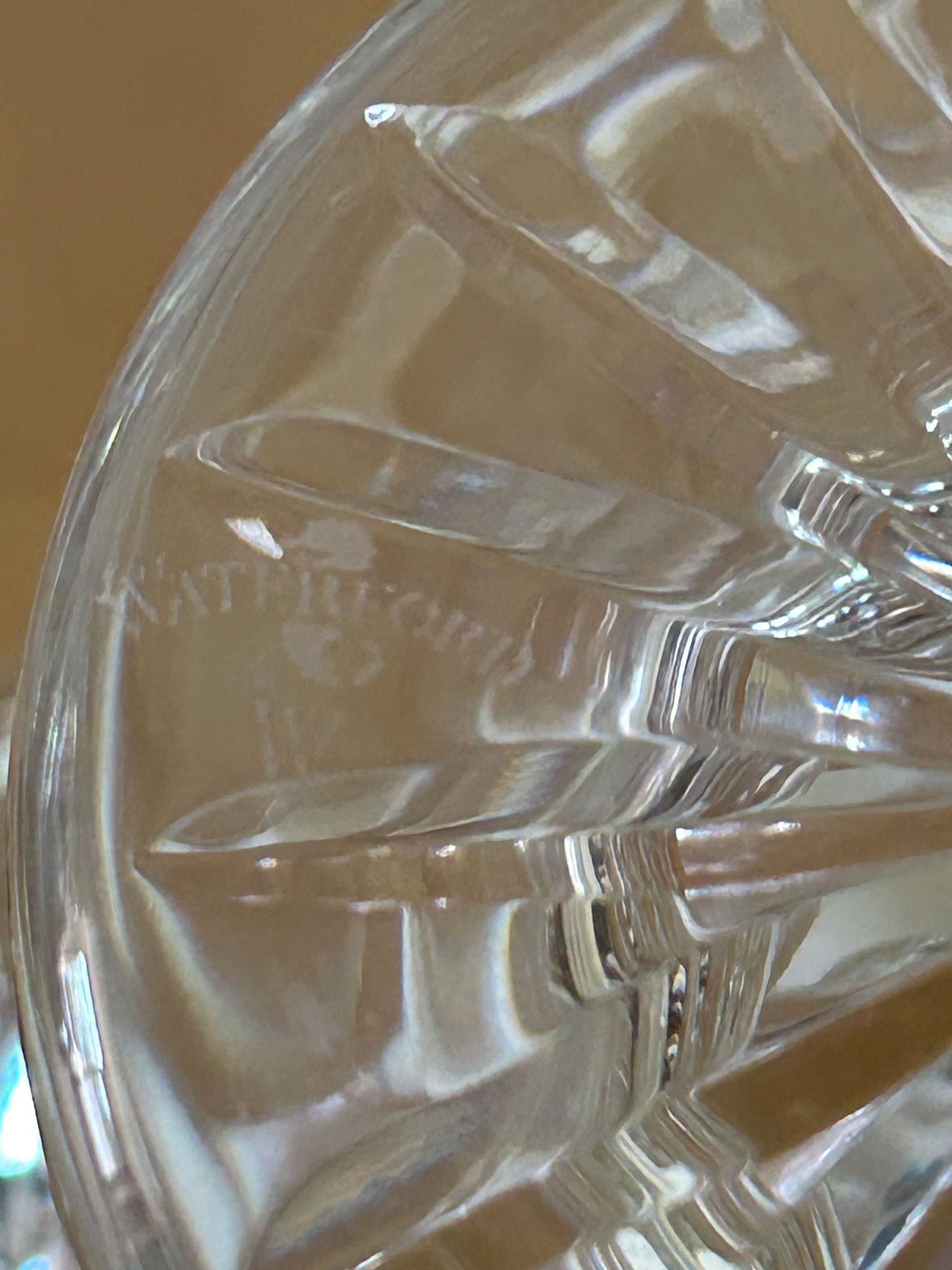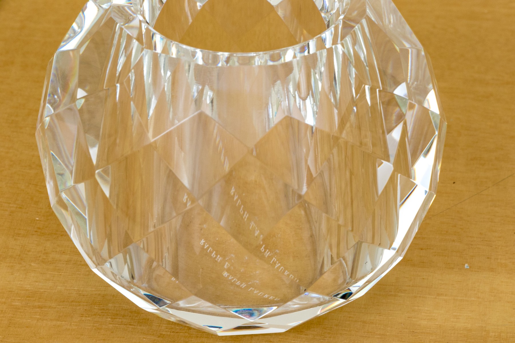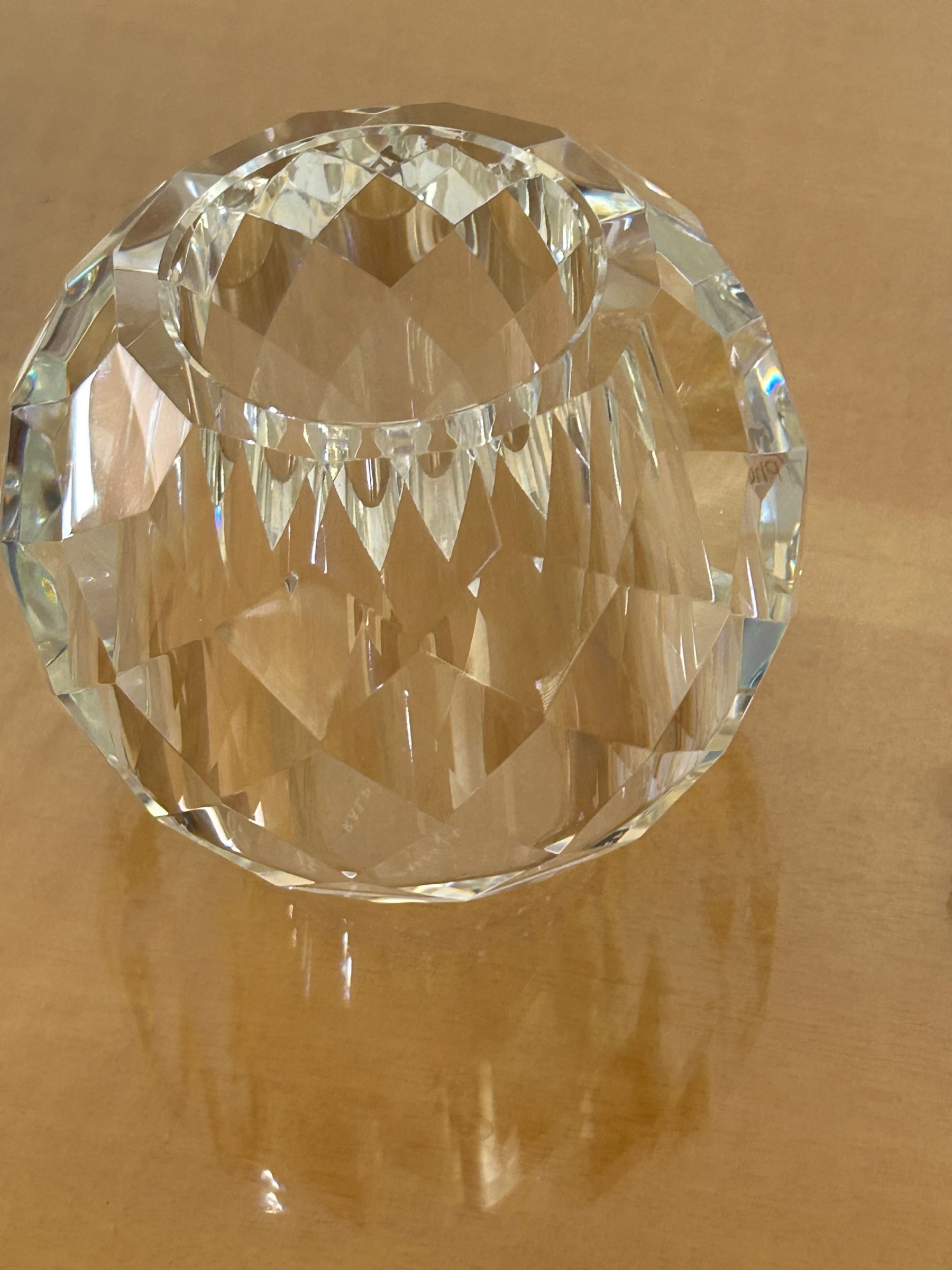 An excellent assortment of three crystal vessels. Comprised of a House of Igor Carl Faberge centerpiece bowl, a Waterford footed compote bowl, and a Ralph Lauren votive holder. All beautifully formed with decorative cut designs.