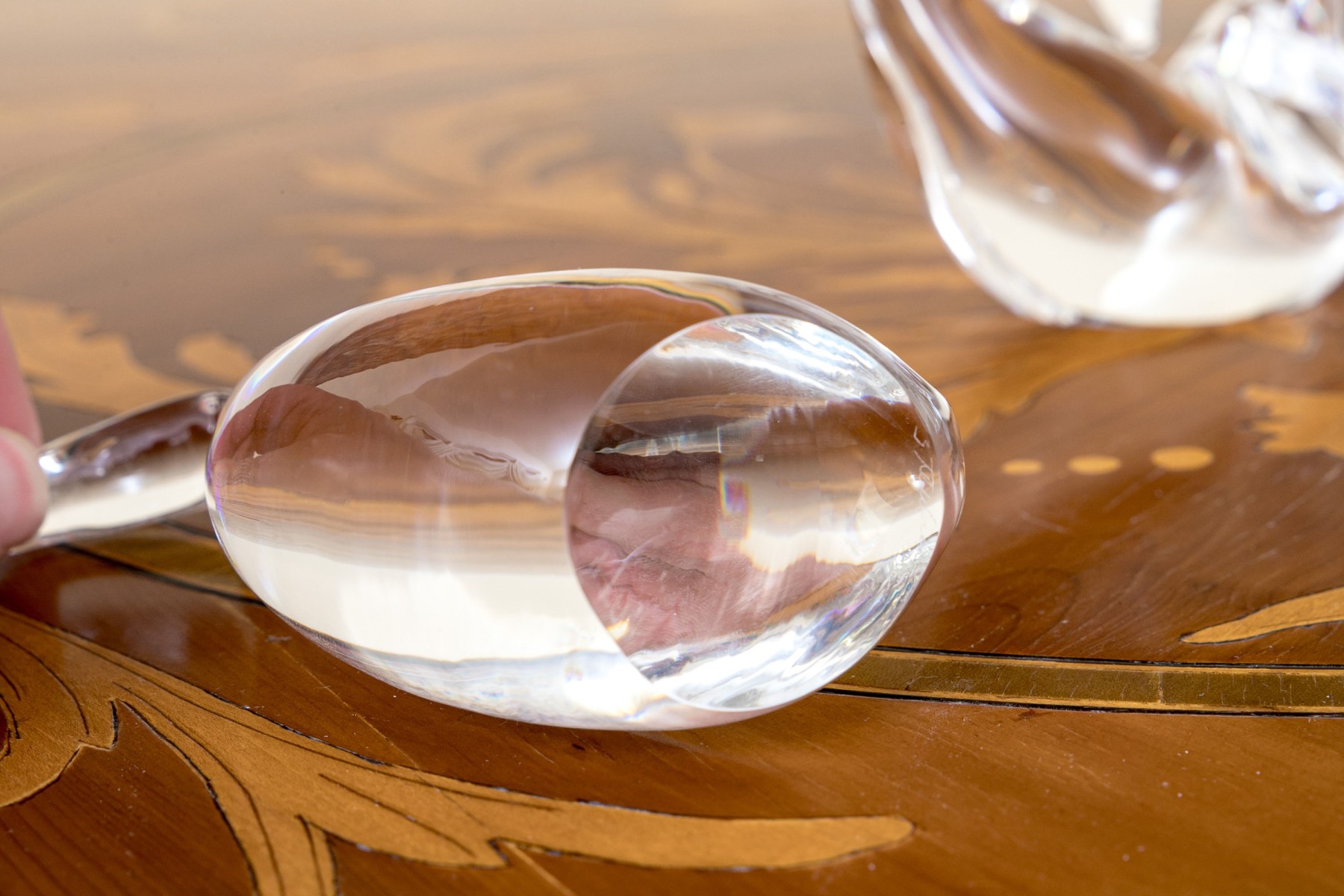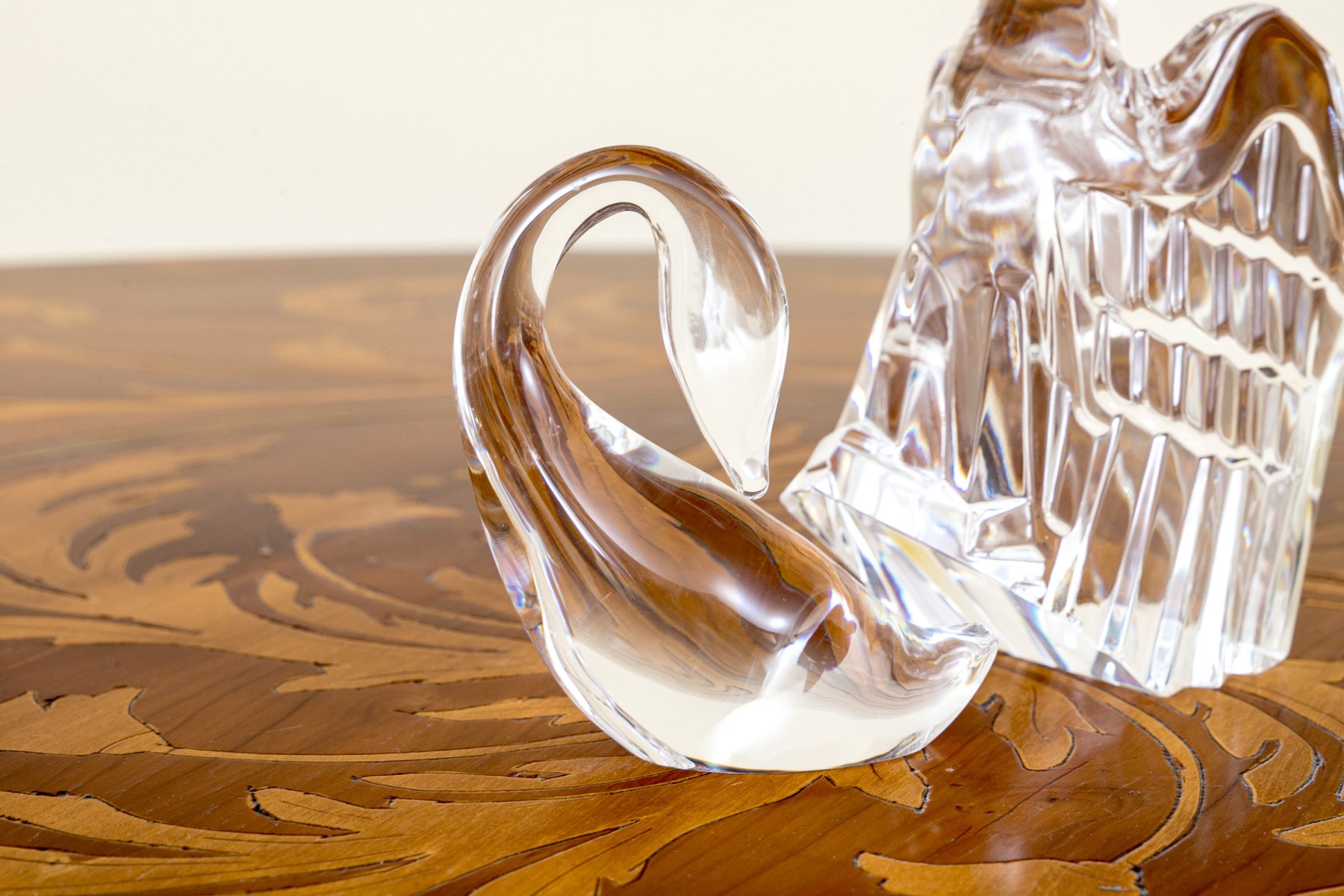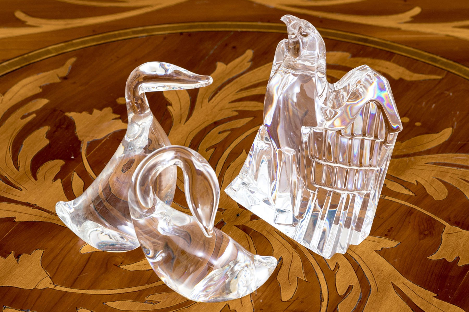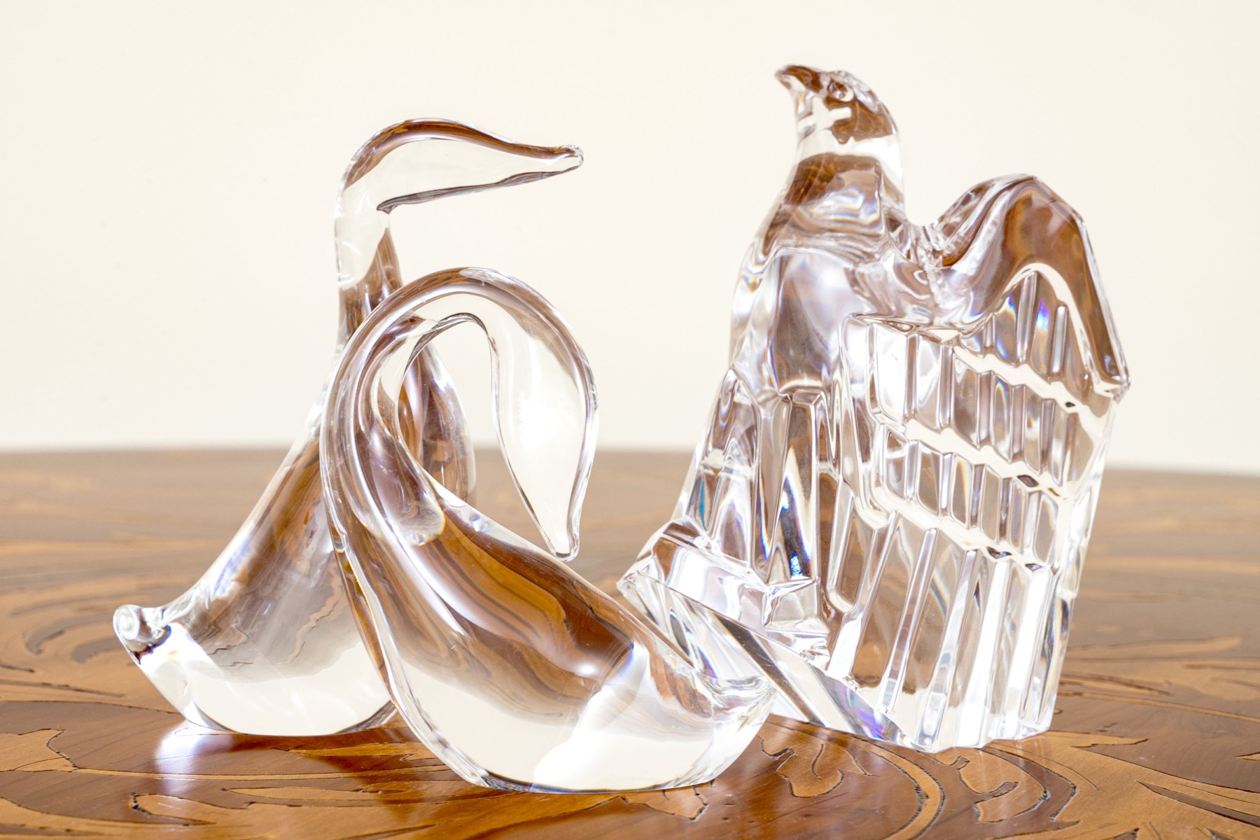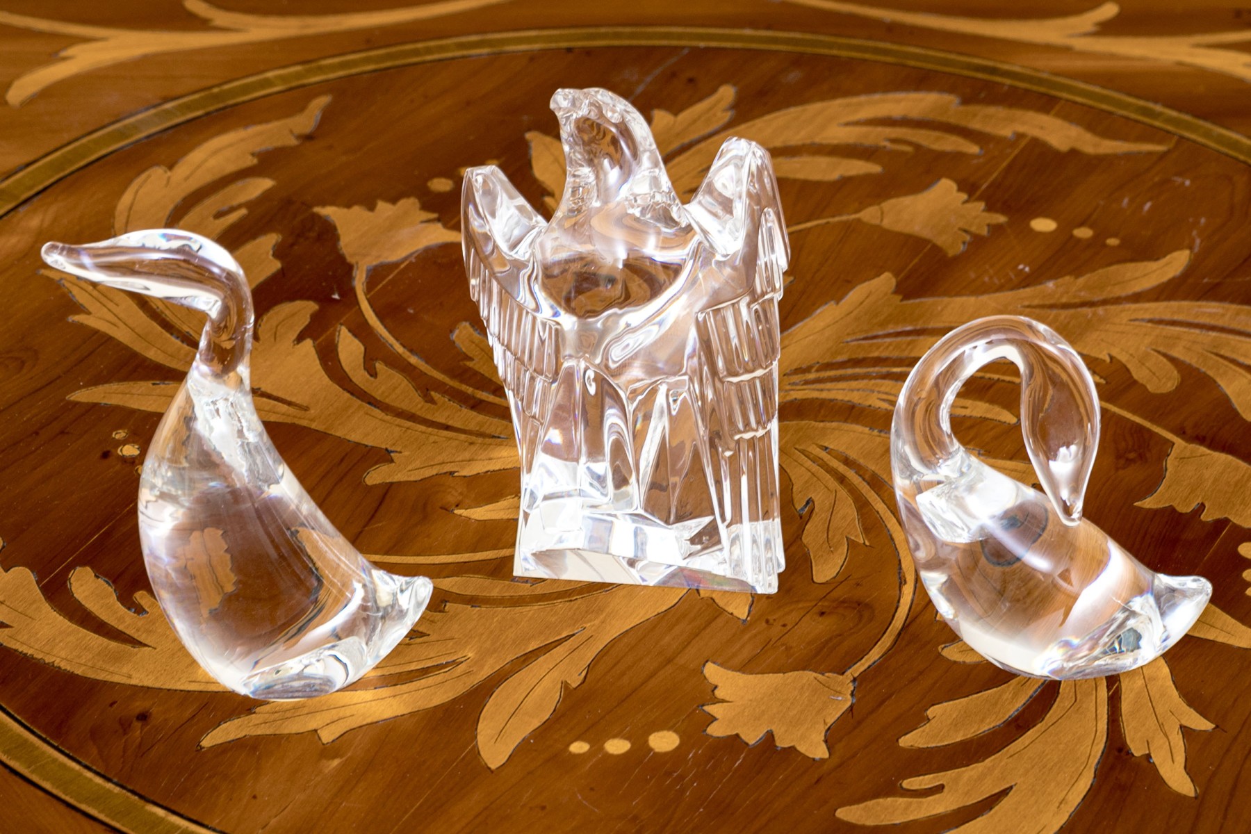 A lovely trio of Steuben crystal bird figurines including a duck, a swan, and an eagle.