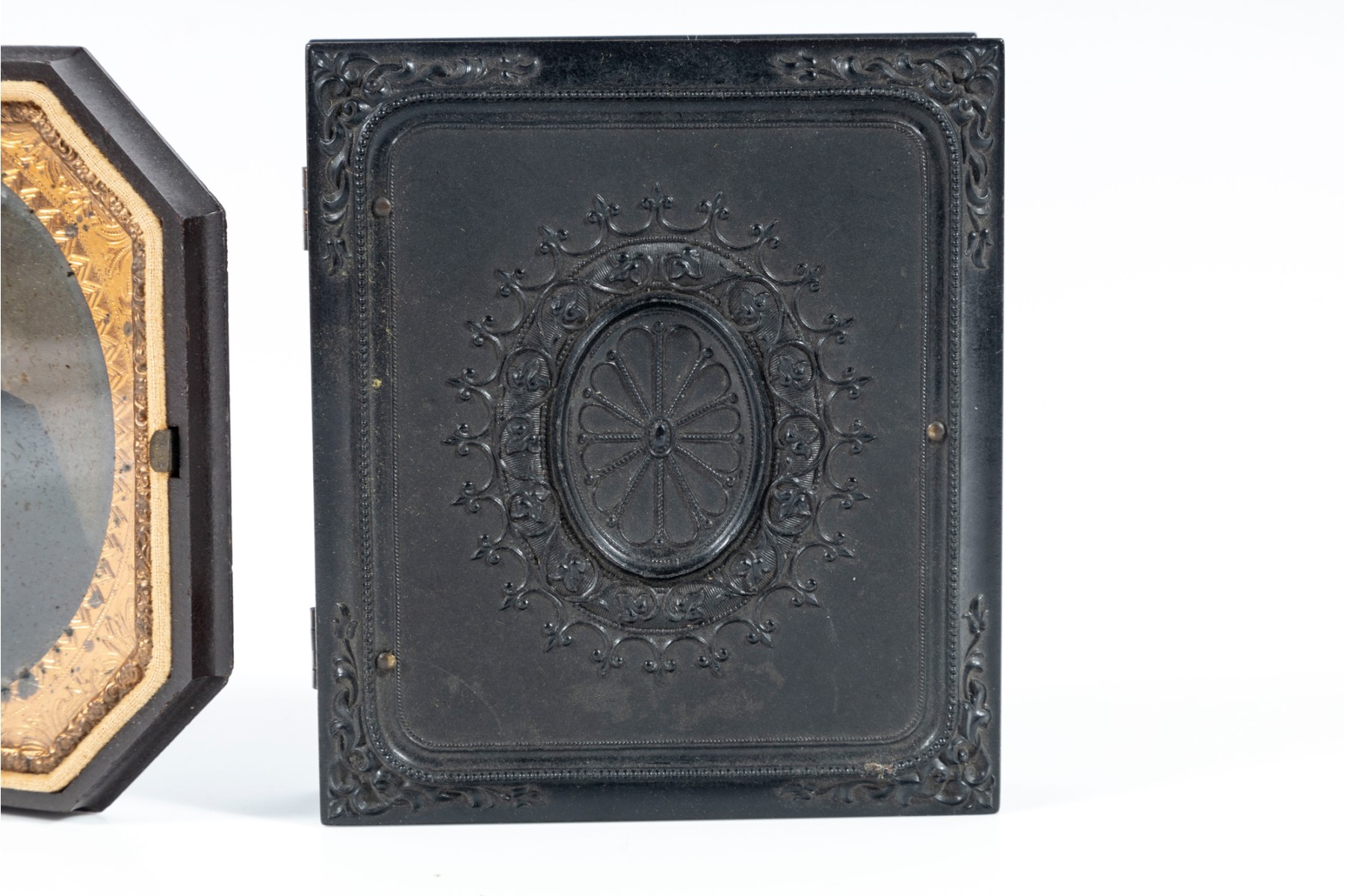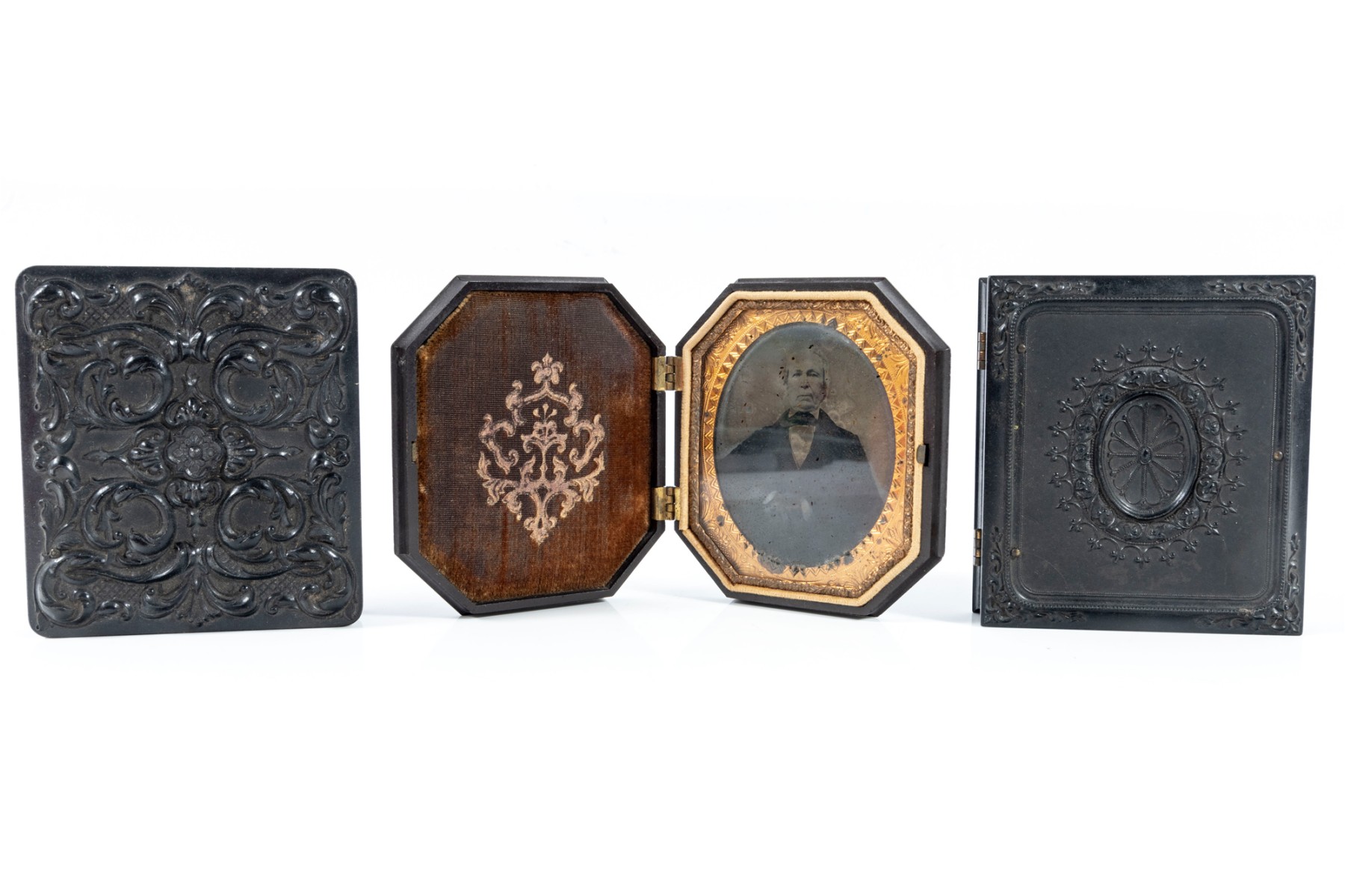 These three Victorian-era Tintype Photos are beautifully preserved in unique cases, each showcasing the charm and craftsmanship of the 19th century. Cases/Photos do not exceed 4x4".