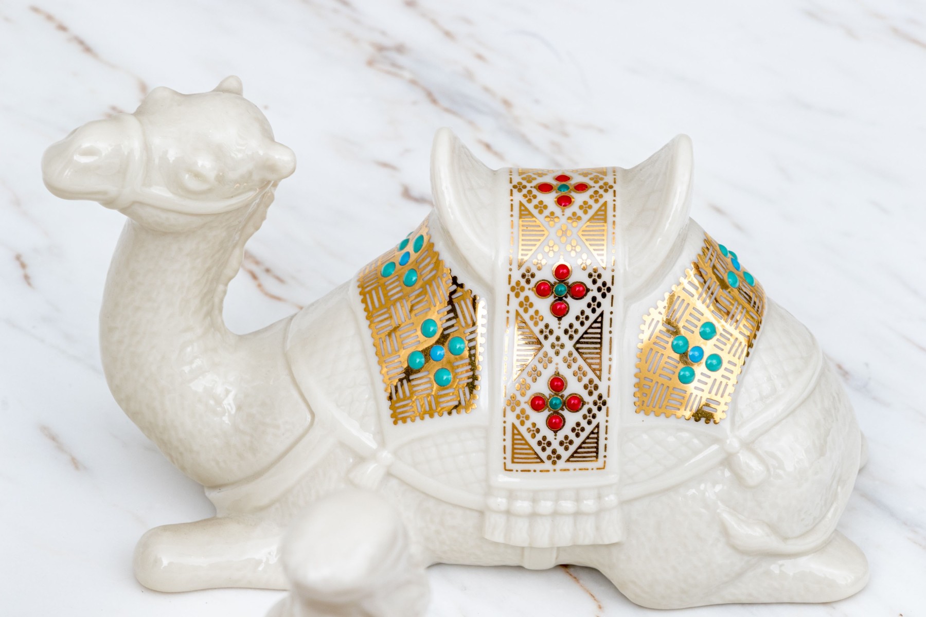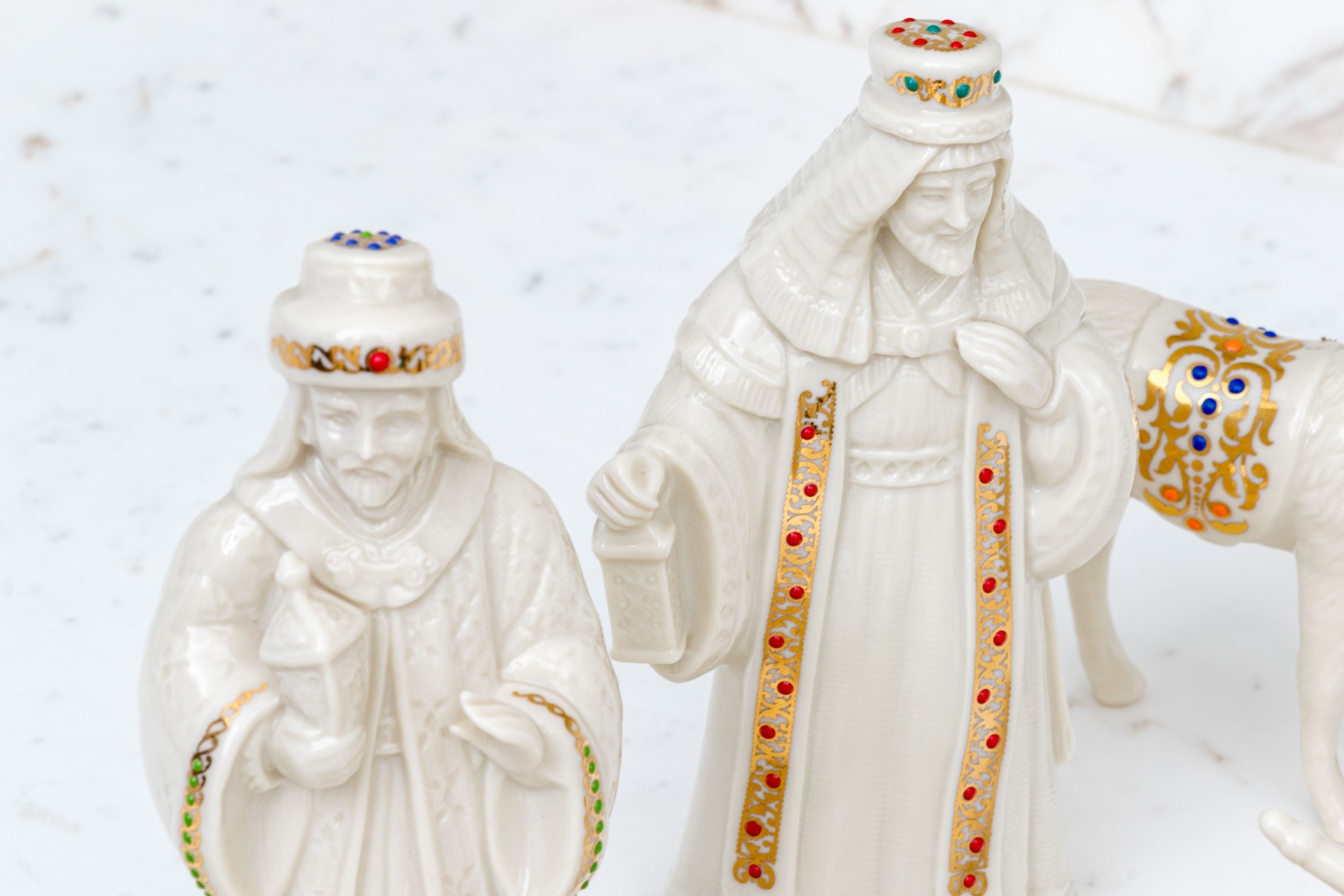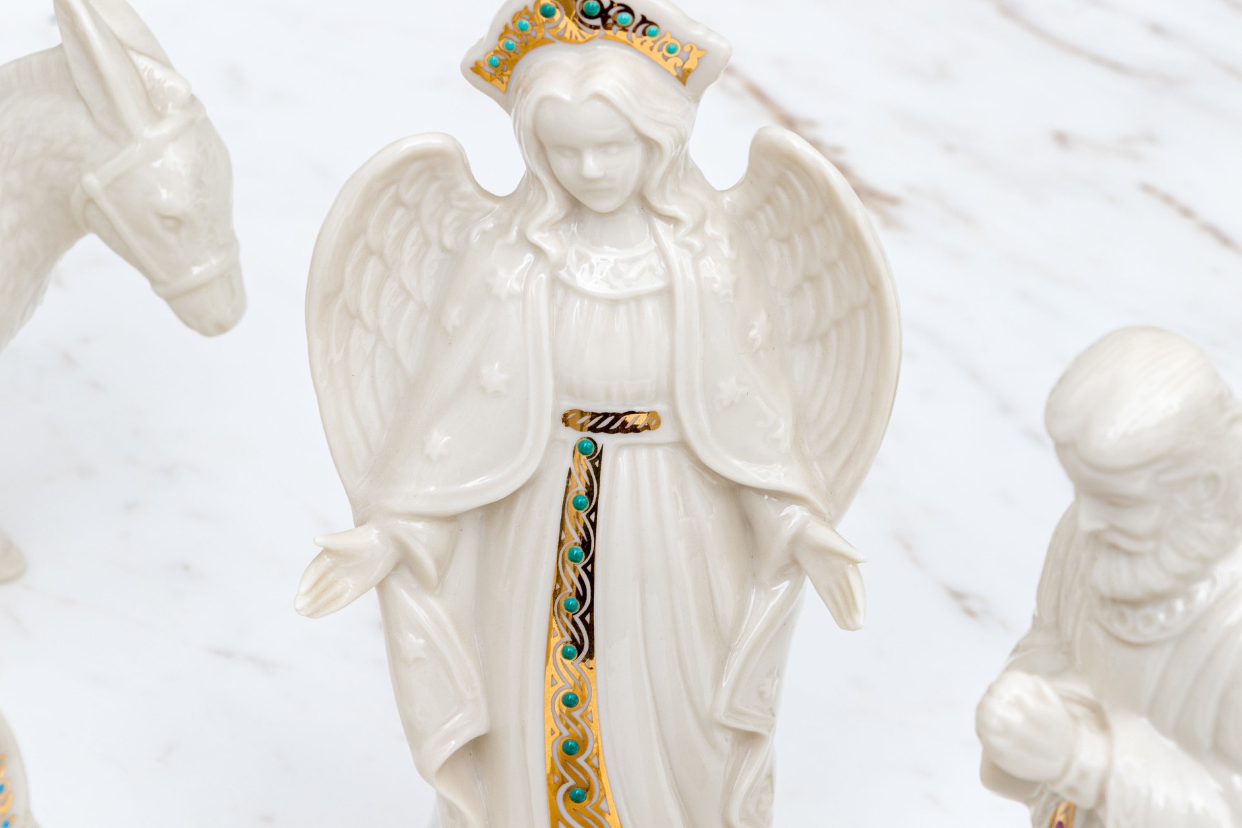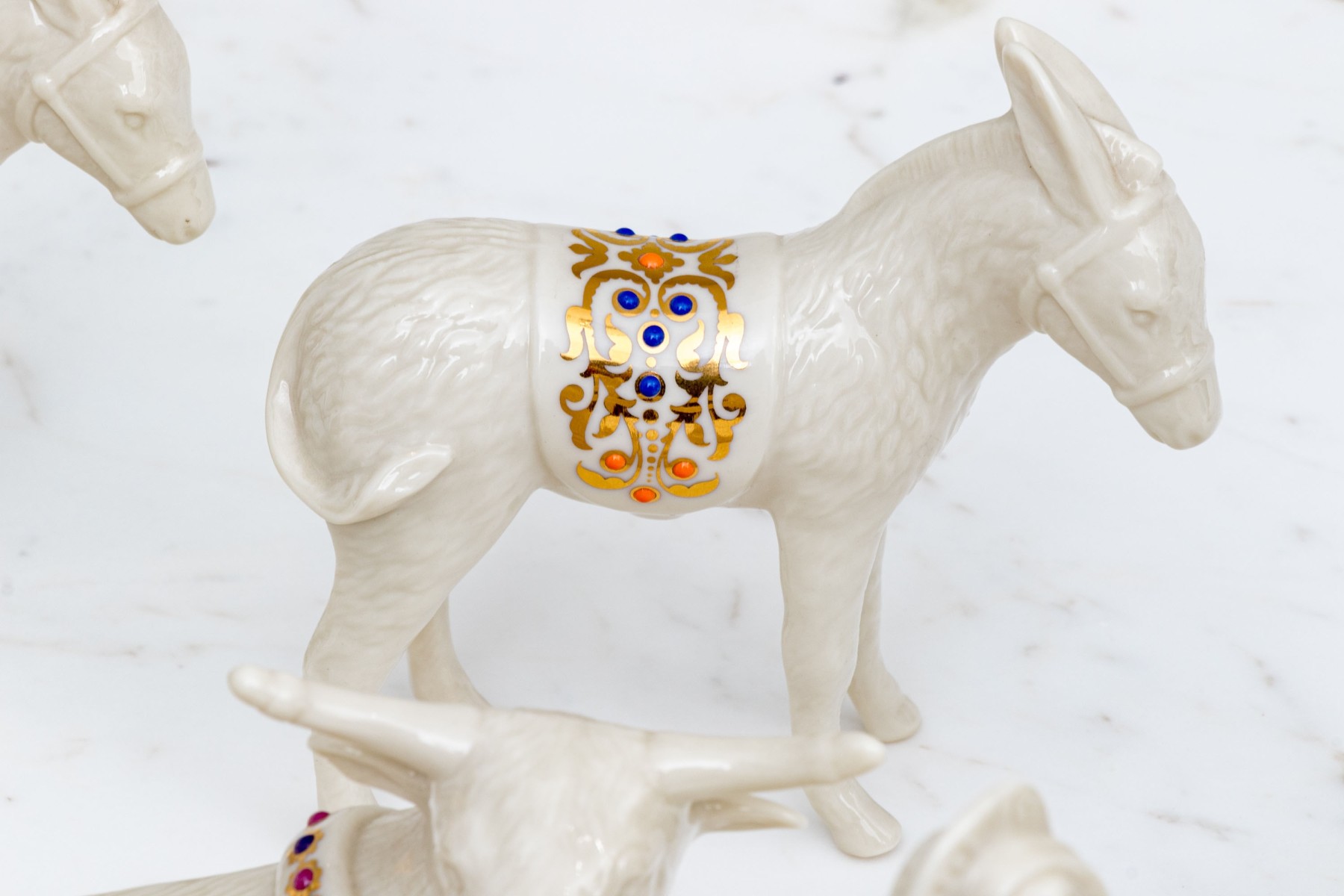 A wonderful Lenox nativity set comprised of twelve pieces including baby Jesus, Magi, reclining bull, camels and more.
