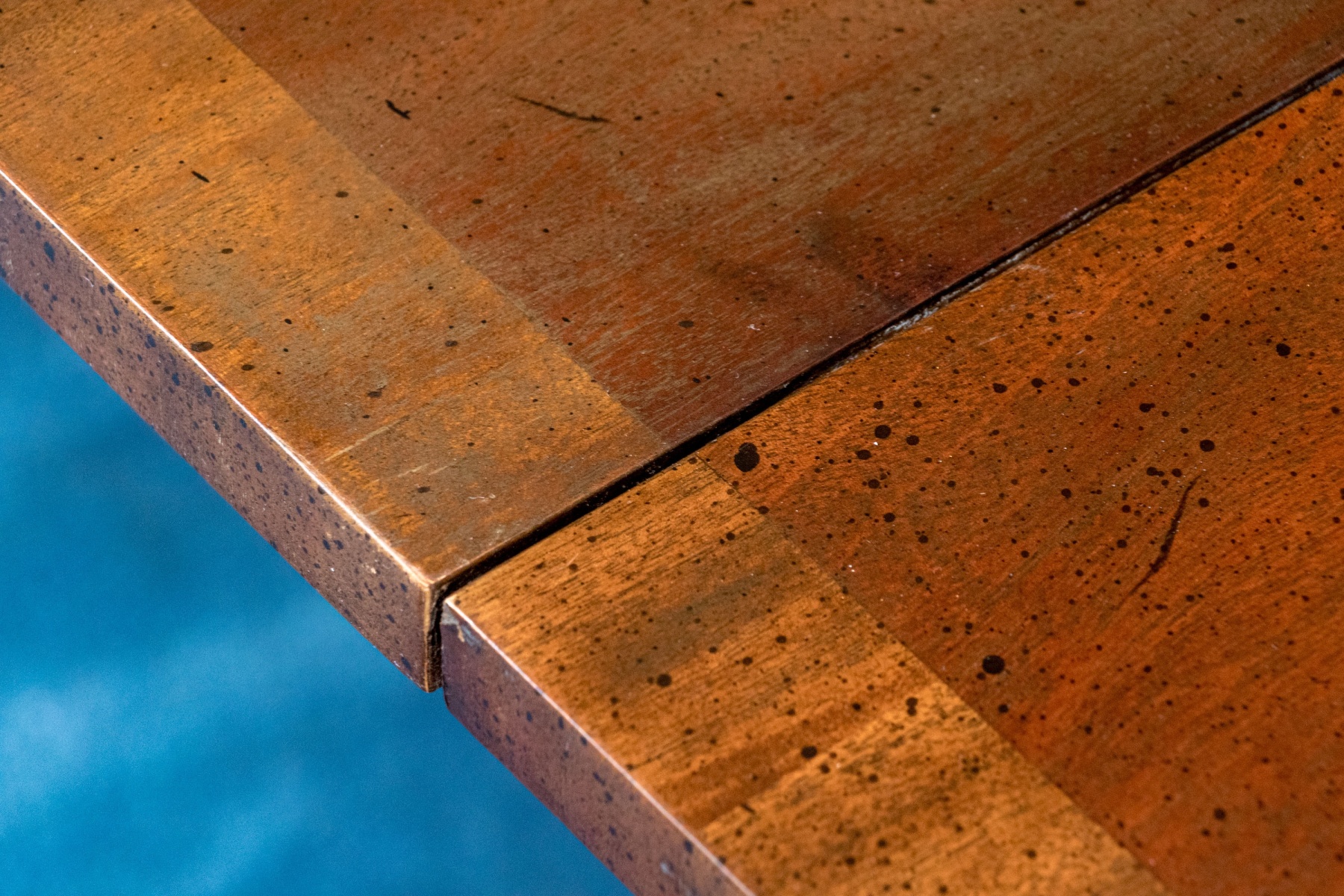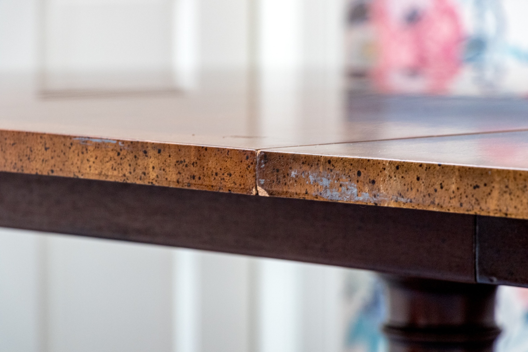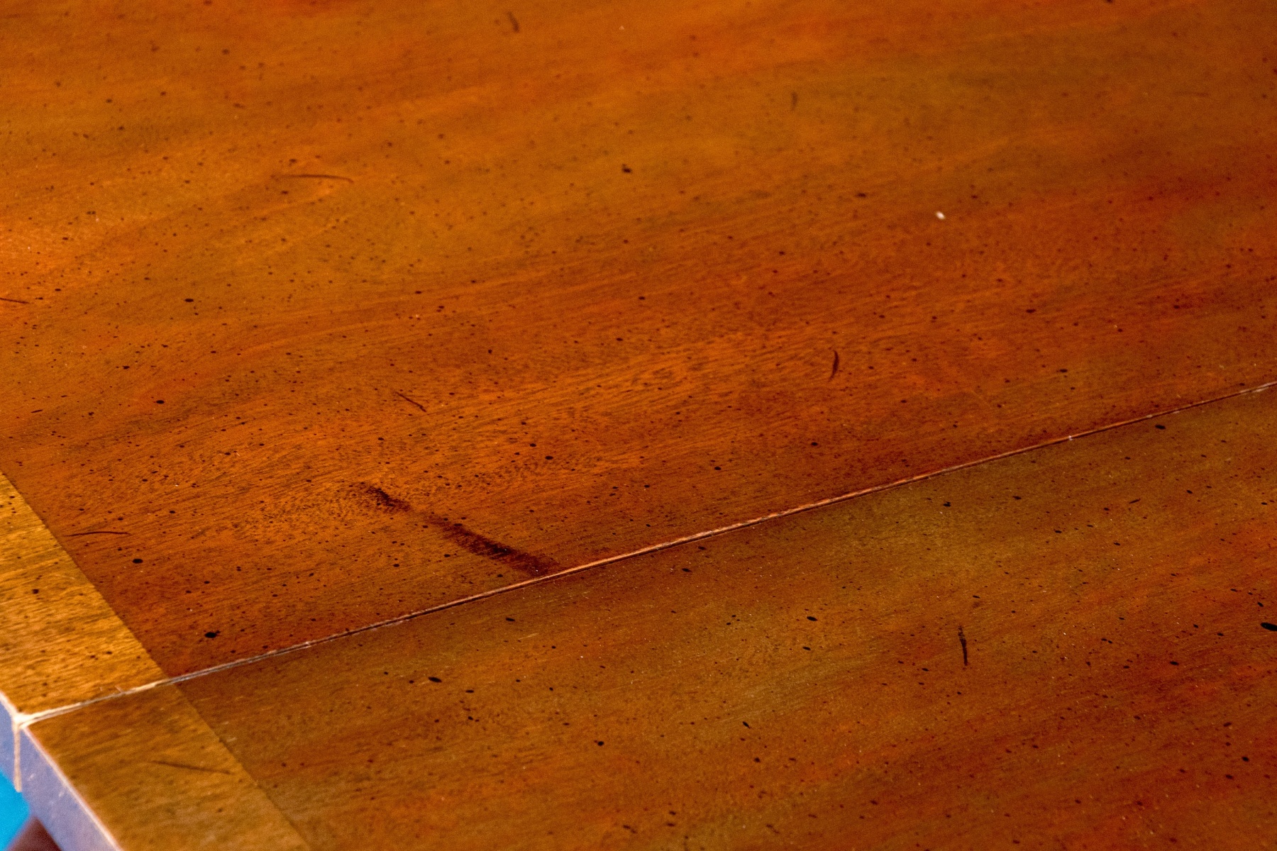 One of the extension leaves is slightly discolored. The table with very minor and gentle wear commensurate with some age and use.