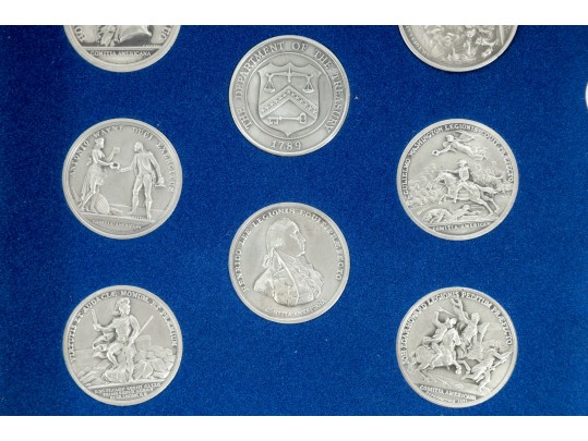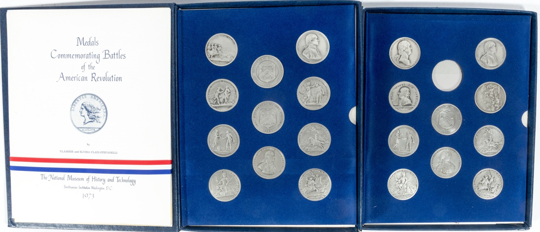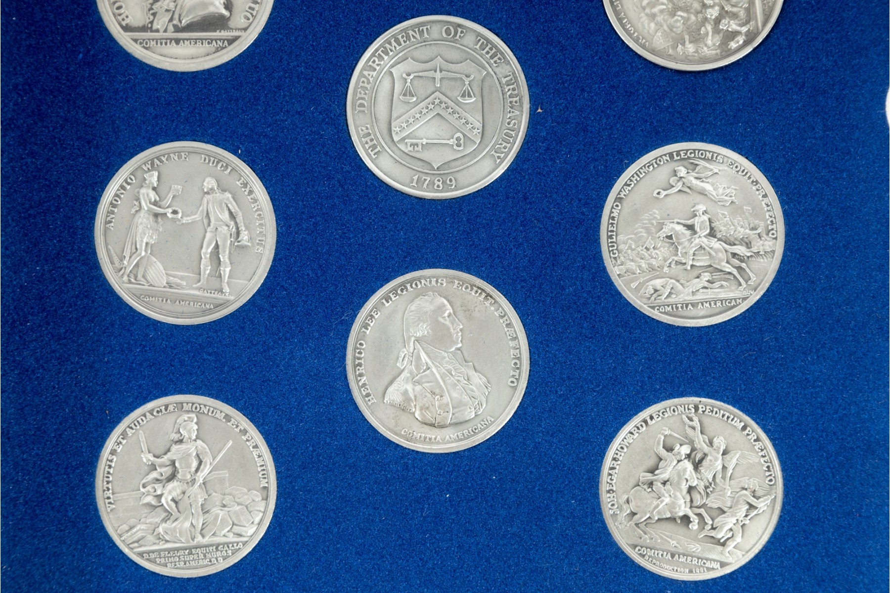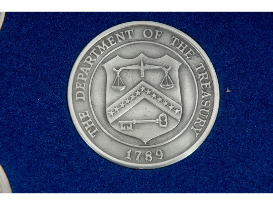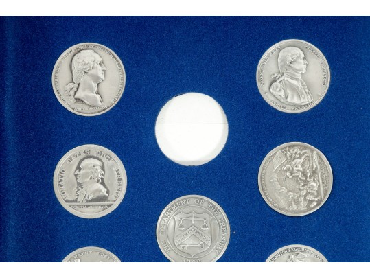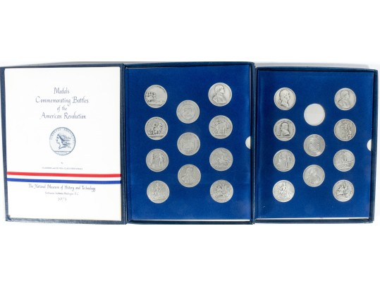 Two display albums for the America's First medals -- Pewter series, struck by the U.S. Mint and contained in the original Bureau of The Mint albums.