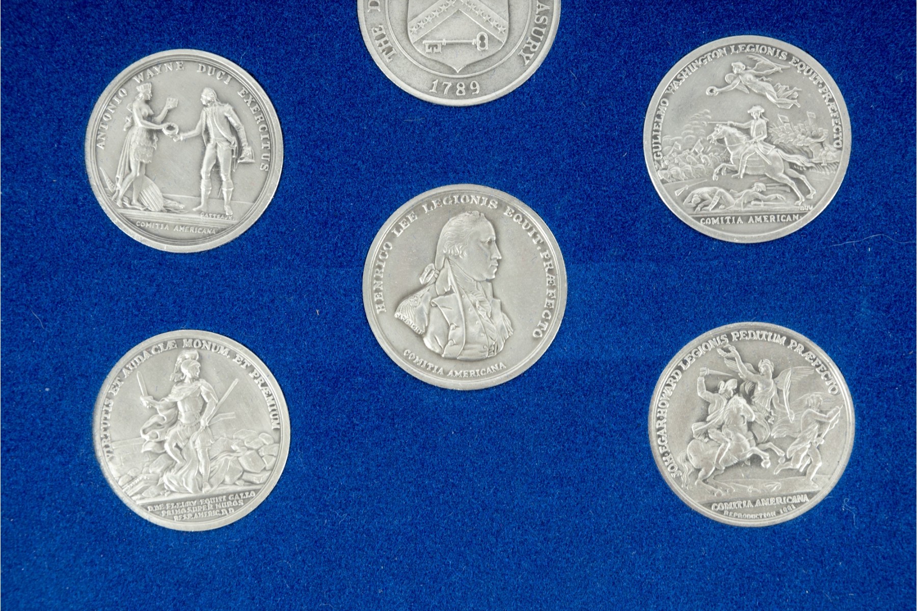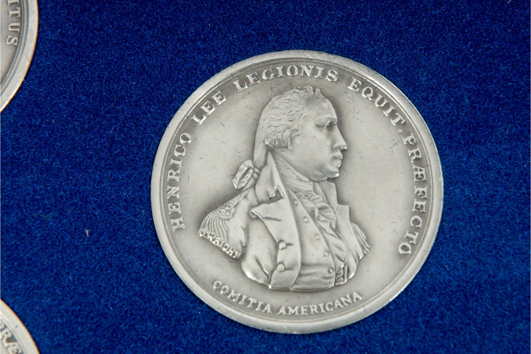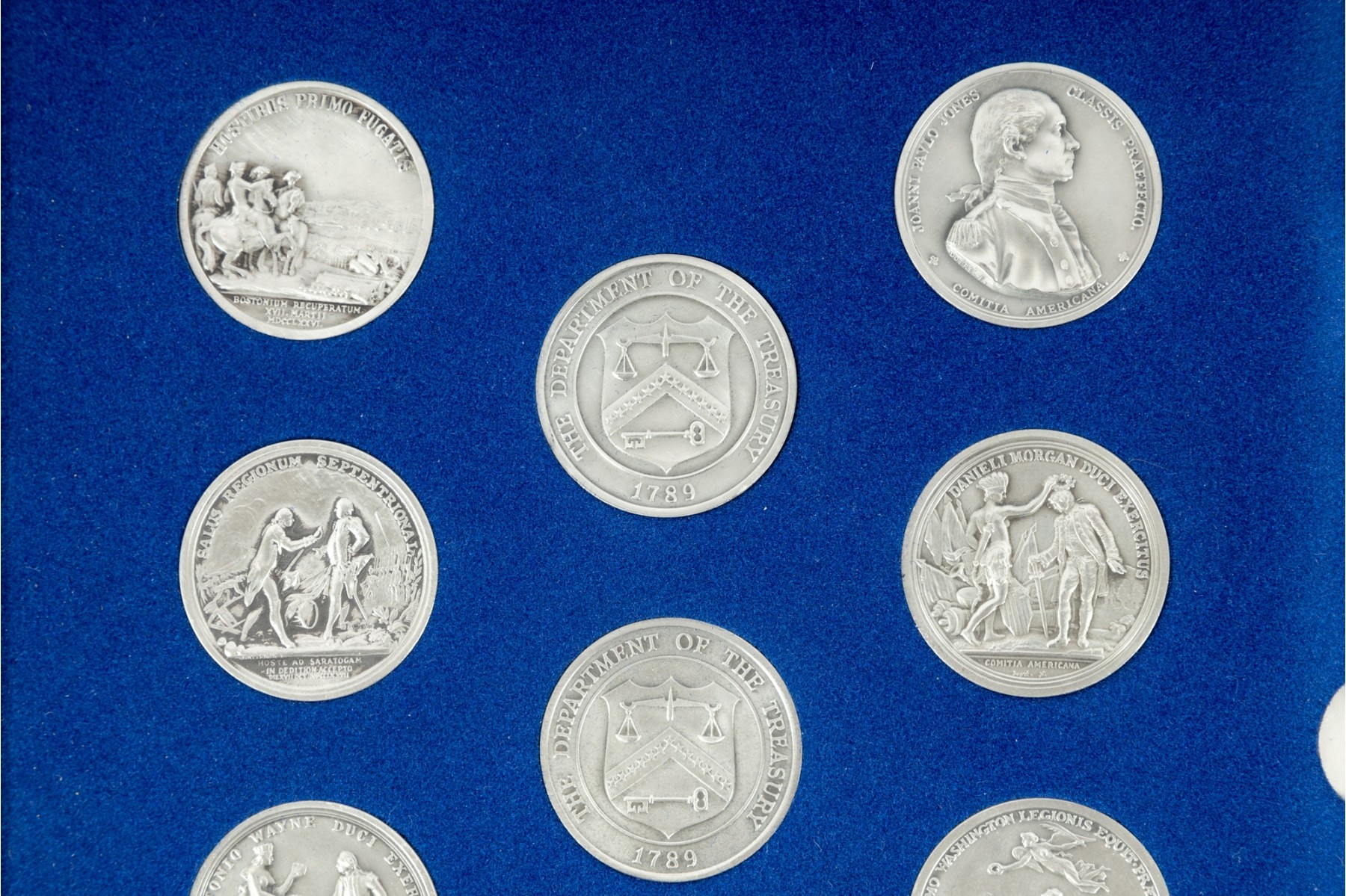 Two display albums for the America's First medals -- Pewter series, struck by the U.S. Mint and contained in the original Bureau of The Mint albums.
