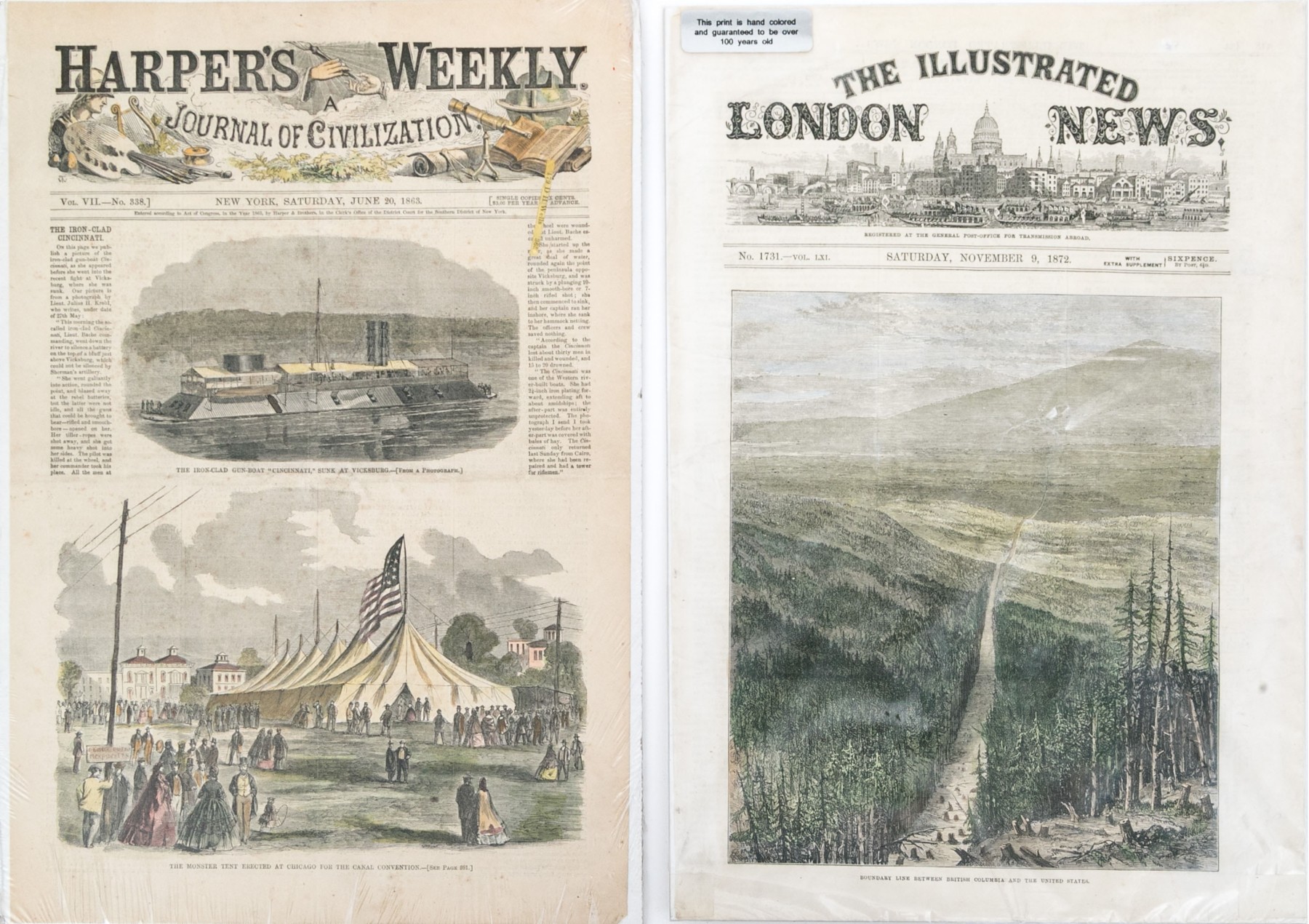And The Illustrated London News, November 9, 1872 featuring the boundary between British Columbia and the US.