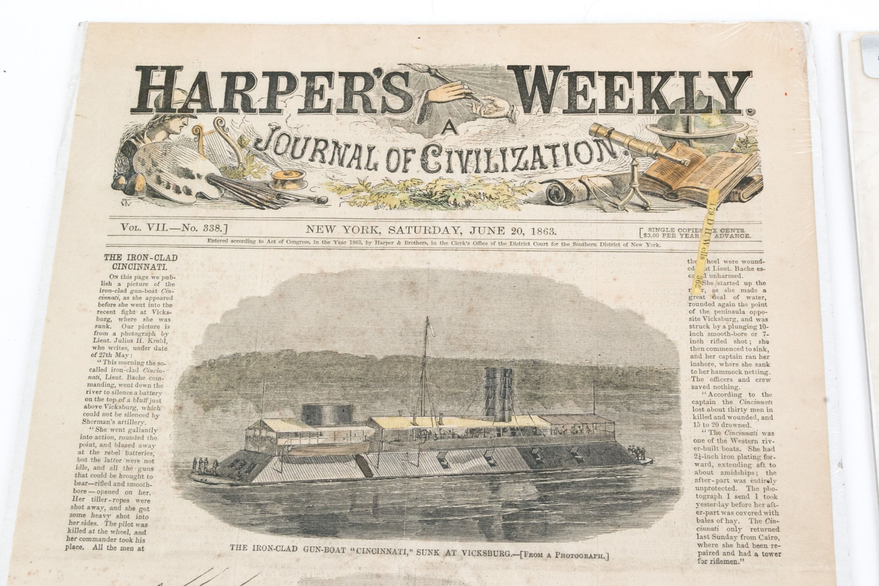 Harper's Weekly, June 20, 1863, Article on the gun boat "Cincinnati" sinking and the Canal Convention in Chicago.