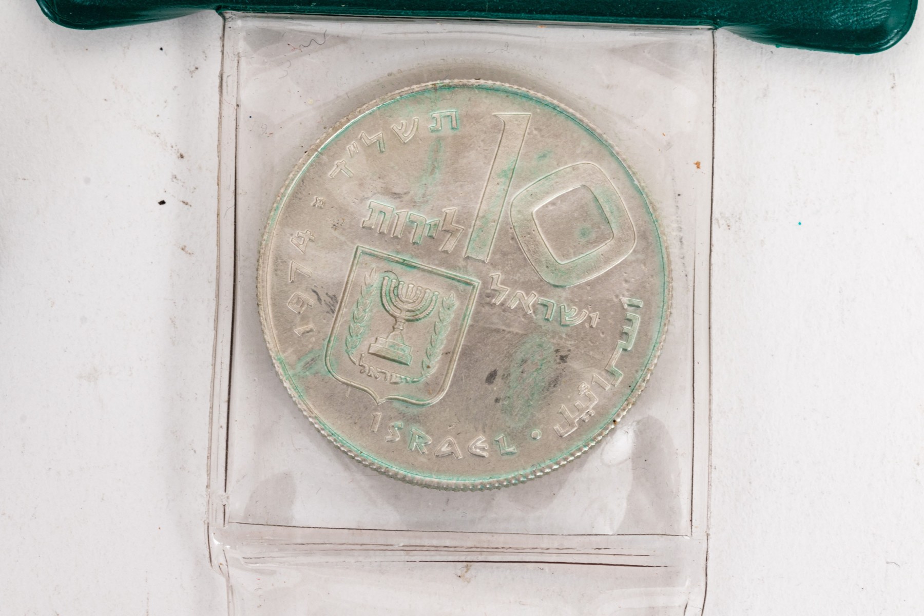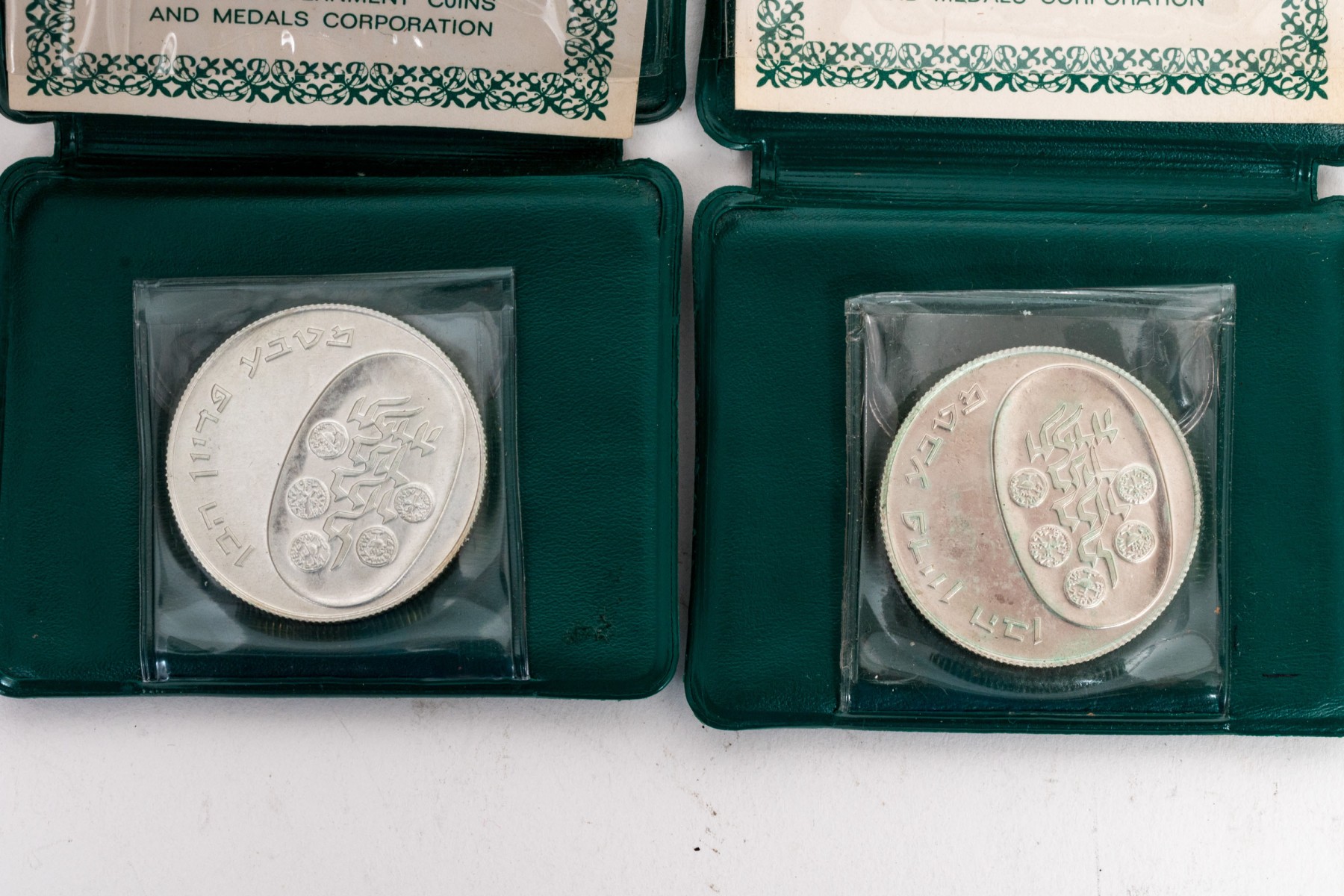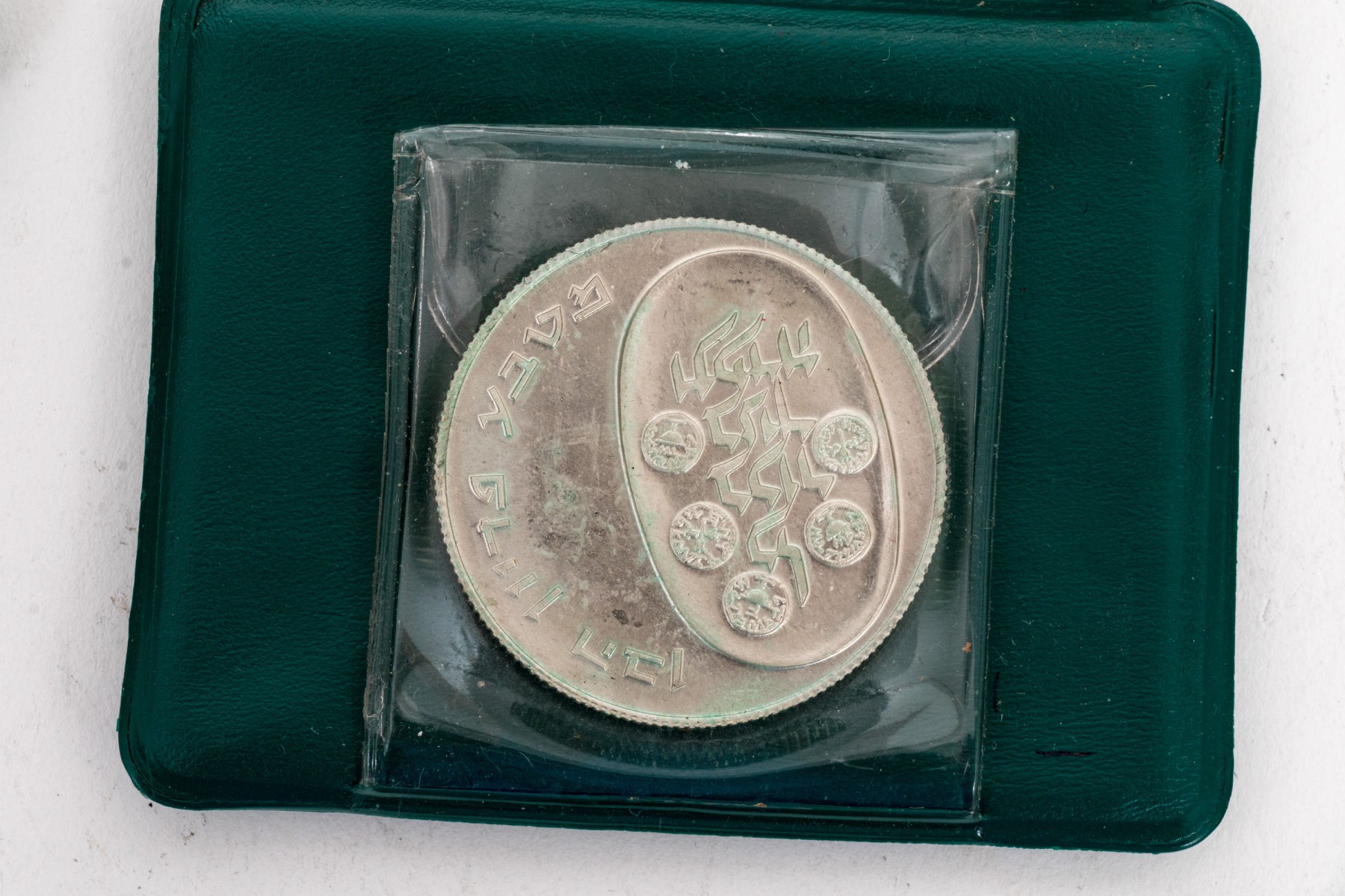 Two 900 silver coins from Jerusalem. Each coin is 26 grams of 900 silver. Displayed in protected cases