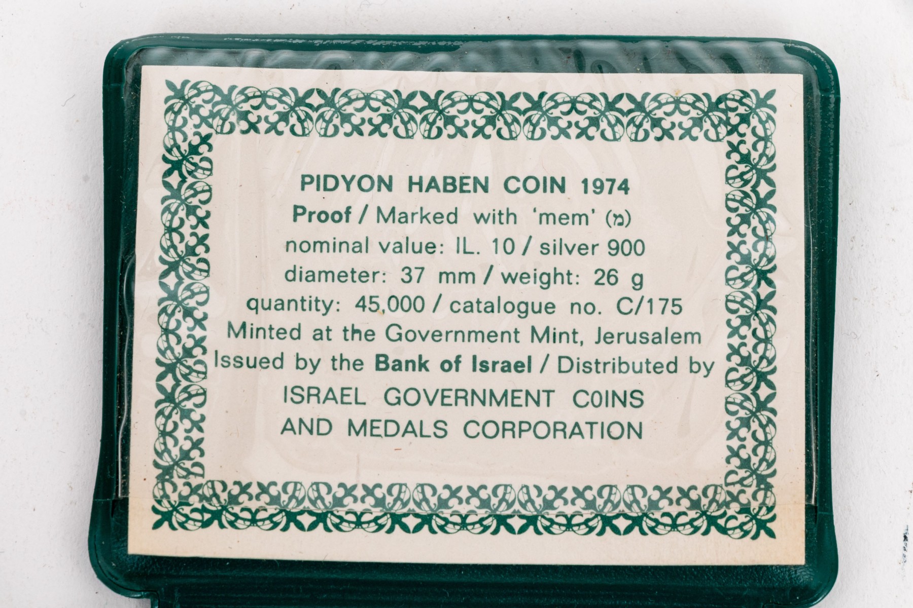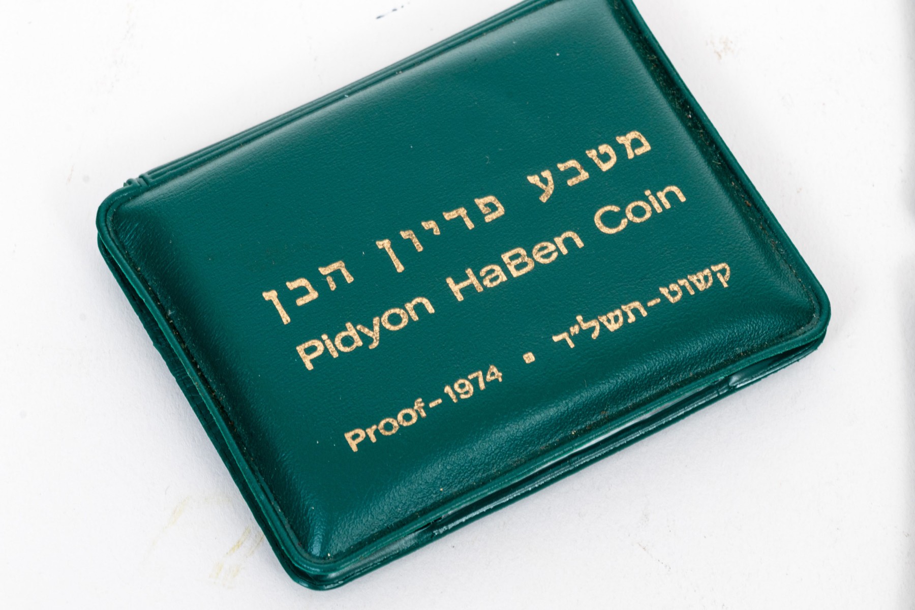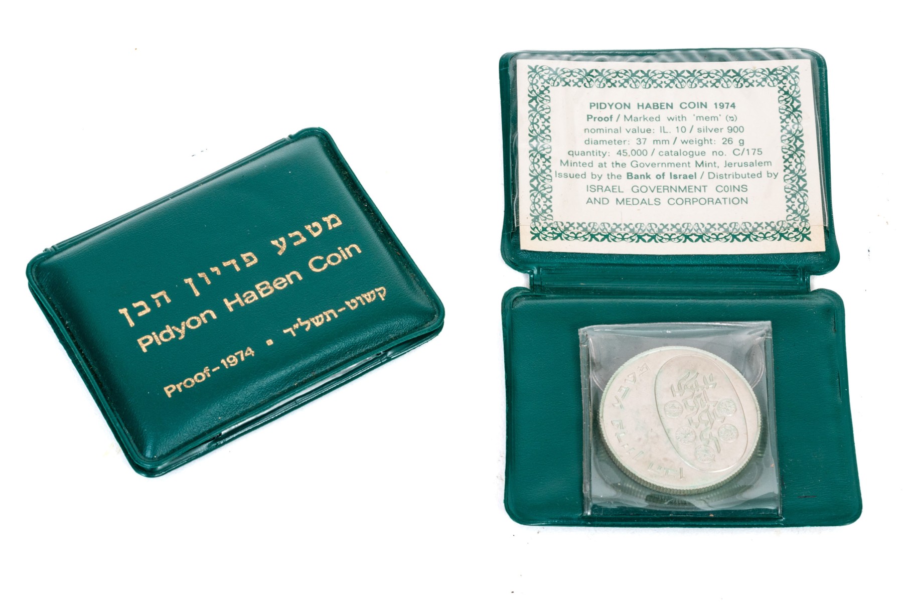 Two 900 silver coins from Jerusalem. Each coin is 26 grams of 900 silver. Displayed in protected cases