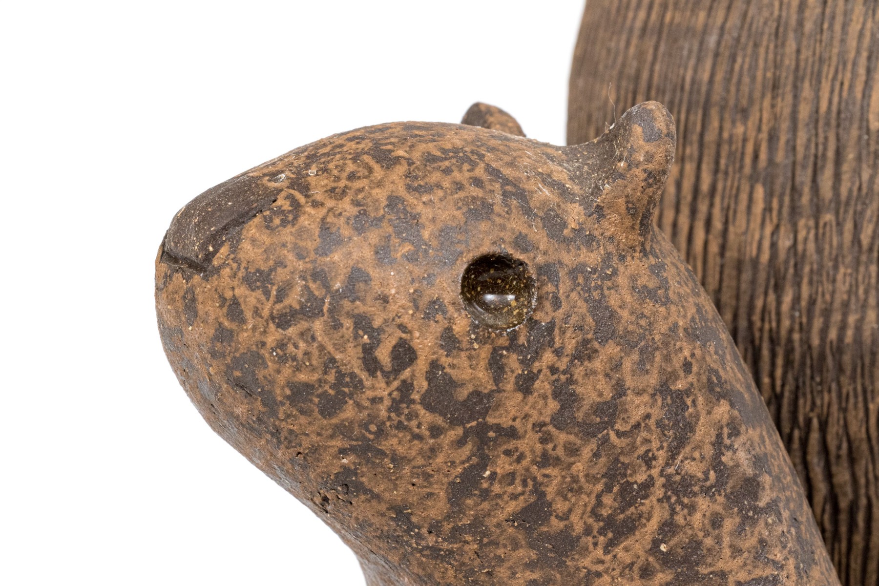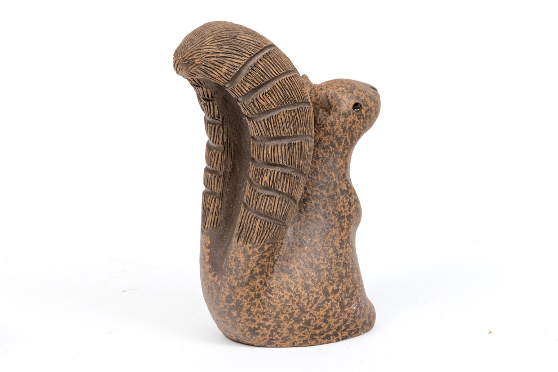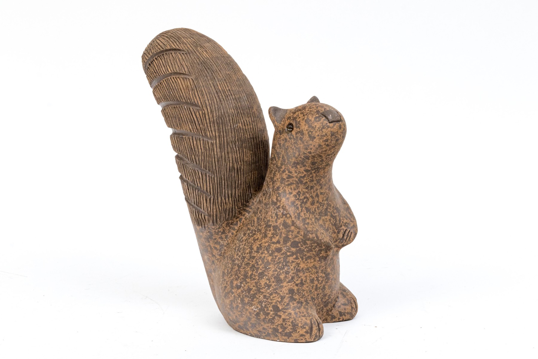 a brown ceramic squirrel figure, 12" H x 5" W x 8 1/2" D