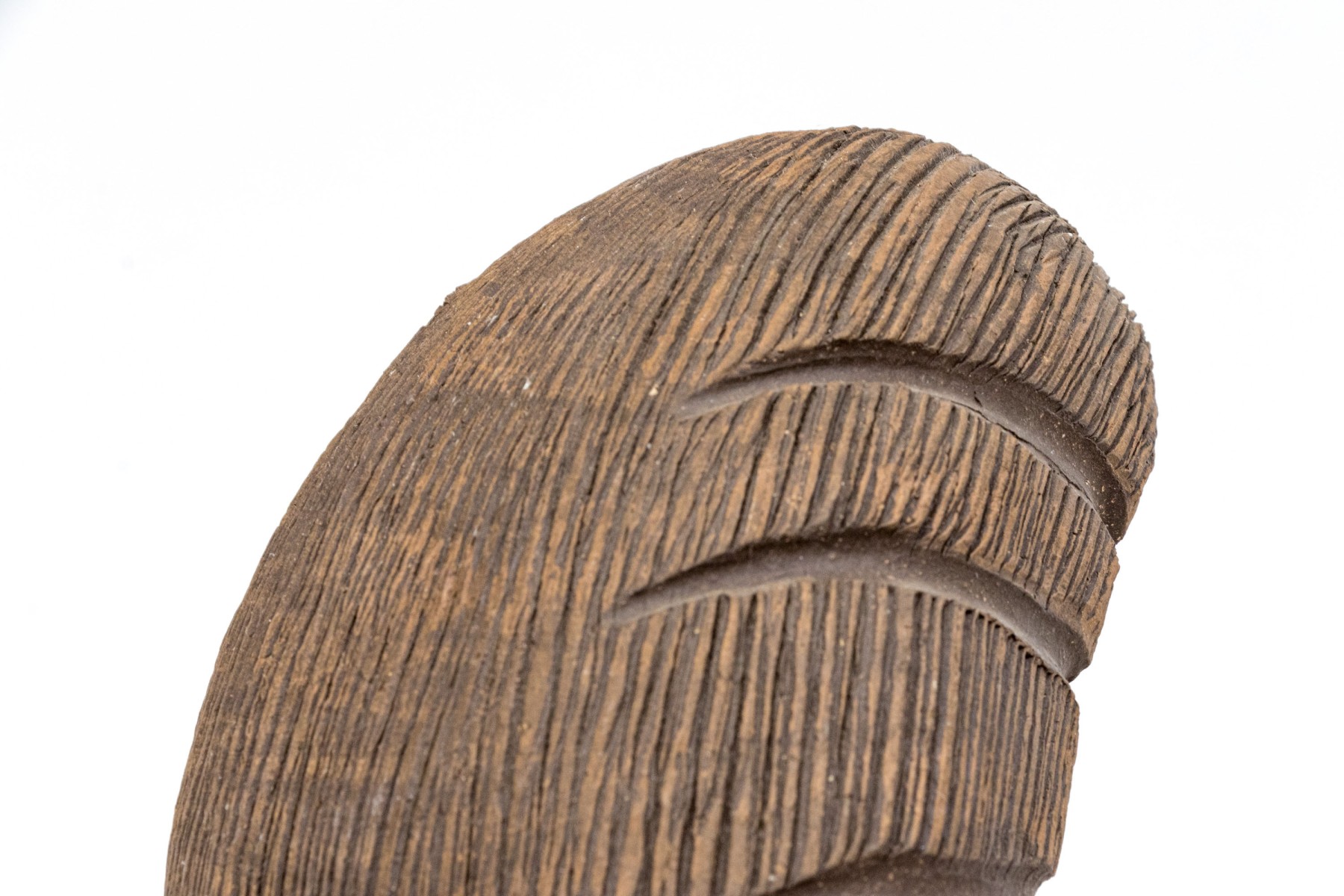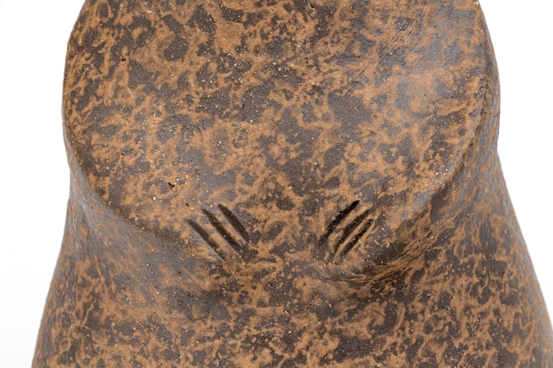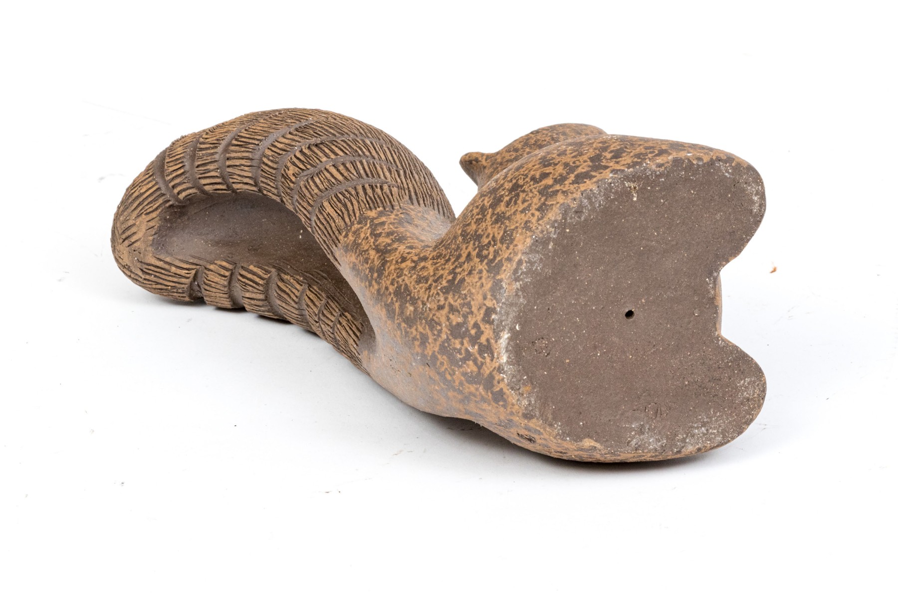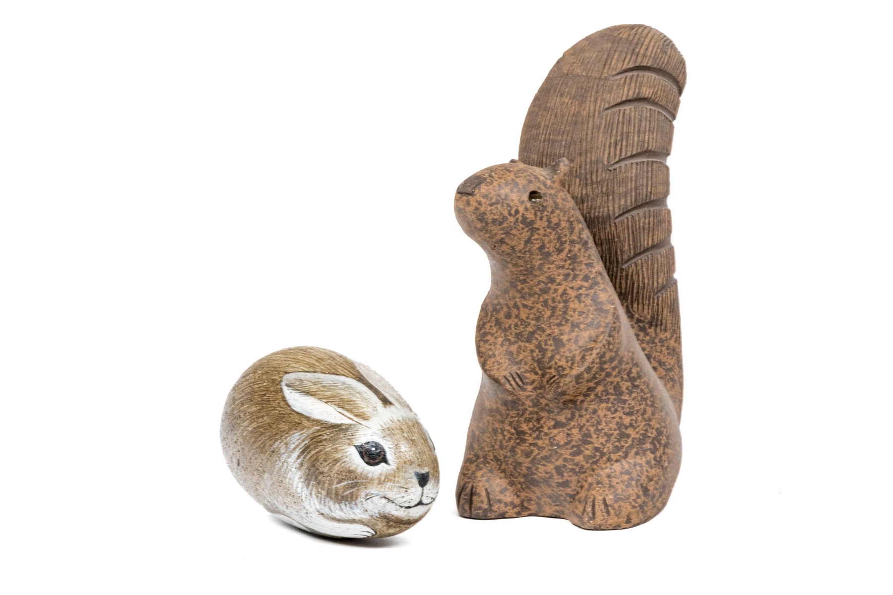 a brown ceramic squirrel figure, 12" H x 5" W x 8 1/2" D
