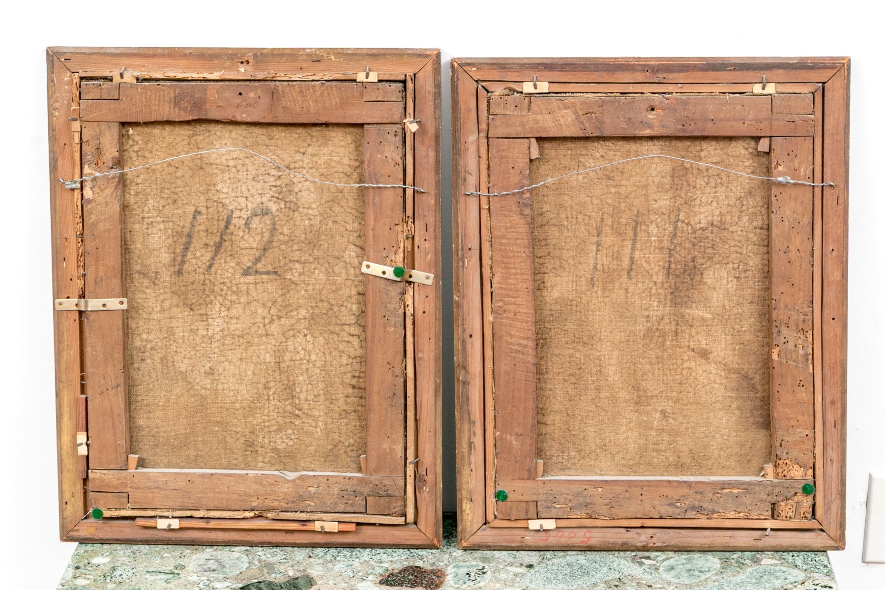 Frames with losses and wear paintings with craquelure and wear commensurate with age and handling. Despite wear both present well overall.