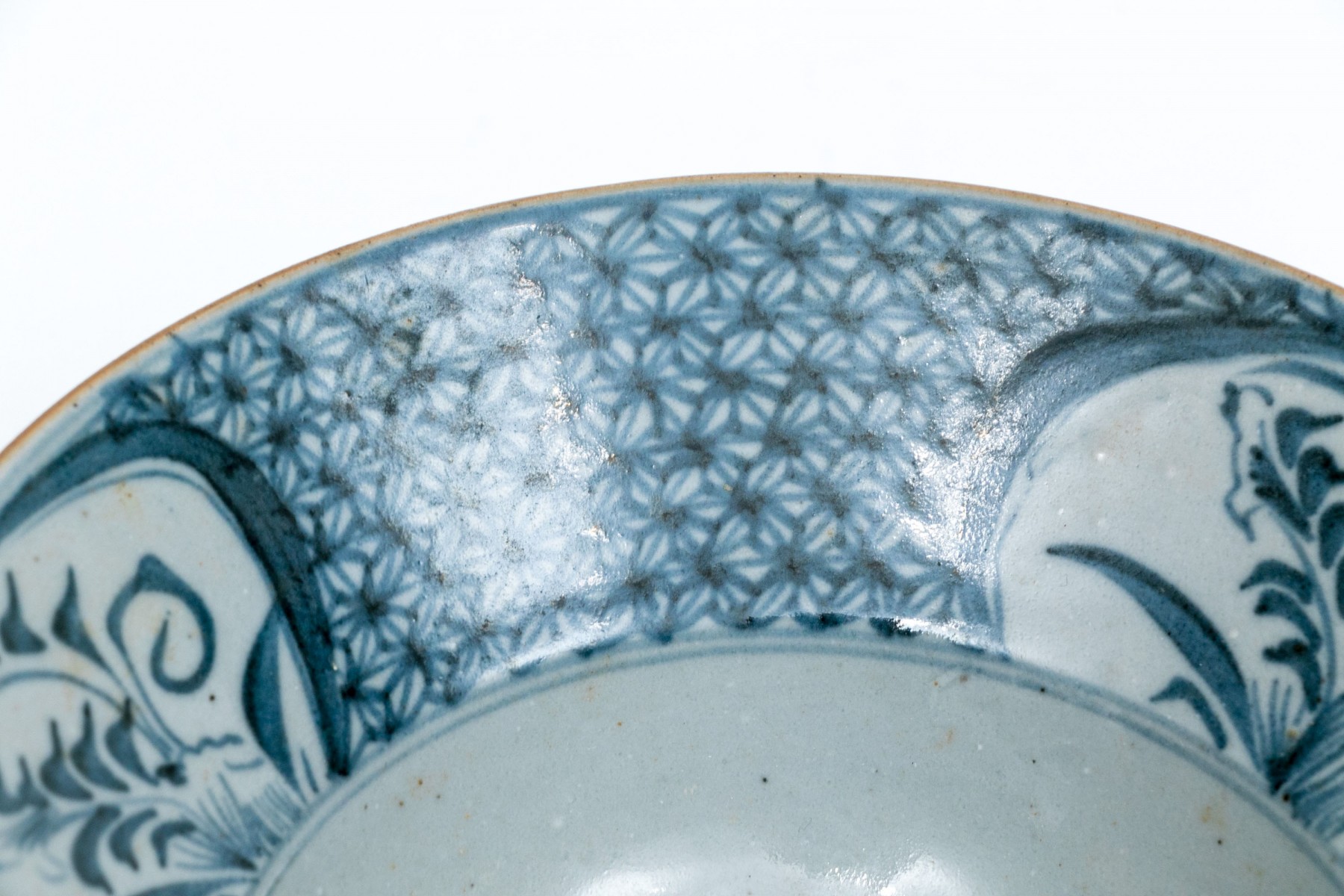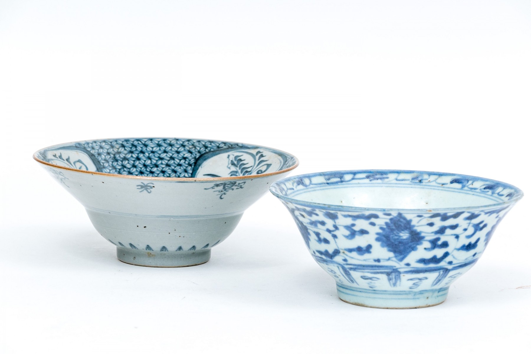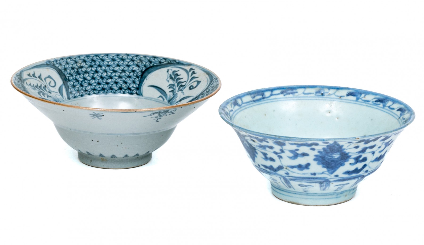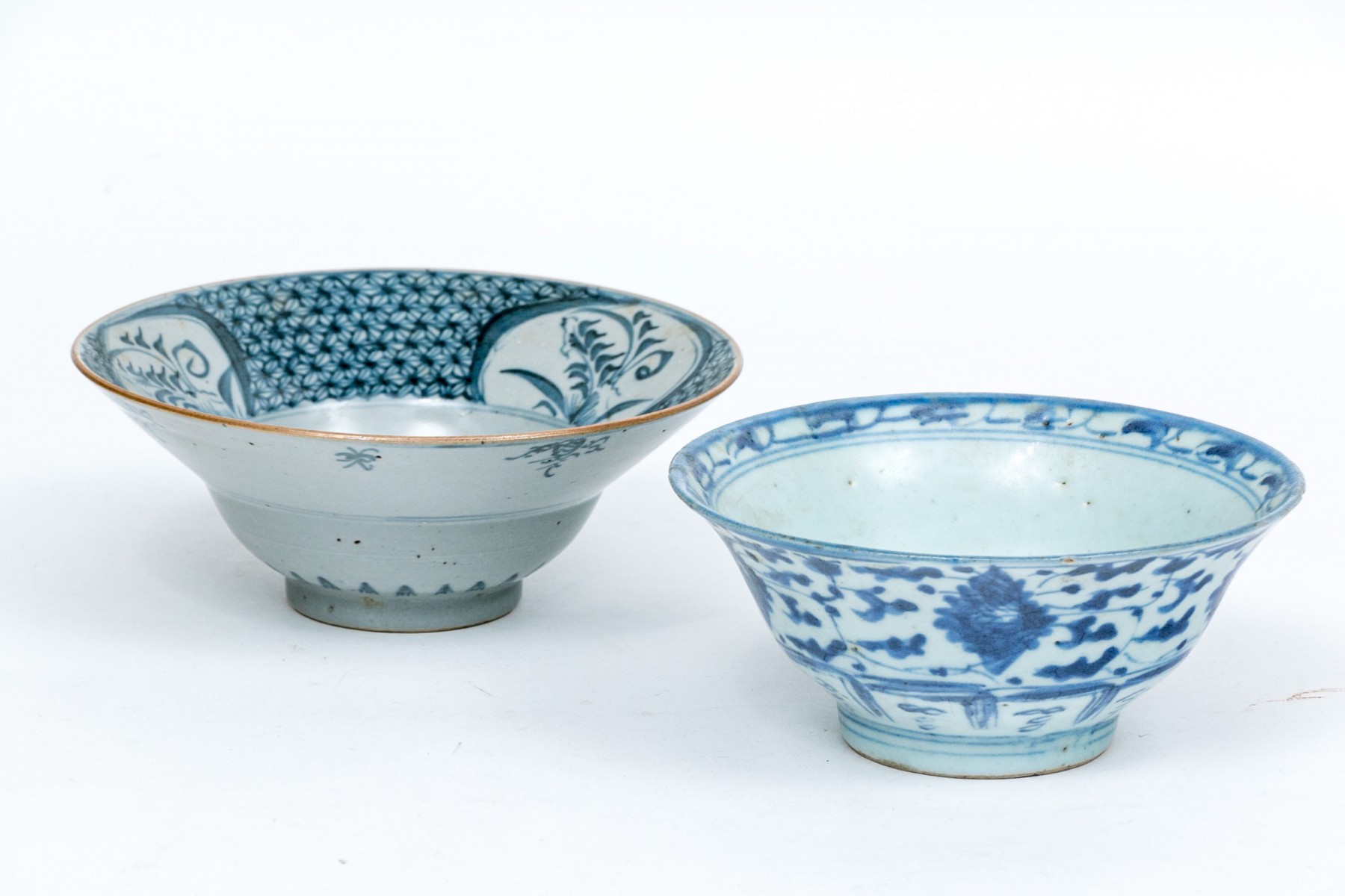 The second one with floral reserves and floral patterned panels inside. The outside with small scale linear decorations.