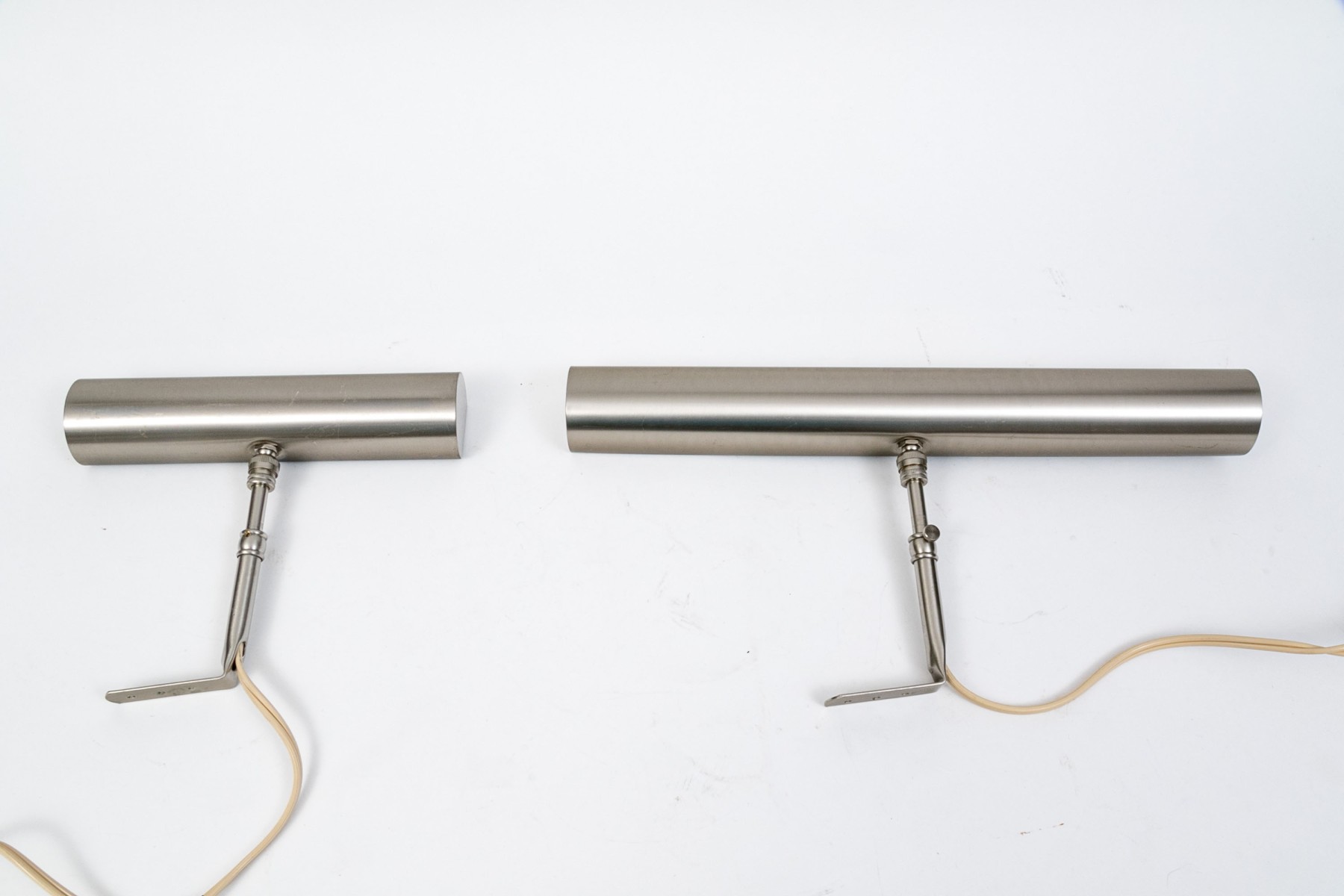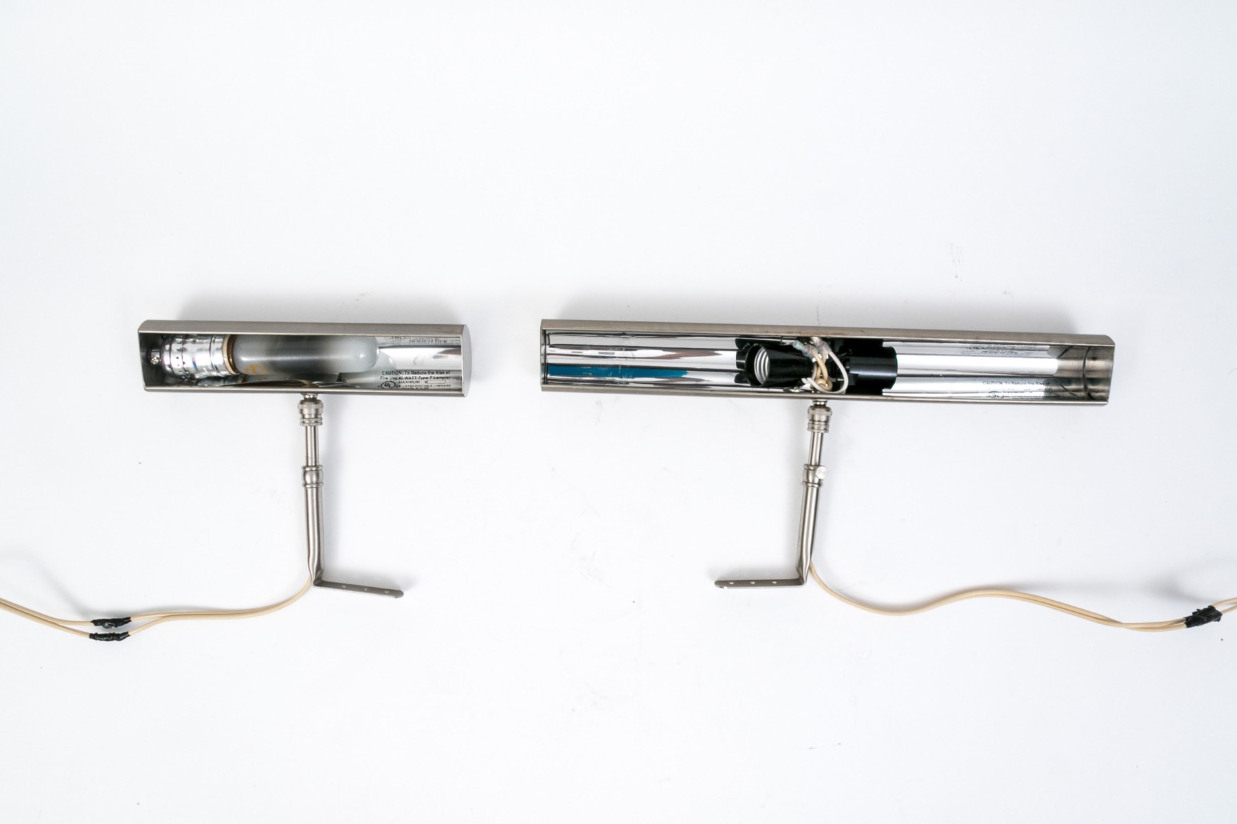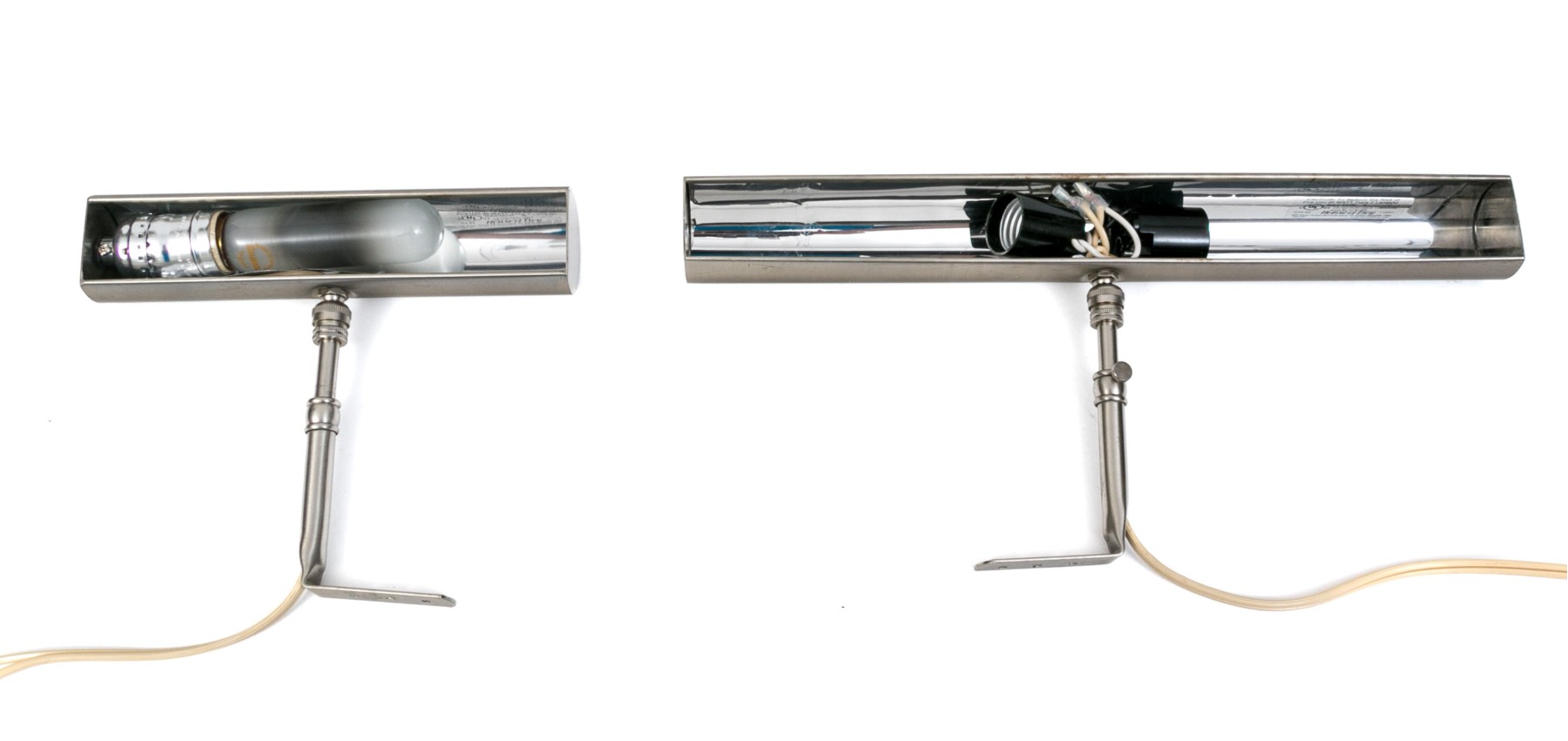 Collection of two chrome finished picture lights. Meant to be mounted and displayed over the top of a picture frame for added illumination.