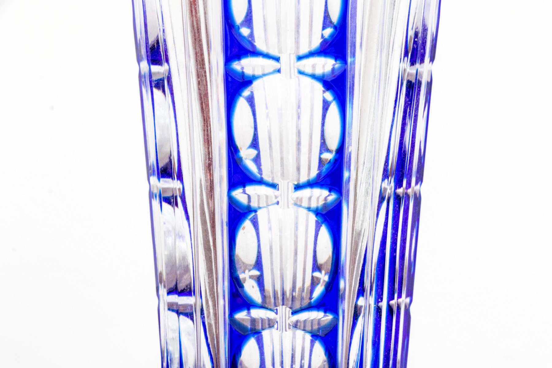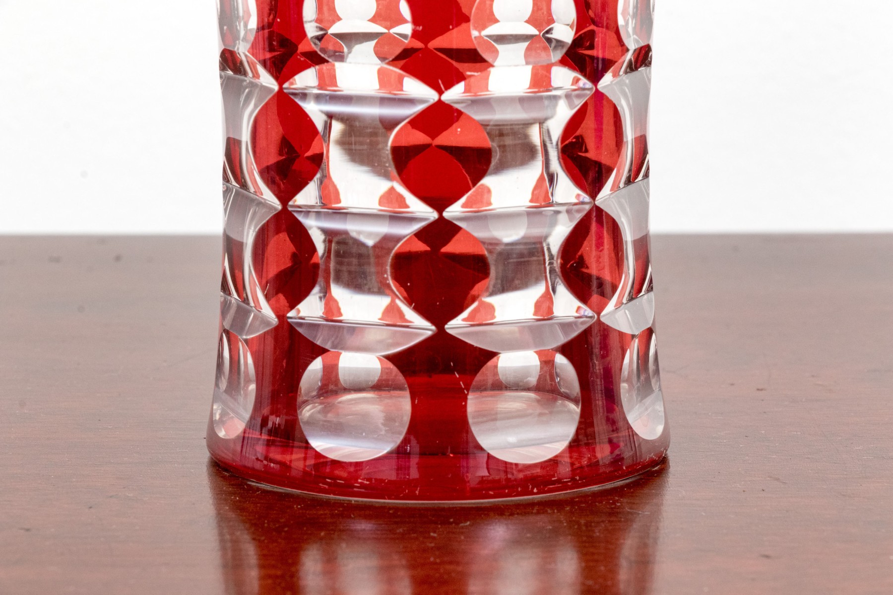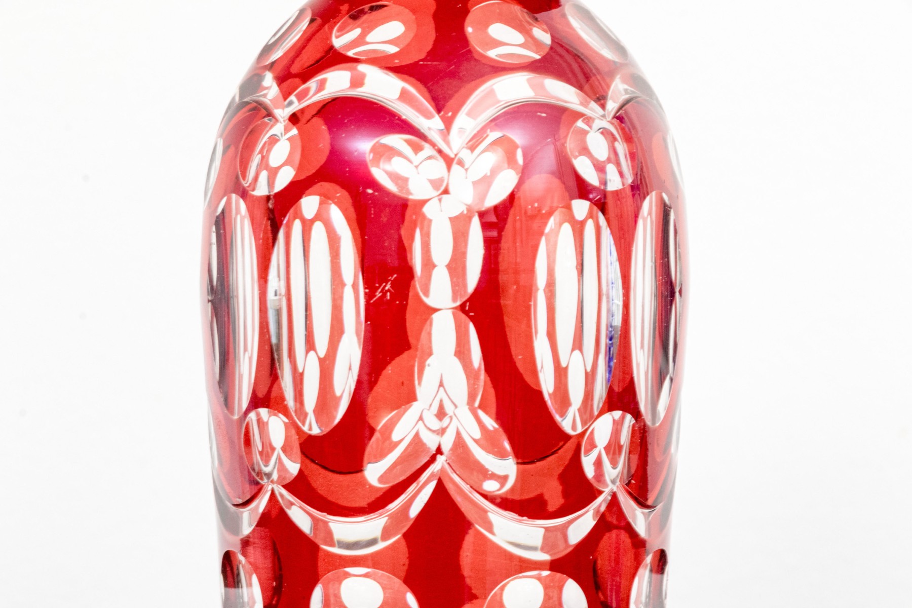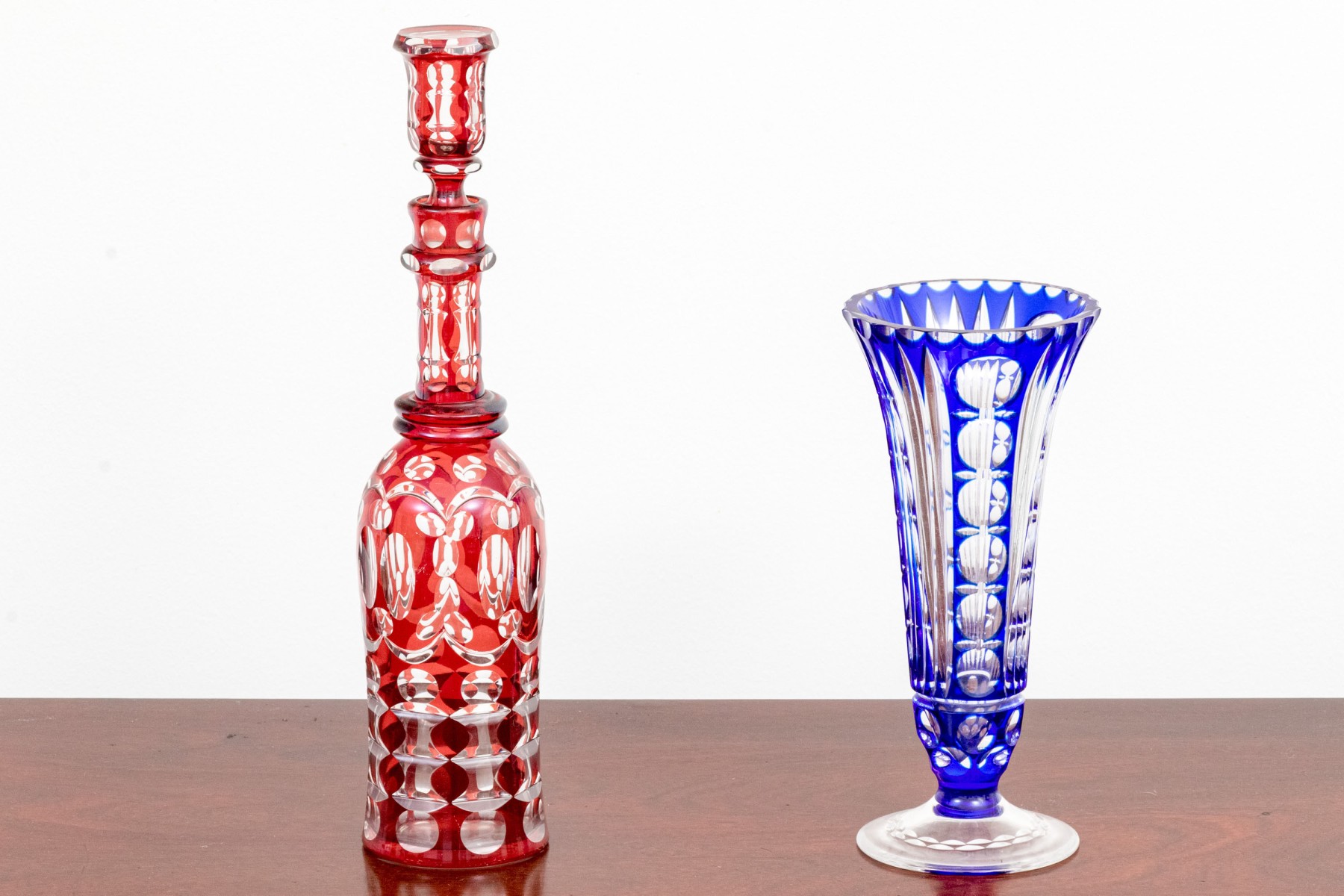 Ruby cut to clear decanter, 19th century, 14” high, Cobalt cut to clear vase, 9 1/“ high