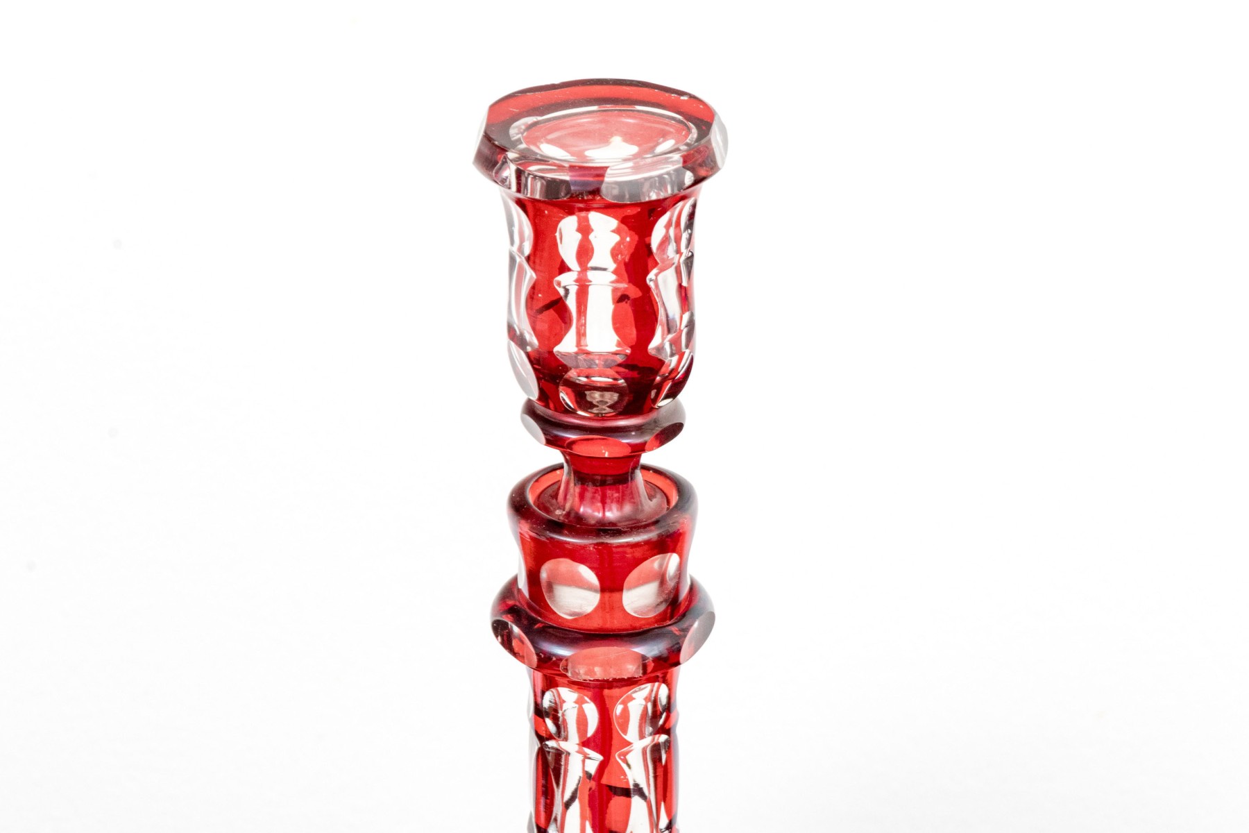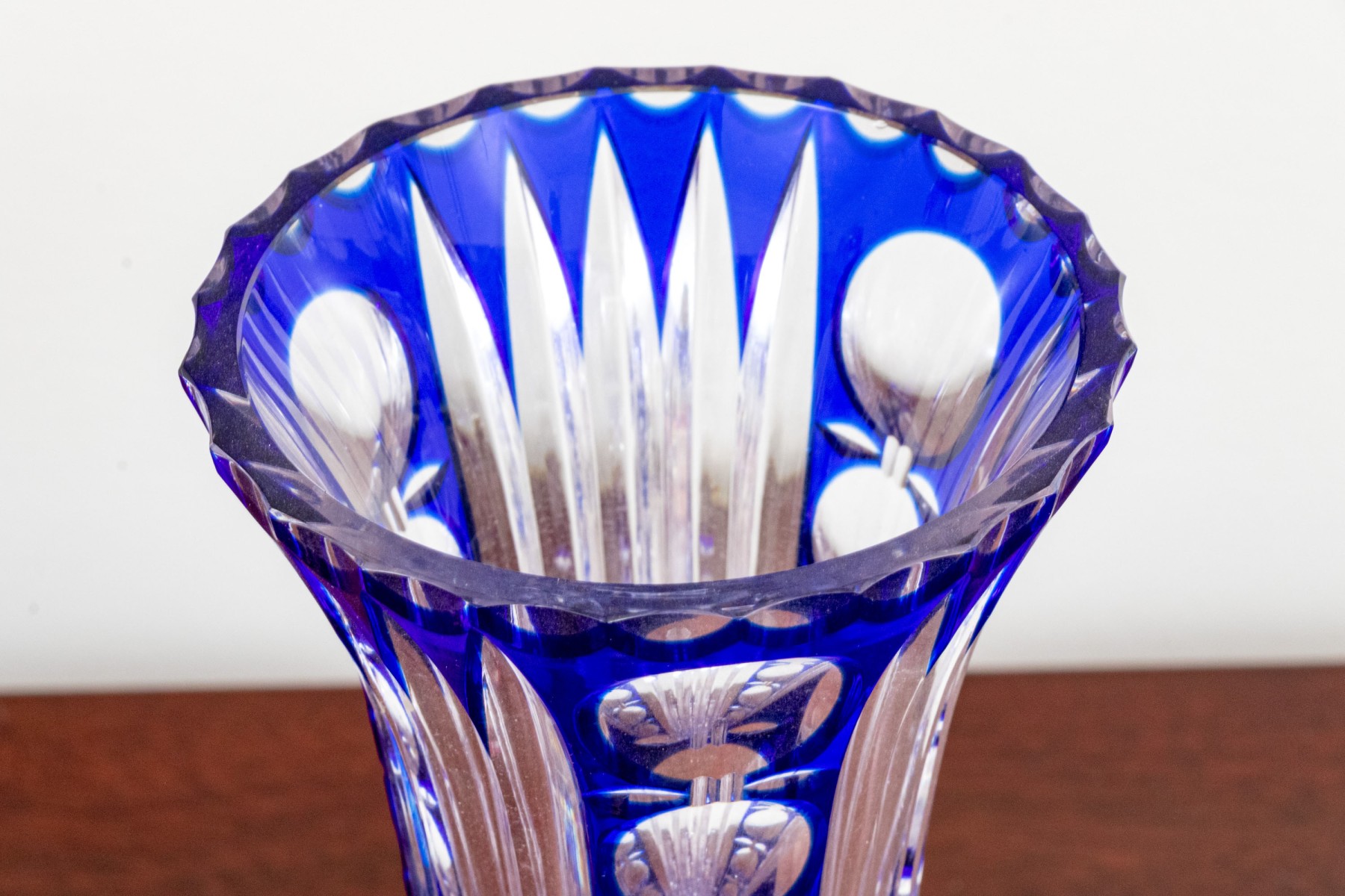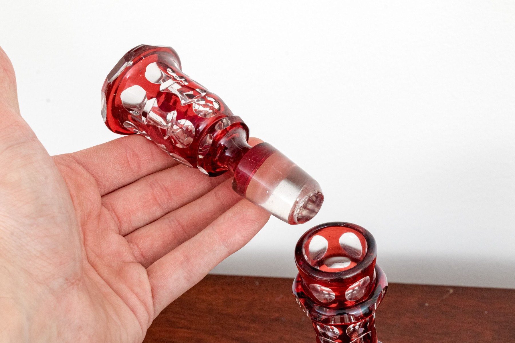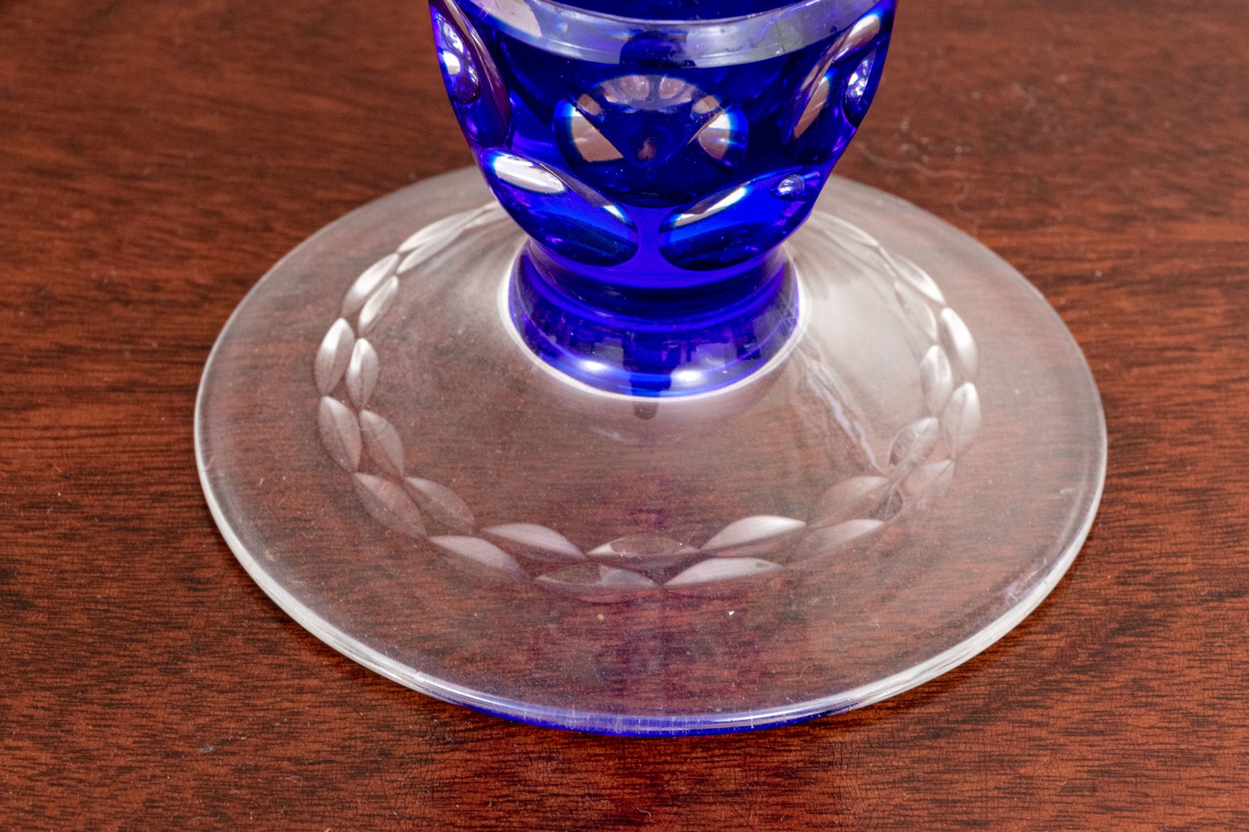 Ruby cut to clear decanter, 19th century, 14” high, Cobalt cut to clear vase, 9 1/“ high