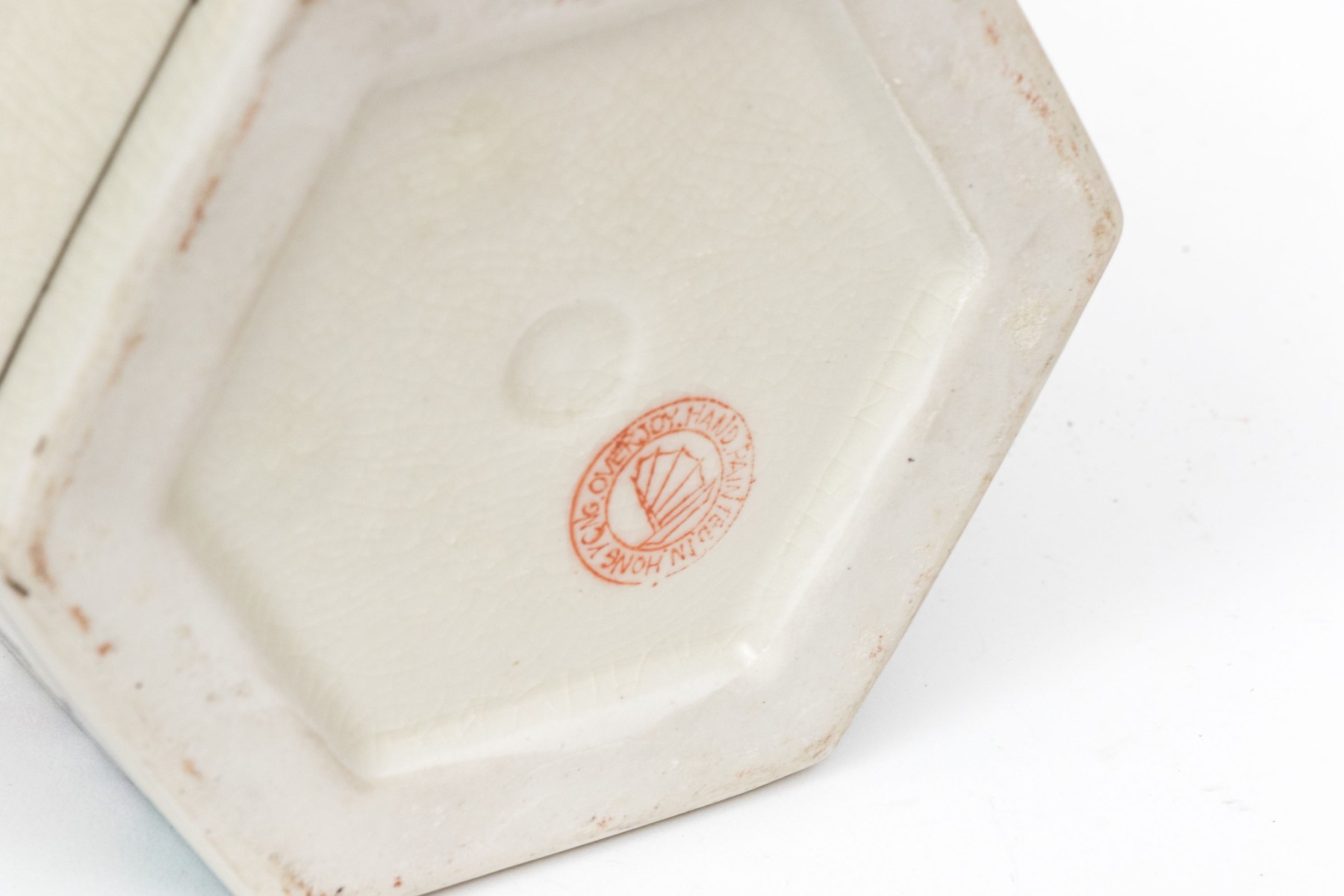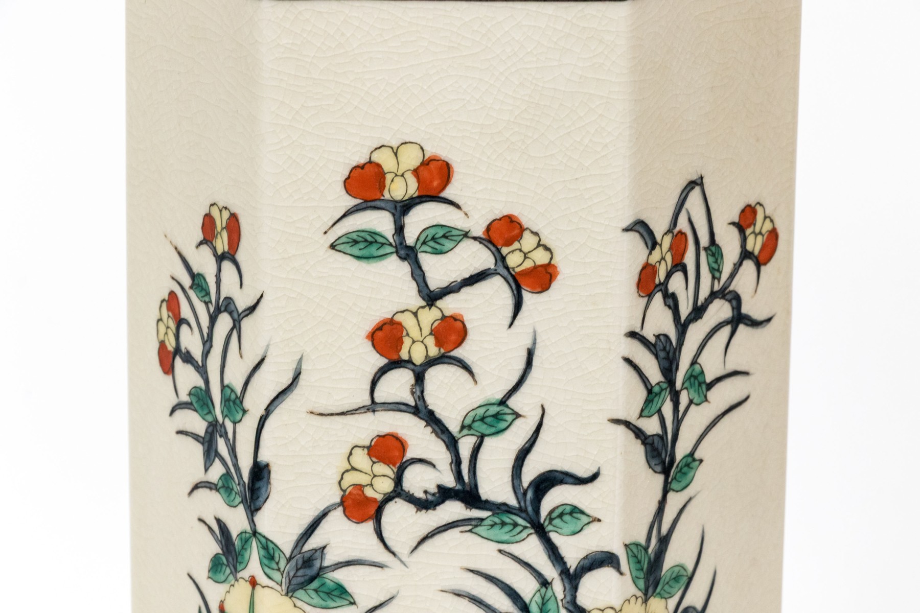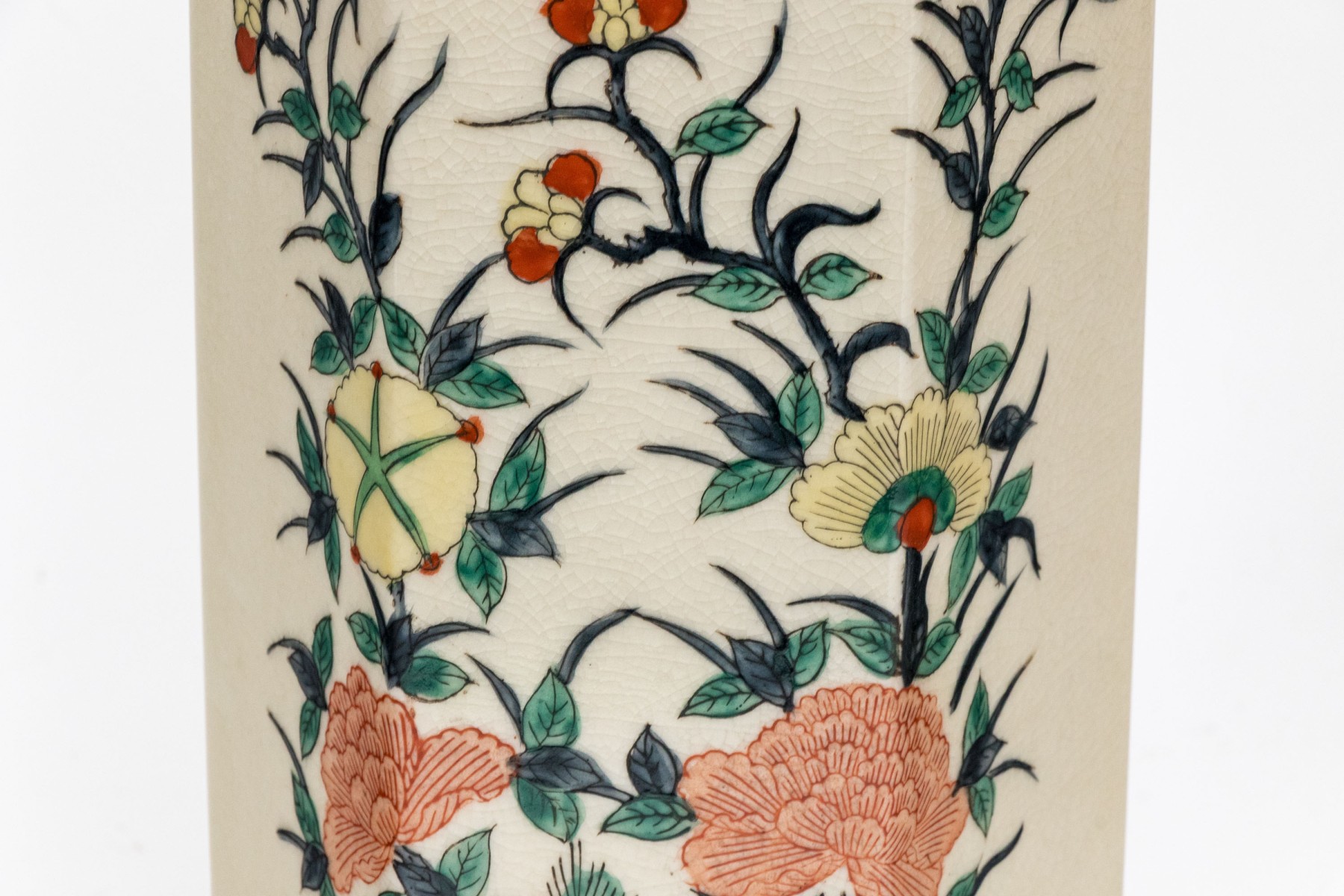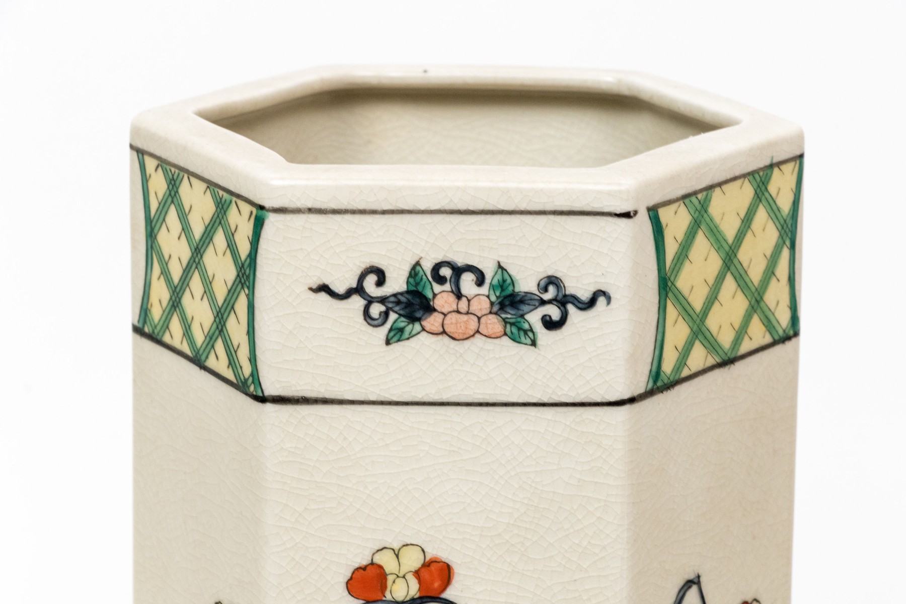 Comprised of a Chinese export famille rose medallion porcelain vase, together with a hexagonal form crackle glazed famille verte decorated porcelain vase, marked made in Hong Kong underfoot.