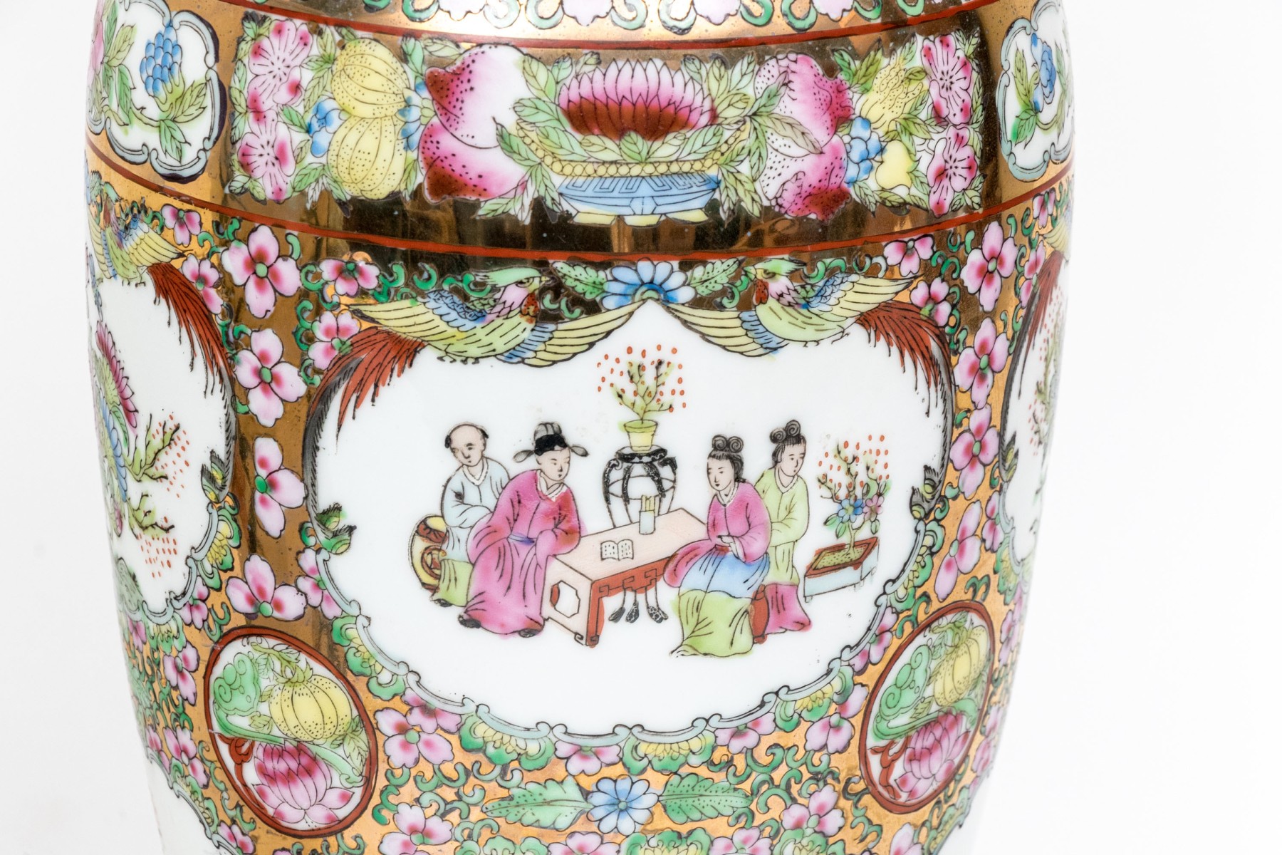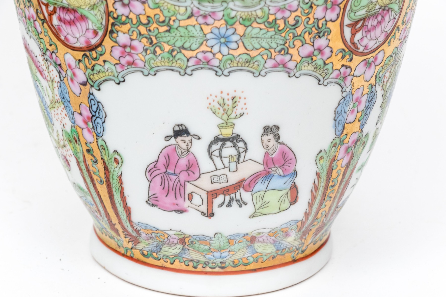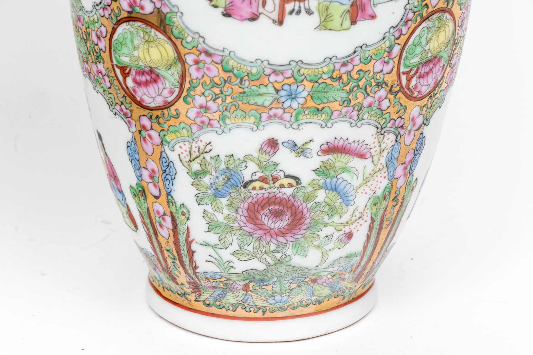 Both are good, gentle wear to the enameled finish and gilt finish on the rose medallion vase but overall both present well.