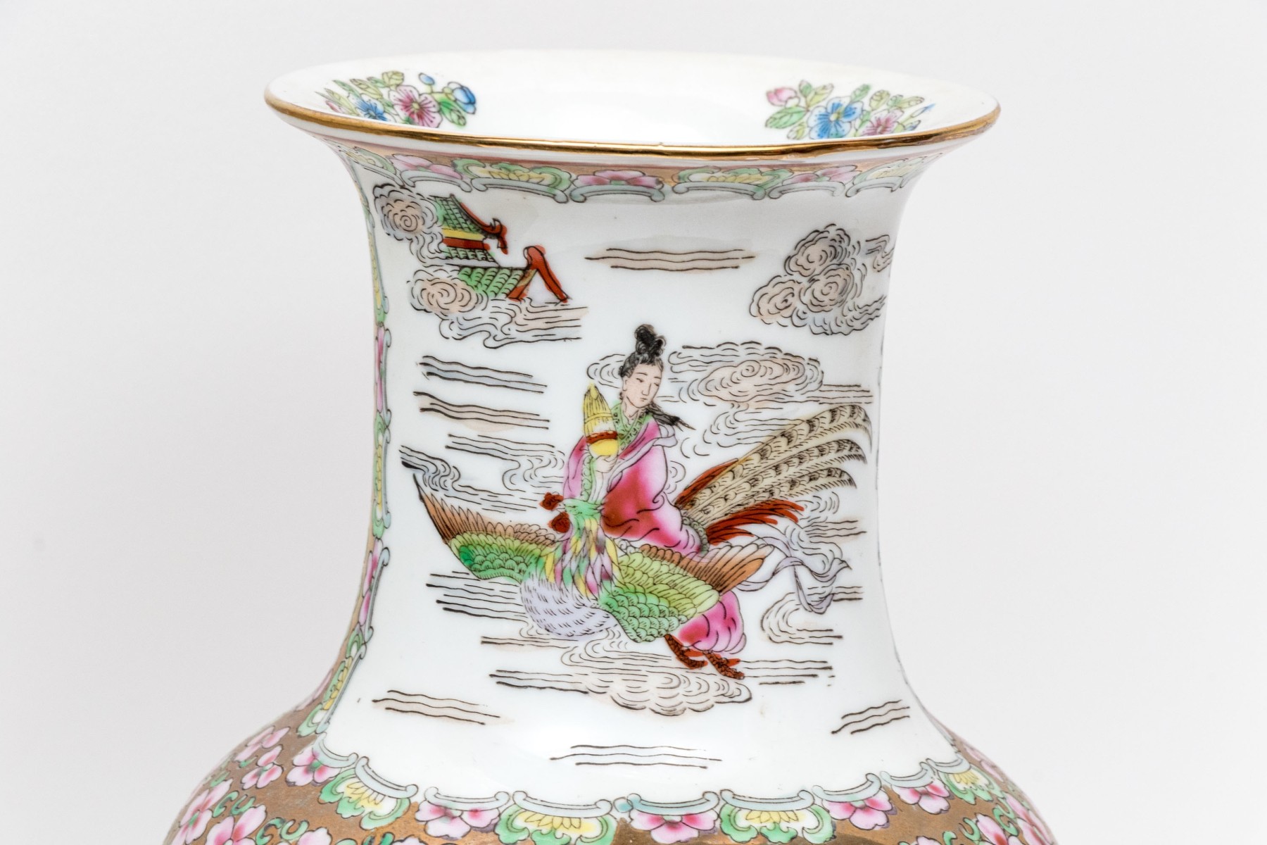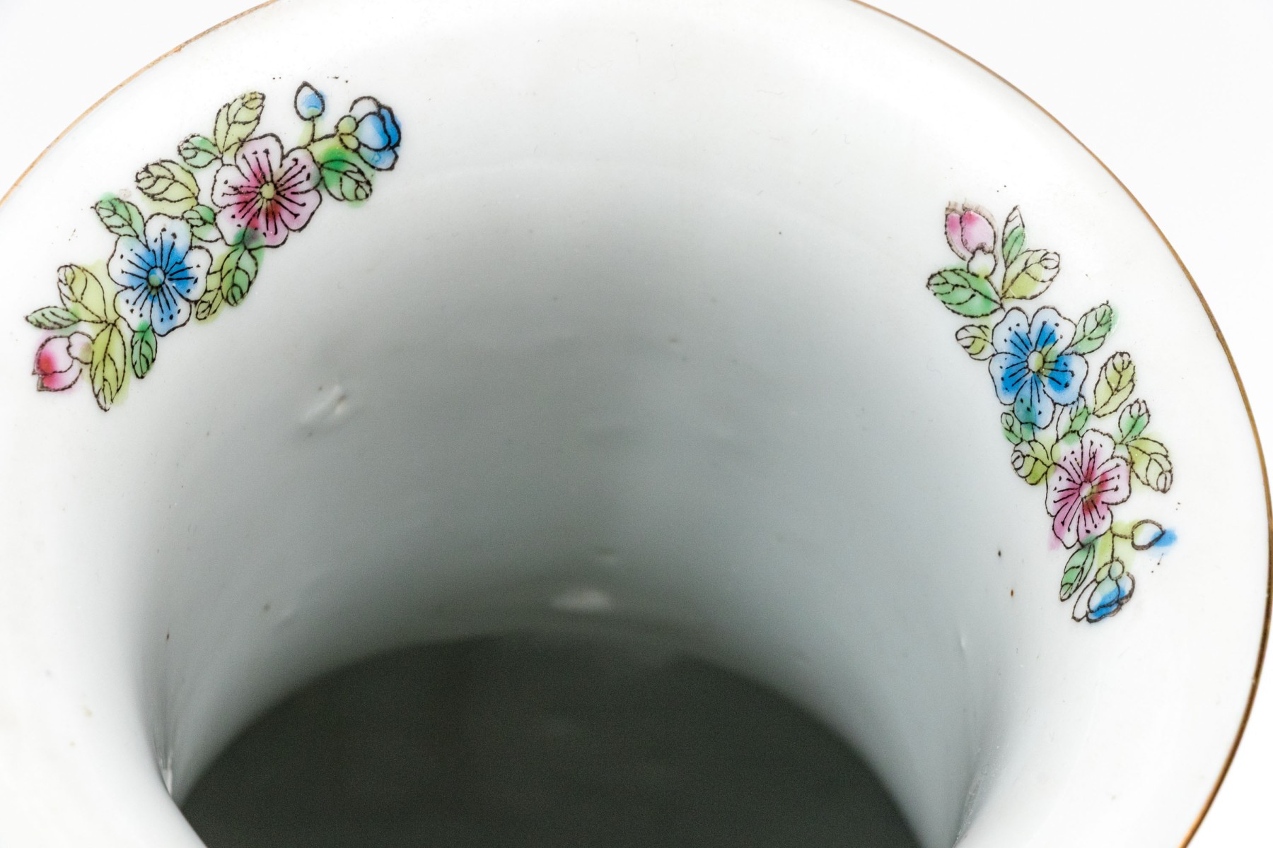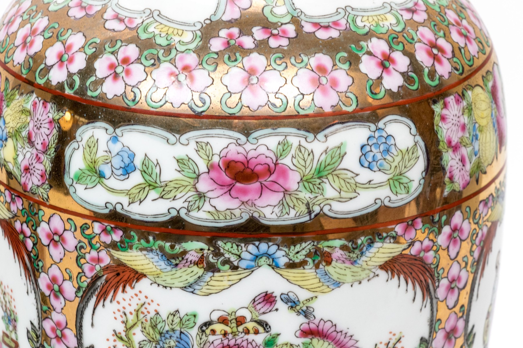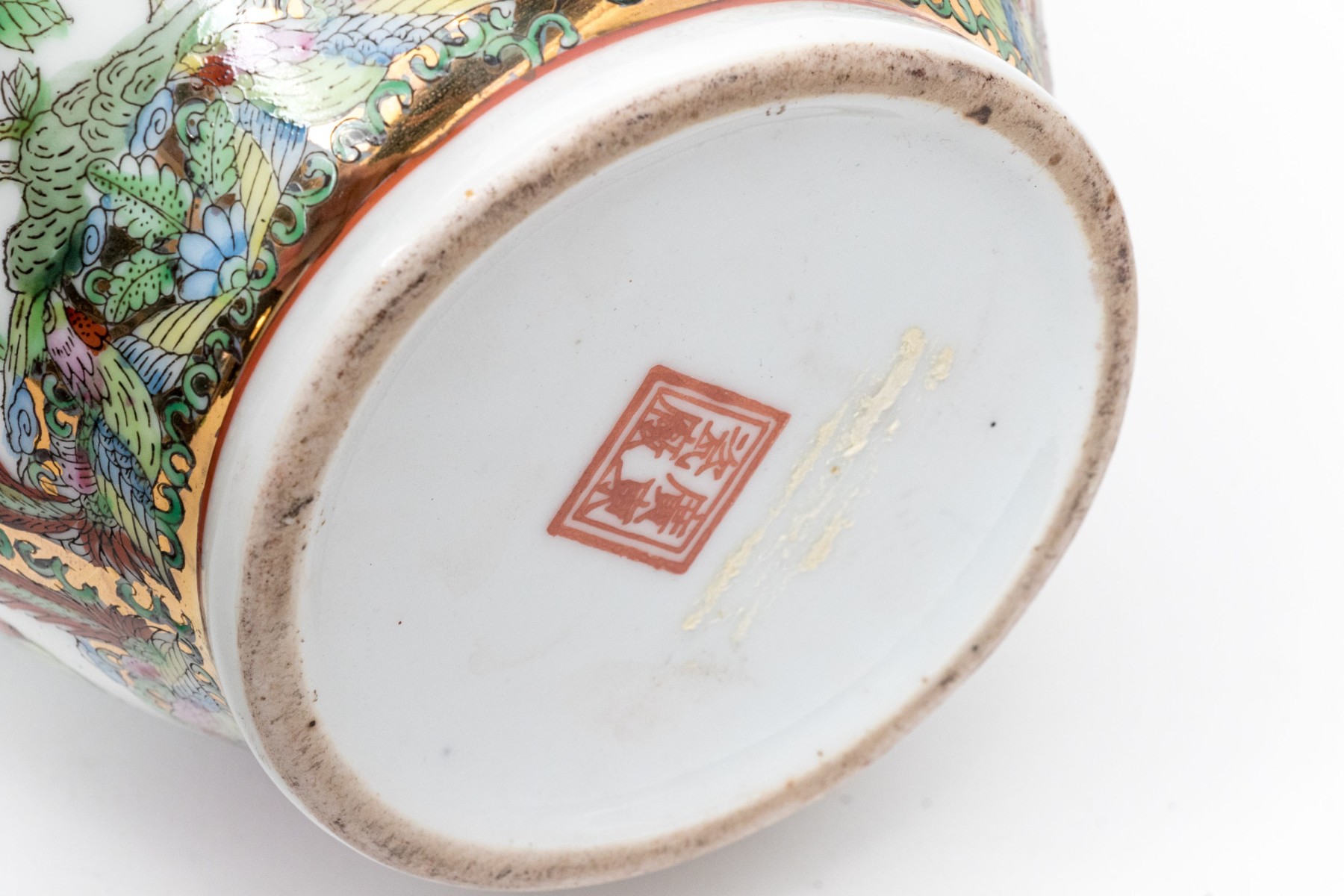 Both are good, gentle wear to the enameled finish and gilt finish on the rose medallion vase but overall both present well.