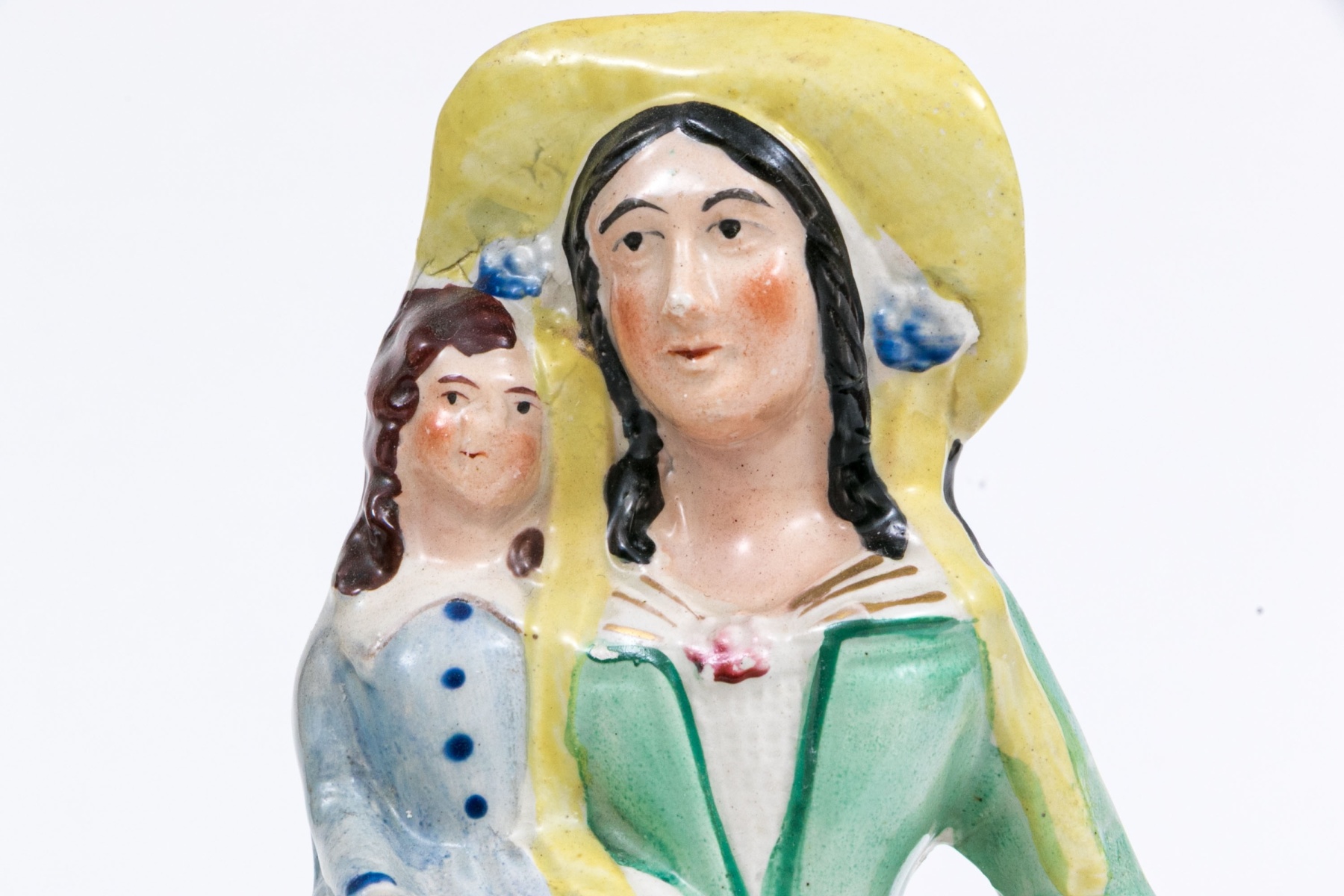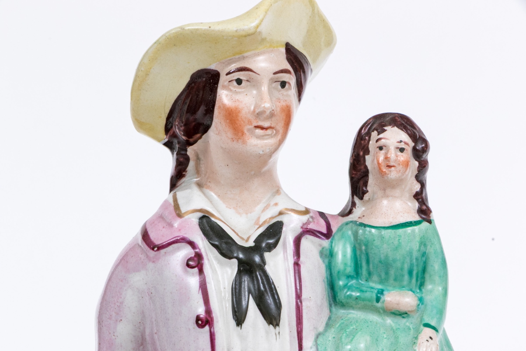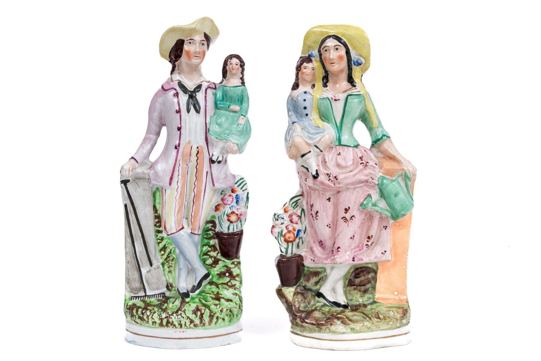 Including one with a man depicted holding a young girl, likely his daughter, both dressed in period attire. Together with a standing woman holding a young girl, likely her daughter also dressed in period attire. Both figures have a charming presentation.