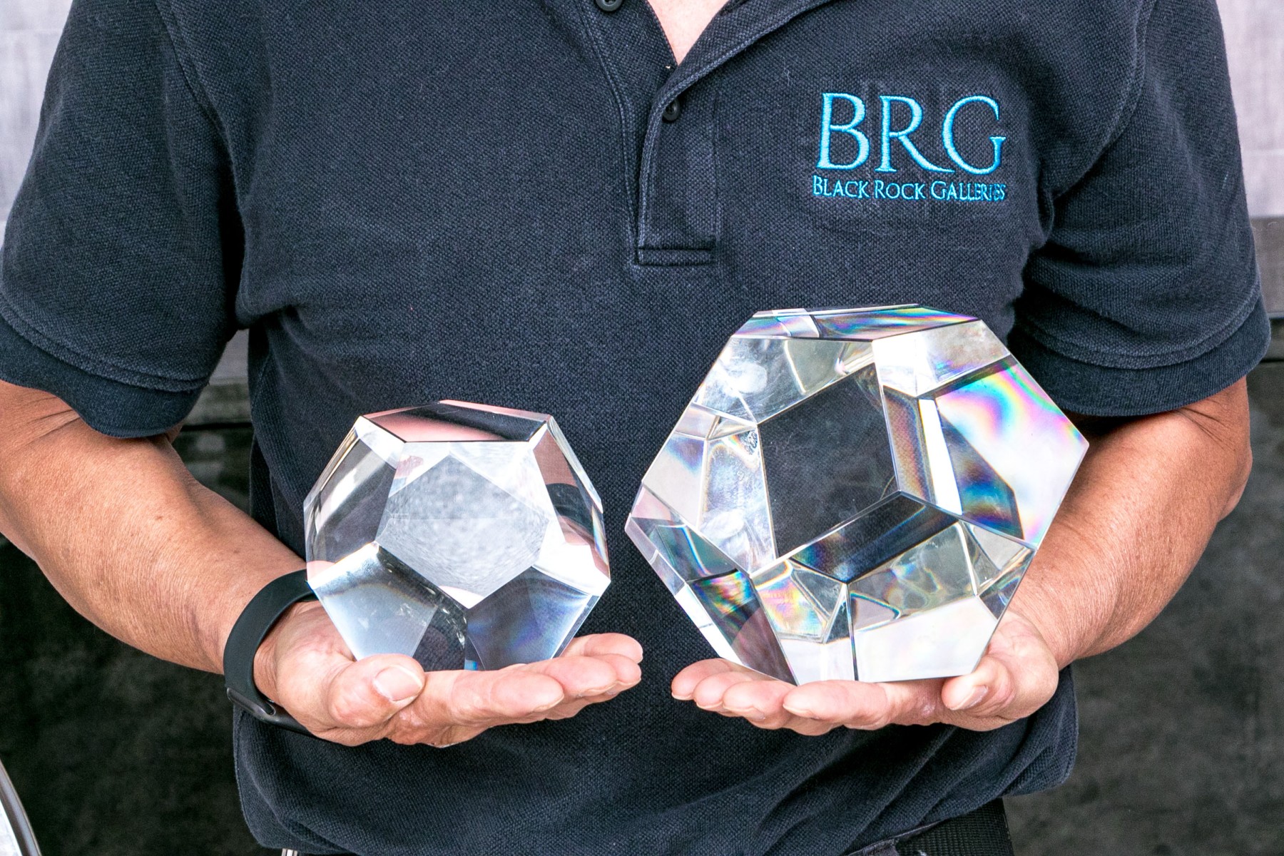 Two Fabulous Glass Faceted Sculptural Desk Ornaments #323112. Black Rock Galleries provides high end estate liquidation services through online estate auctions and a 50,000 sq ft designer showroom. estate liquidator, estate sale, online auction, antiques, fine art, liquidation, clean outs, auction, consignment, interior design, fine jewelry, collectibles, appraisals, estate appraisals, estate services, decor, furniture, furniture consignment, antique center, consignment shop. We offer appraisal services and specialize in fine art, jewelry, antiques and decorative arts. Sell with us. Black Rock Galleries is the tri-state's largest estate liquidator serving New England and the greater New York City area. We are the trusted source for expert appraisals, auction services, estate sales, and consignments. Black Rock Galleries is the east coast's largest and most trusted estate liquidator, with locations in Connecticut, greater Boston, MA and Raleigh, NC, Fairfield, Southport, Apex, TX. We are the best source for expert appraisals, auction services, estate sales and consignments. We have served thousands of families and estates with compassion, professionalism and expertise. BRG works with attorneys, executors, realtors and families to bring the greatest return on personal and estate property in the current market. Our unique combination of services make us the easy choice to get the job done in a timely and stress-free manner. We are with you from the initial consultation to the final clean out. Our house-built online auction software platform offers clients a dynamic approach to liquidating their personal property. This venue is most successful in bringing the best return with the least amount of disruption for our clients. See our services page for a complete description of this offering. Two Fabulous Glass Faceted Sculptural Desk Ornaments #323112