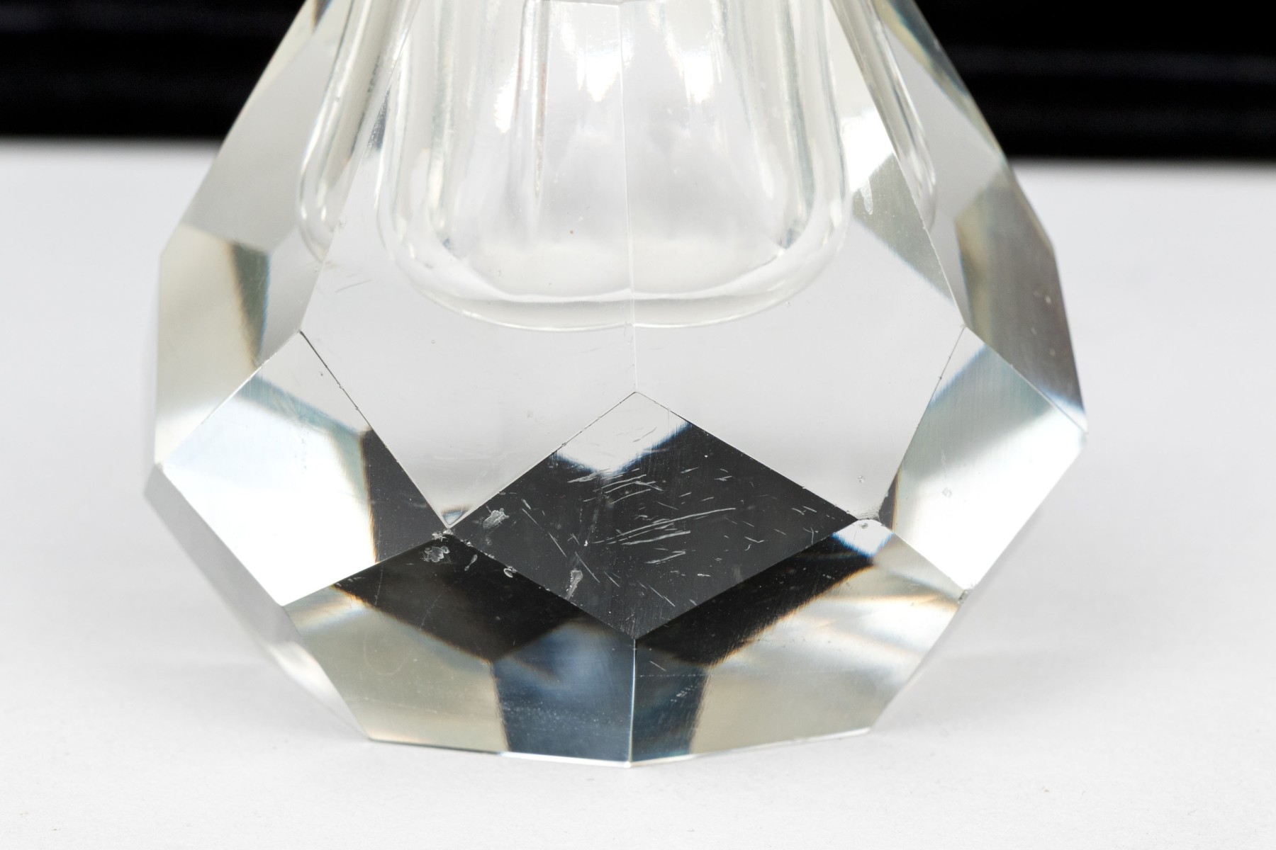 Condition: Please review the detail photos. Small one- A few minor scratches on a lower facet and the base. There is a tiny chip to one facet point on the base edge.