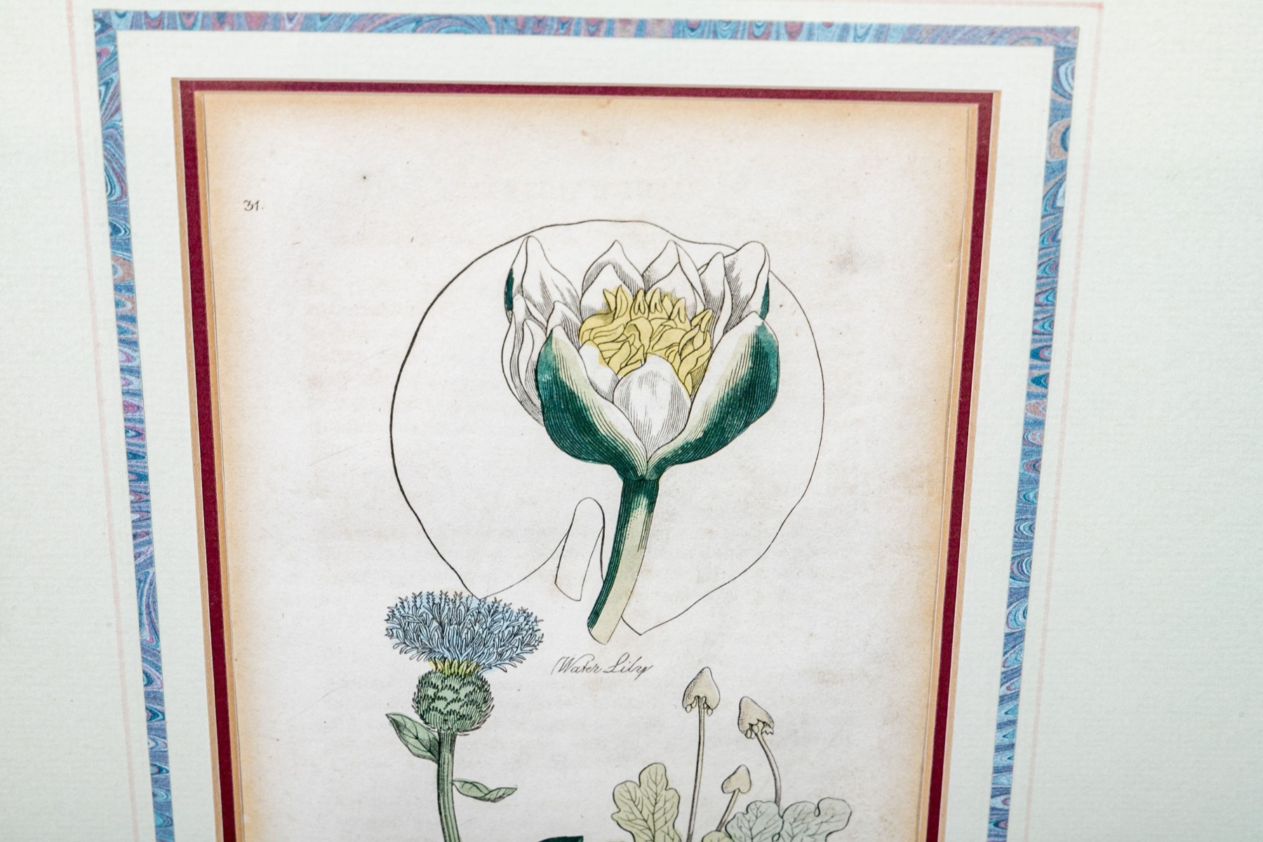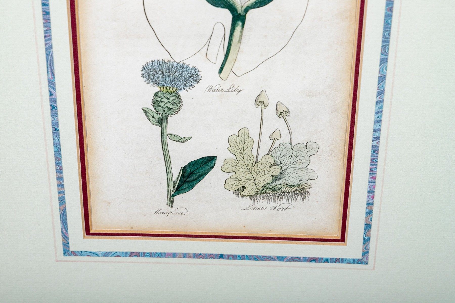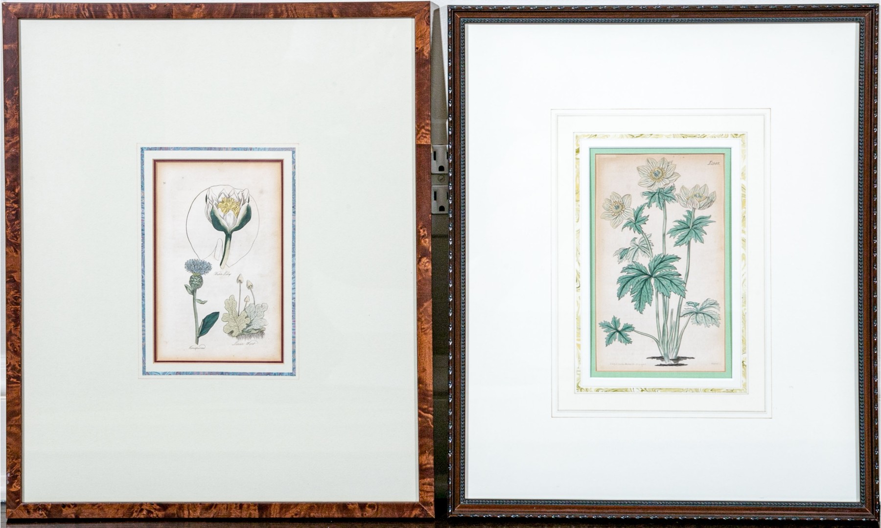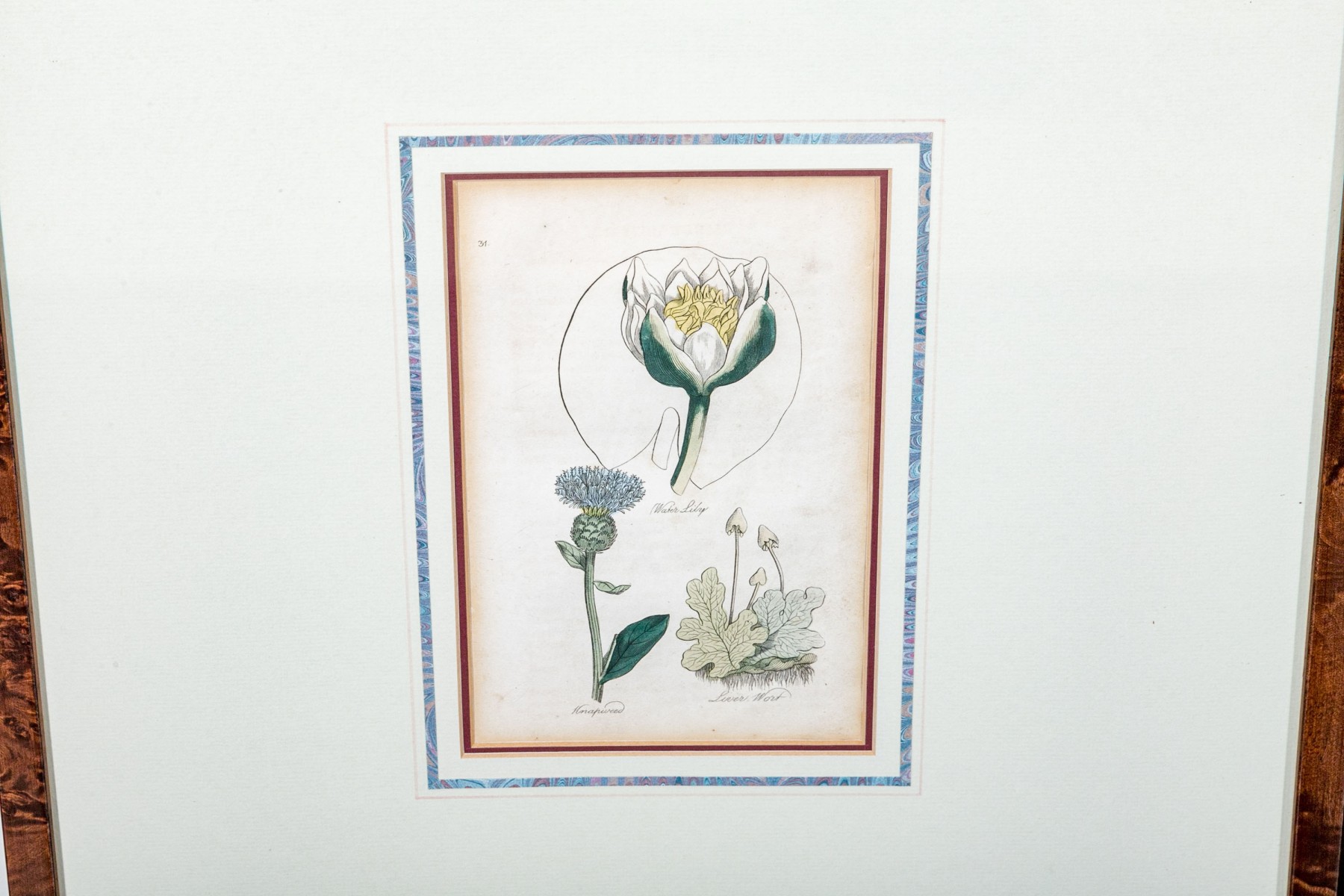 Along with a lithograph of three different flowering plants. Presented in a fine J. Pocker & Son brown frame with glass.