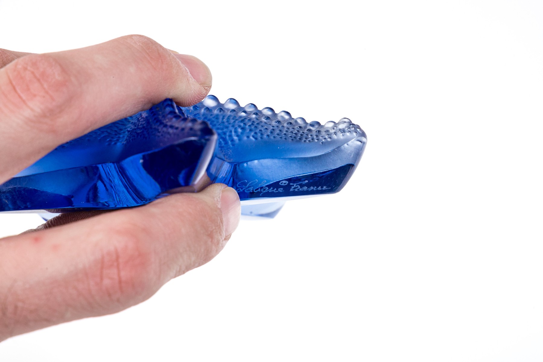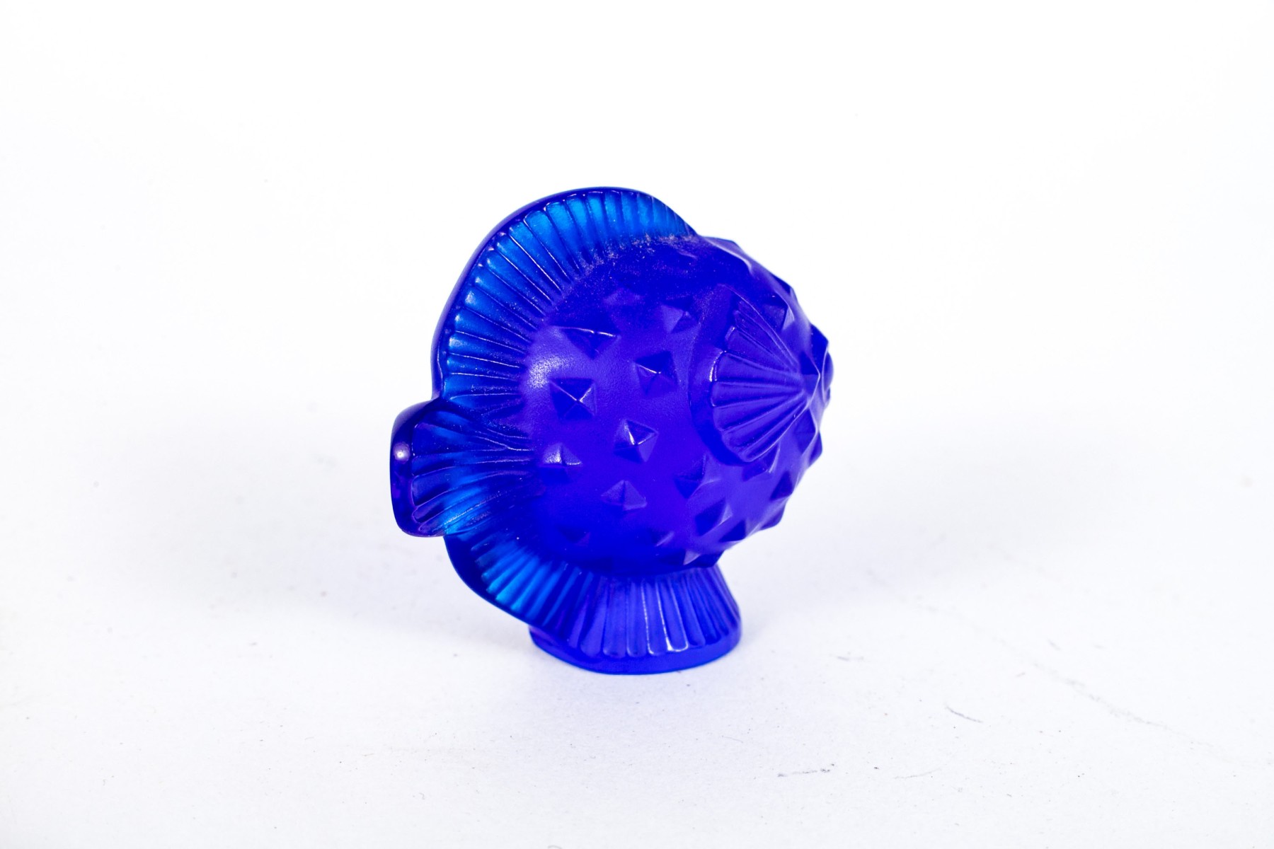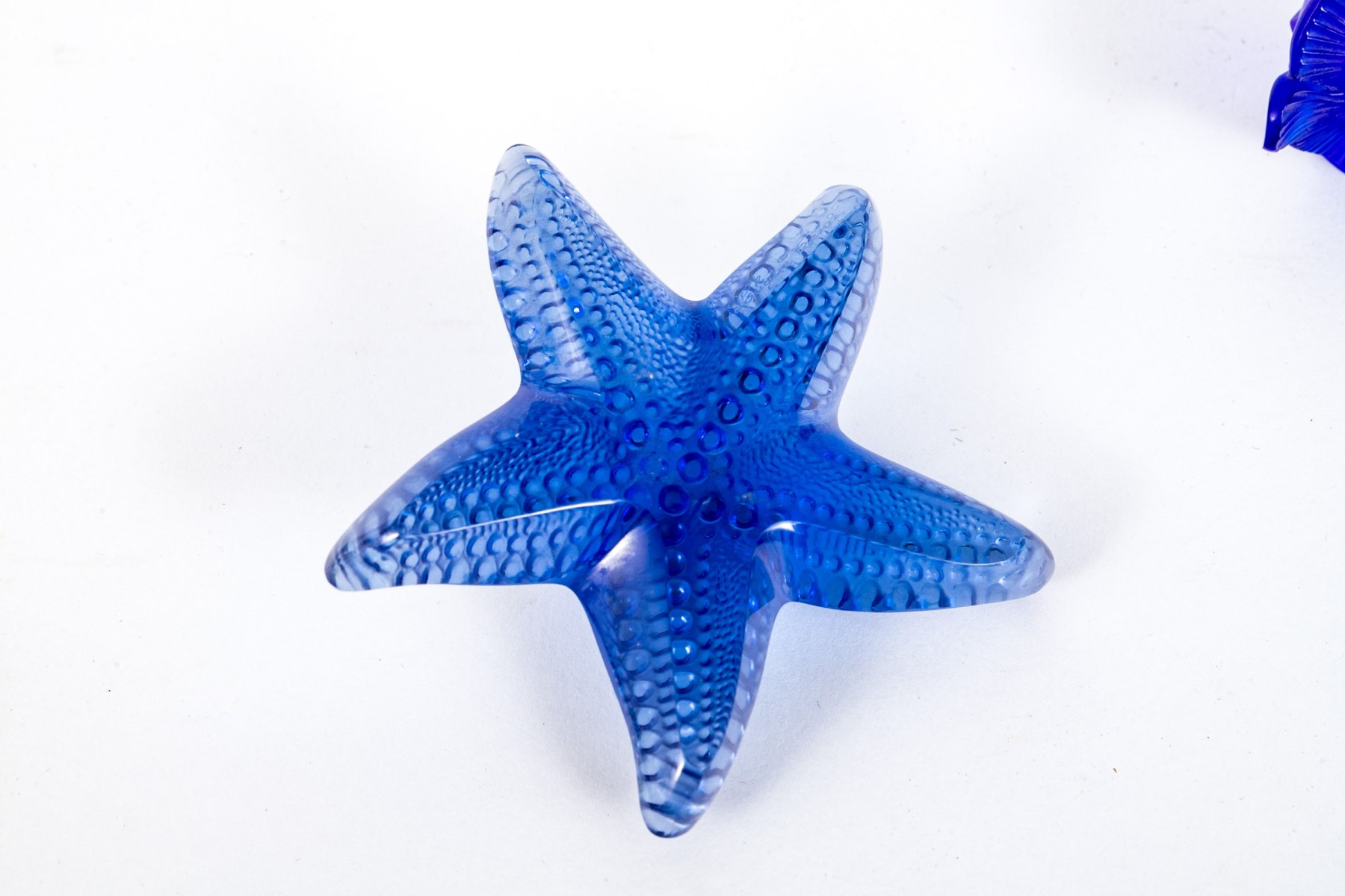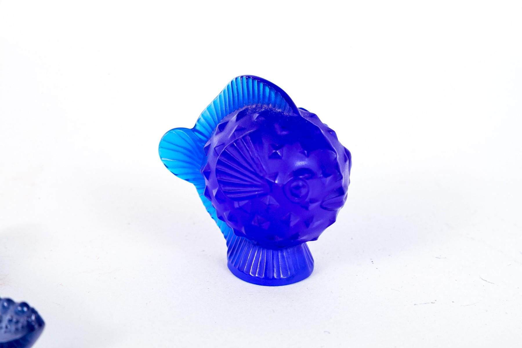 Collection of two gorgeous French, Lalique cobalt glass table top items are perfect for any ocean lover.