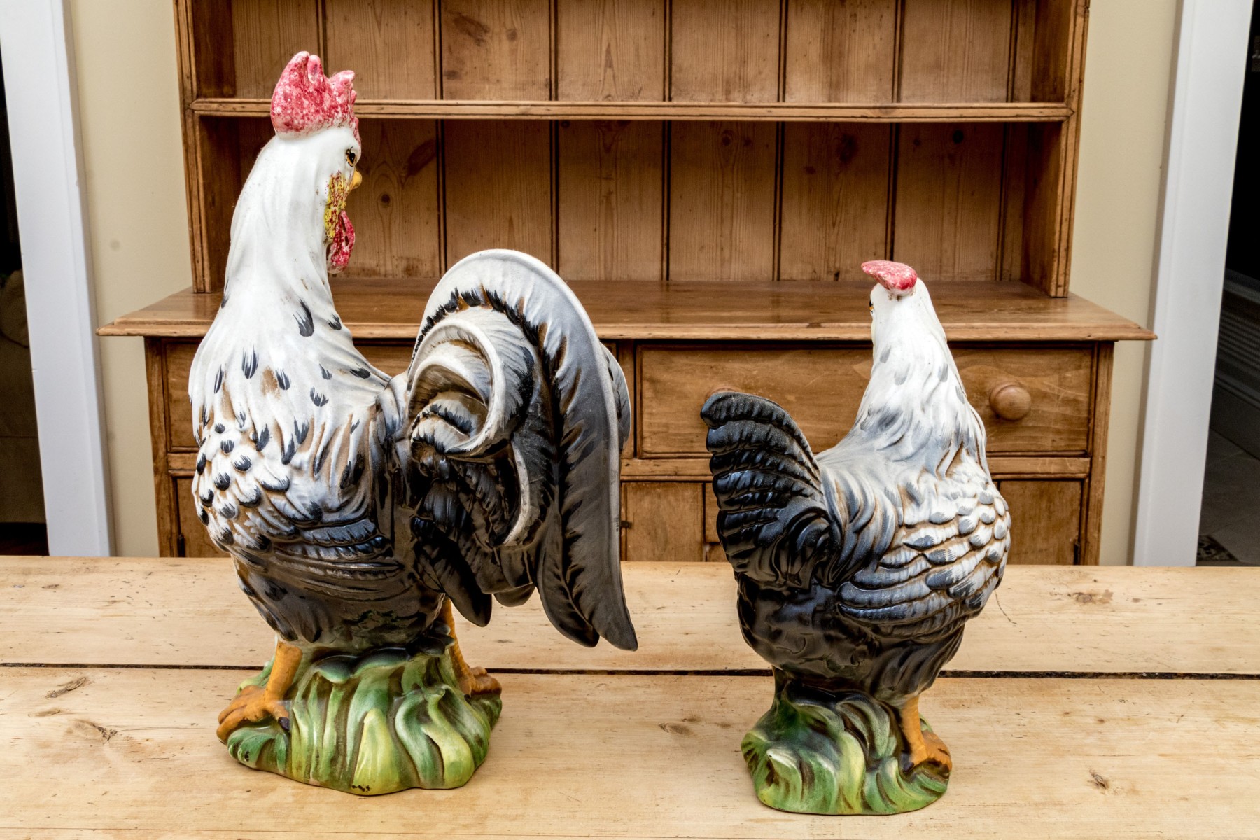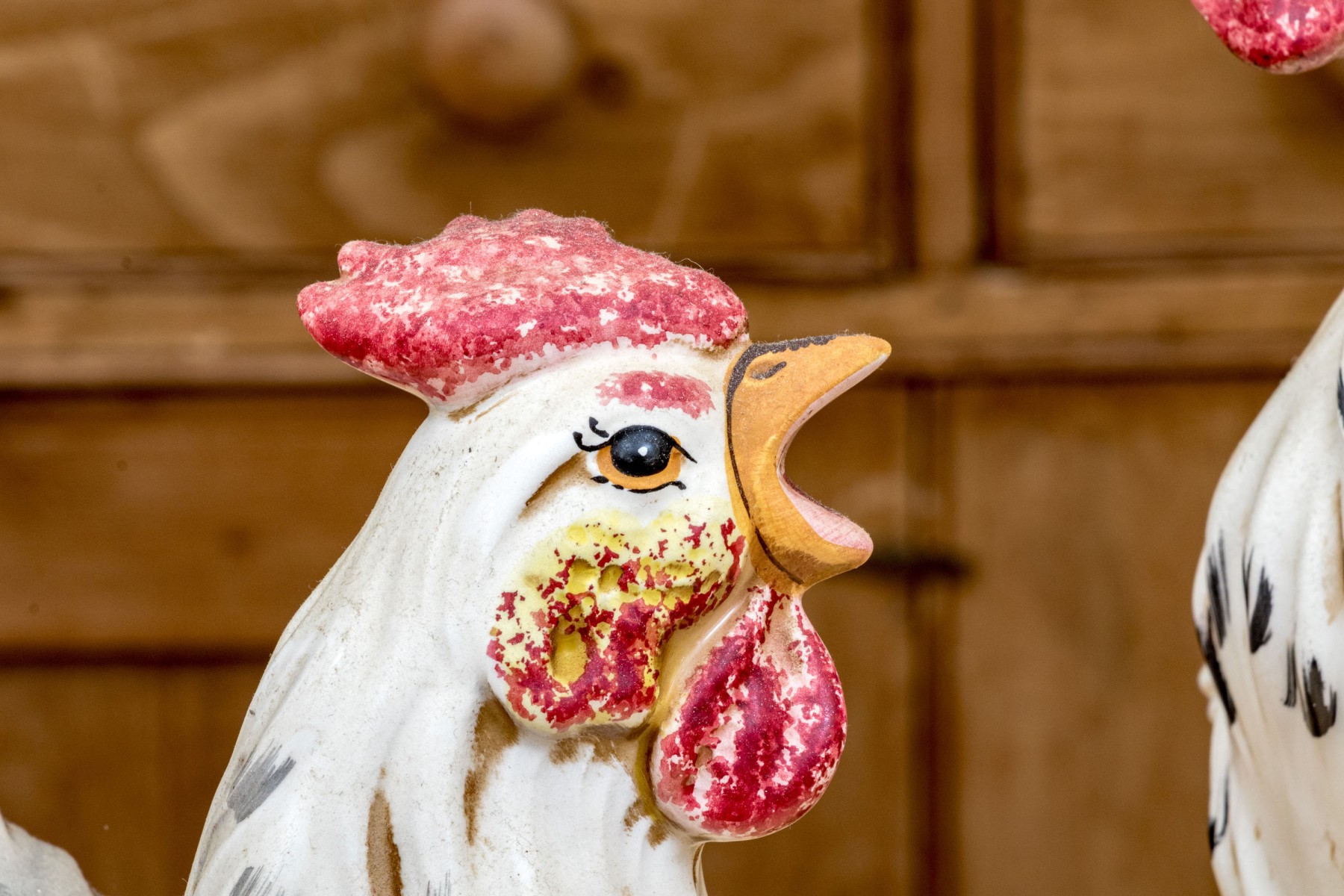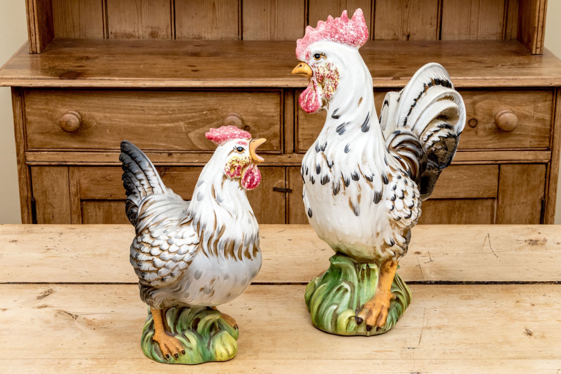 Two Italian Majolica Style Ceramic Rooster Figures #331606. Black Rock Galleries provides high end estate liquidation services through online estate auctions and a 50,000 sq ft designer showroom. estate liquidator, estate sale, online auction, antiques, fine art, liquidation, clean outs, auction, consignment, interior design, fine jewelry, collectibles, appraisals, estate appraisals, estate services, decor, furniture, furniture consignment, antique center, consignment shop. We offer appraisal services and specialize in fine art, jewelry, antiques and decorative arts. Sell with us. Black Rock Galleries is the tri-state's largest estate liquidator serving New England and the greater New York City area. We are the trusted source for expert appraisals, auction services, estate sales, and consignments. Black Rock Galleries is the east coast's largest and most trusted estate liquidator, with locations in Connecticut, greater Boston, MA and Raleigh, NC, Fairfield, Southport, Apex, TX. We are the best source for expert appraisals, auction services, estate sales and consignments. We have served thousands of families and estates with compassion, professionalism and expertise. BRG works with attorneys, executors, realtors and families to bring the greatest return on personal and estate property in the current market. Our unique combination of services make us the easy choice to get the job done in a timely and stress-free manner. We are with you from the initial consultation to the final clean out. Our house-built online auction software platform offers clients a dynamic approach to liquidating their personal property. This venue is most successful in bringing the best return with the least amount of disruption for our clients. See our services page for a complete description of this offering. Two Italian Majolica Style Ceramic Rooster Figures #331606