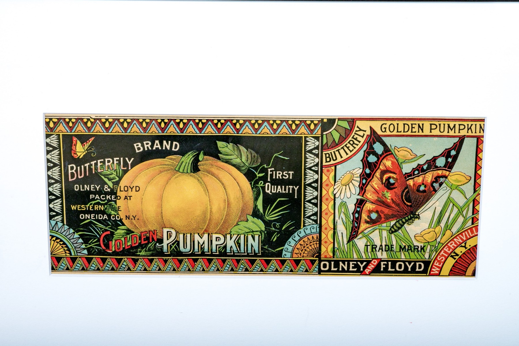 One for Olney & Floyd Butterfly Brand Golden Pumpkin. Presented inn a fine J.Pocker & Son black frame with glass.