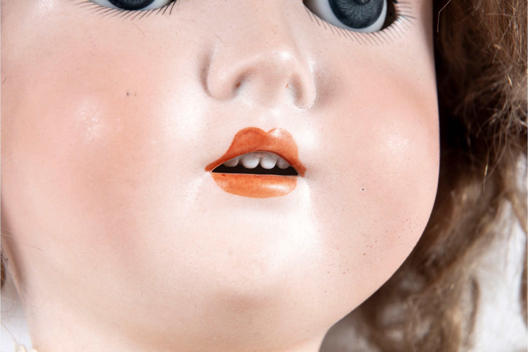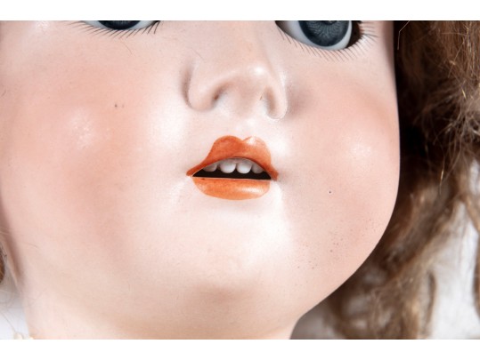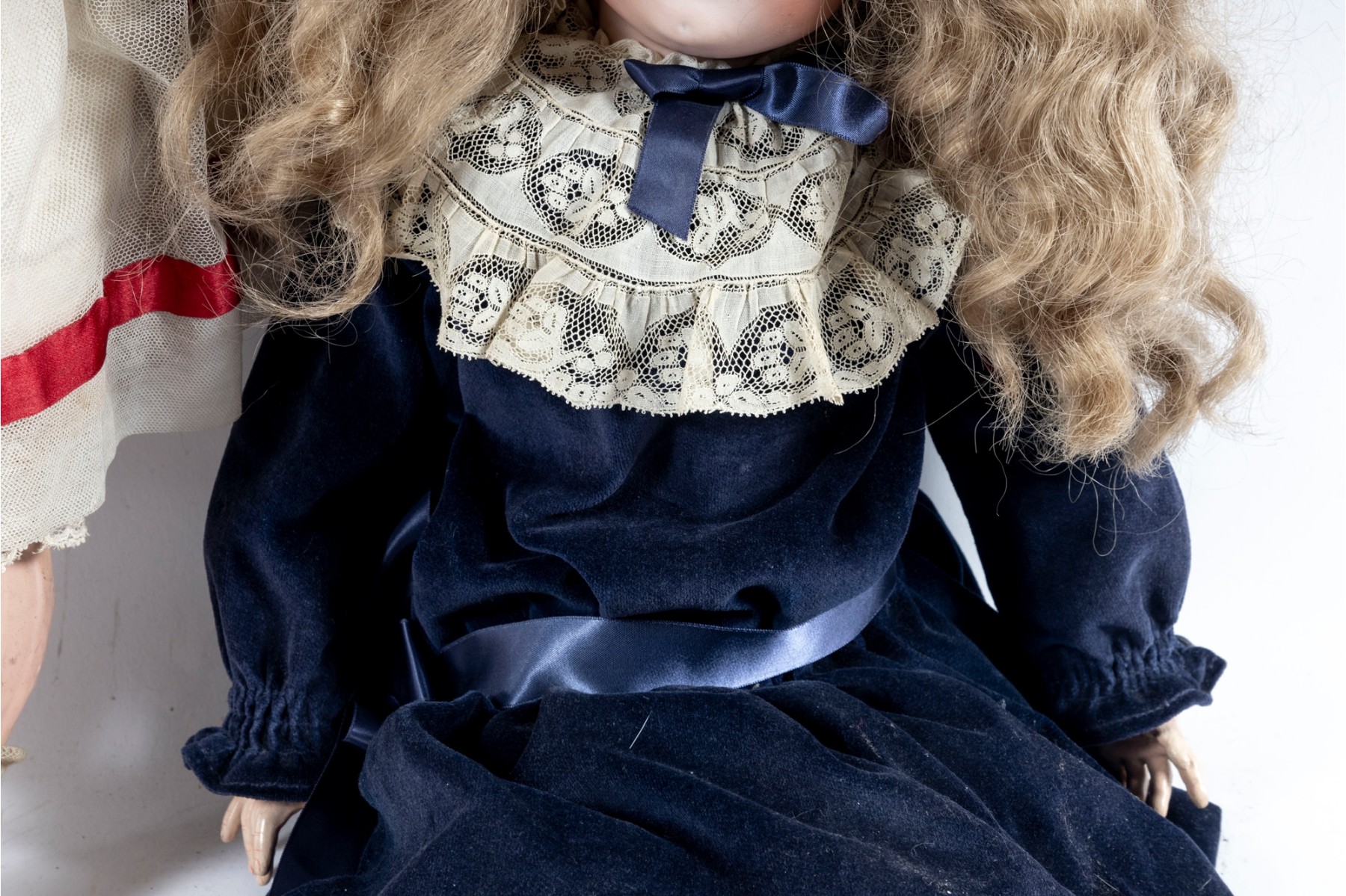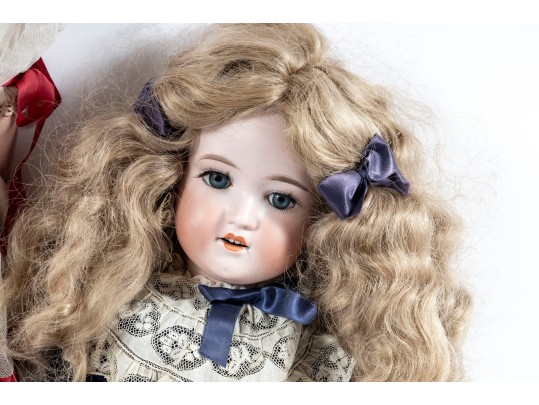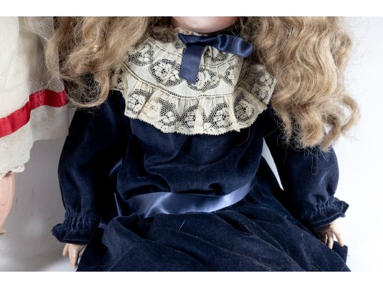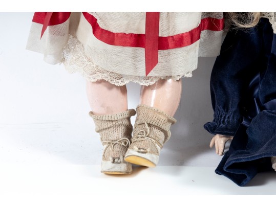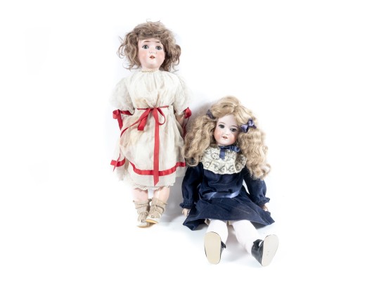 Two large antique composite form dolls with bisque porcelain heads. Contents do not exceed 24" in height.