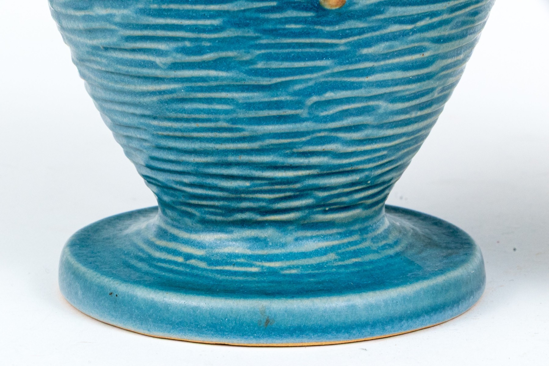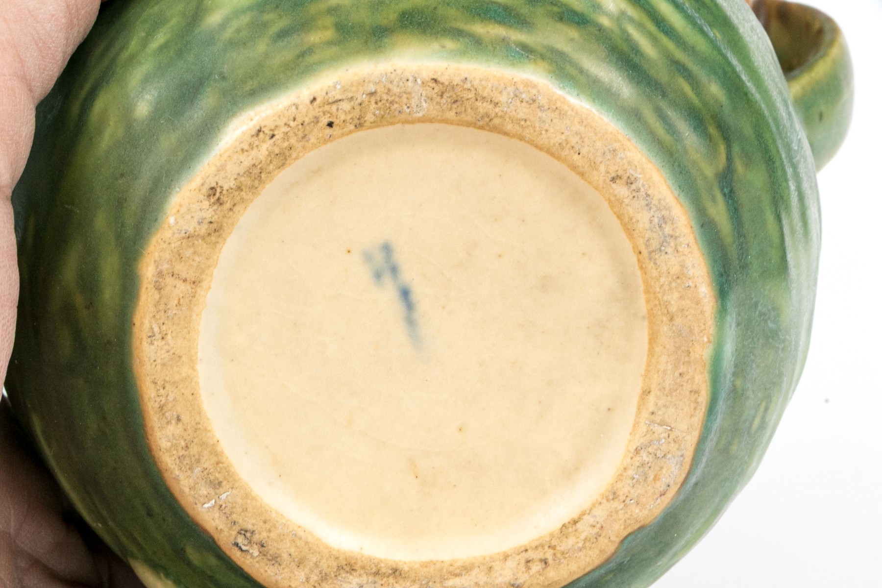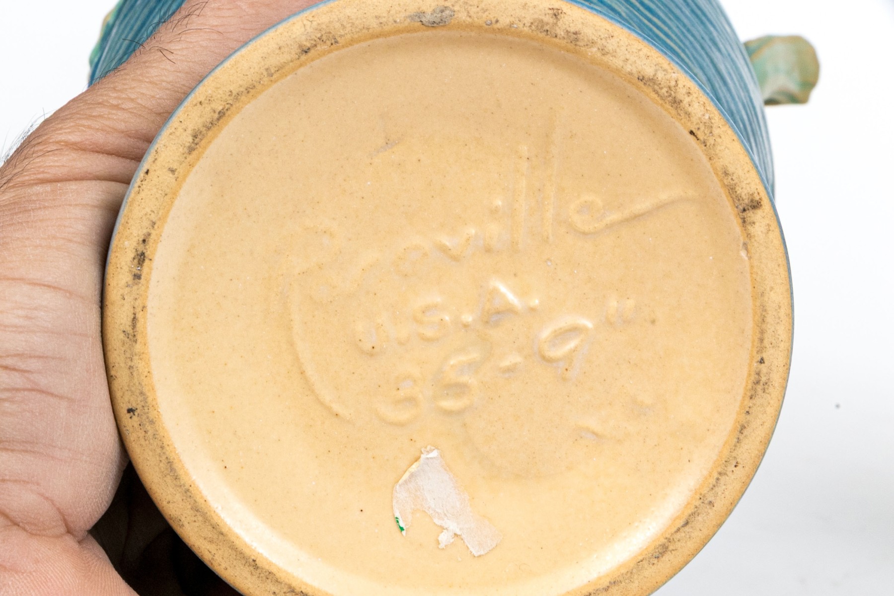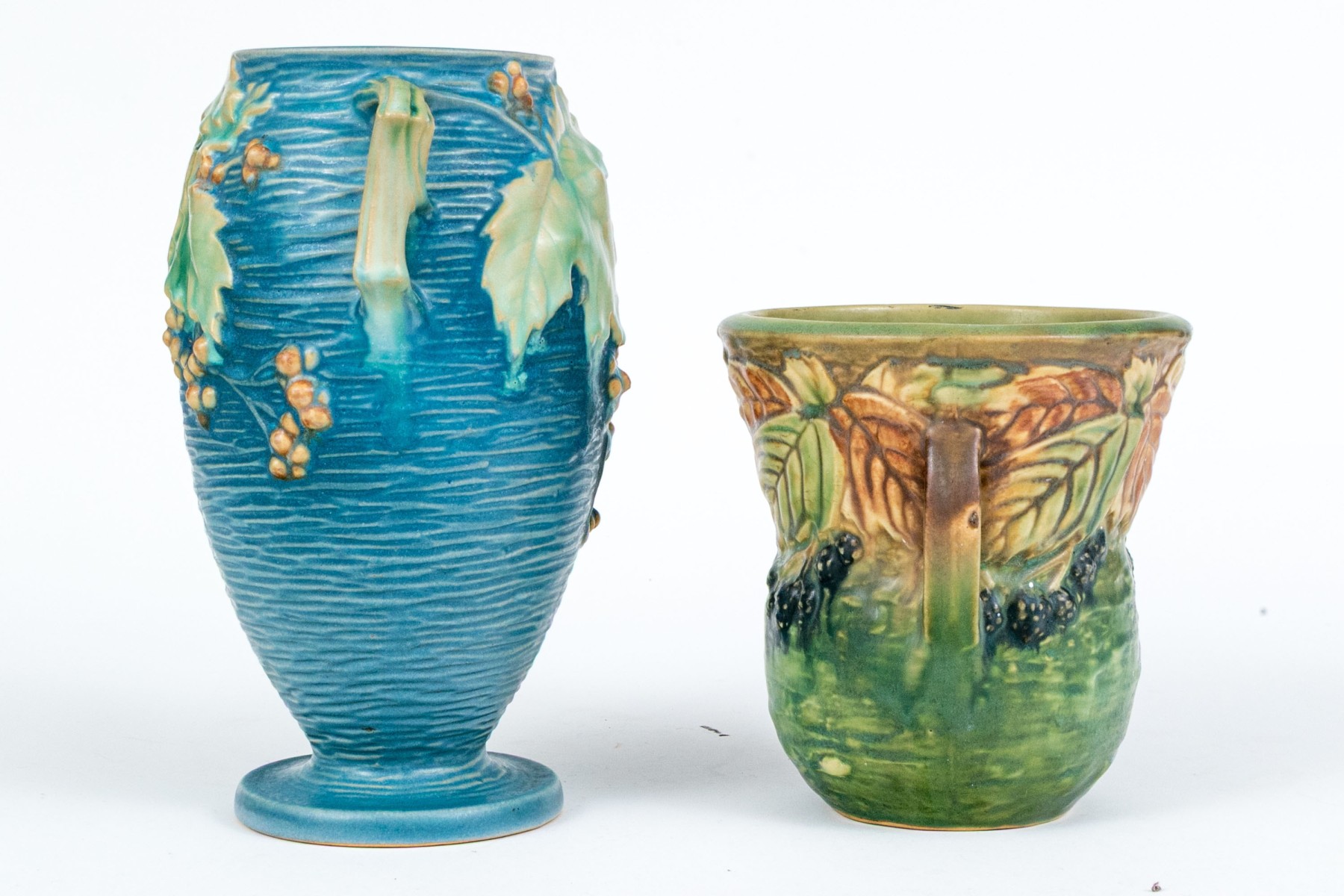 A delightful duo of Roseville ceramic vases with beautiful moulded and glazed foliate features.